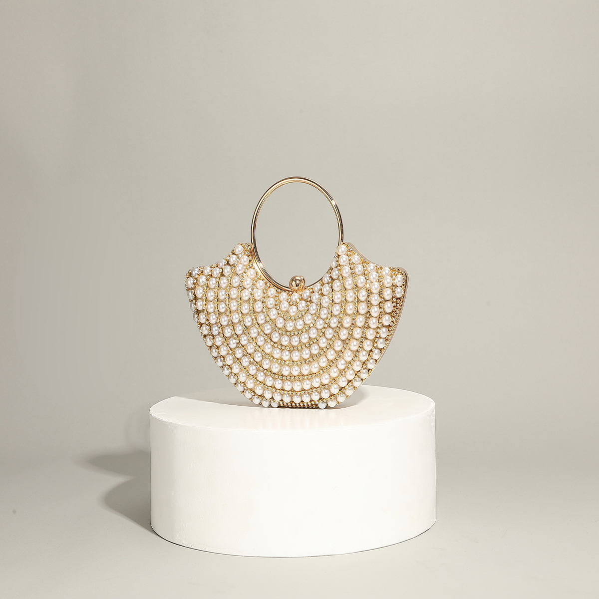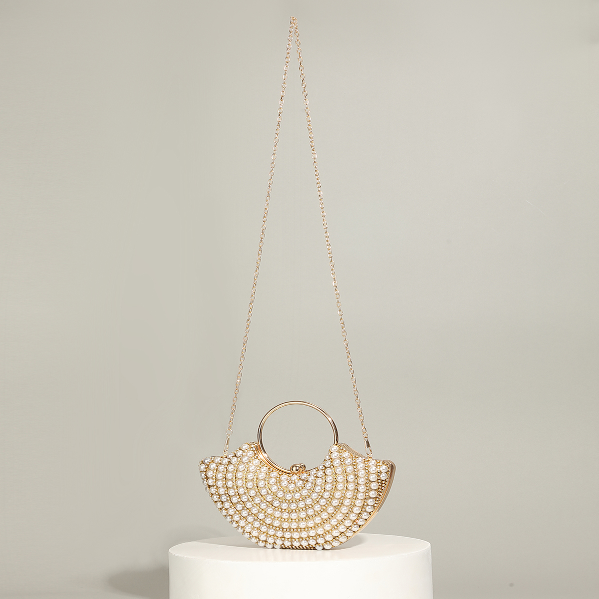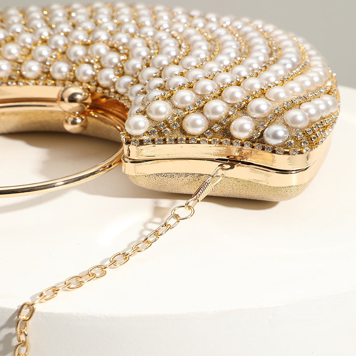 Polyester Evening Party Clutch Bag circular ring & portable Plastic Pearl gold PC