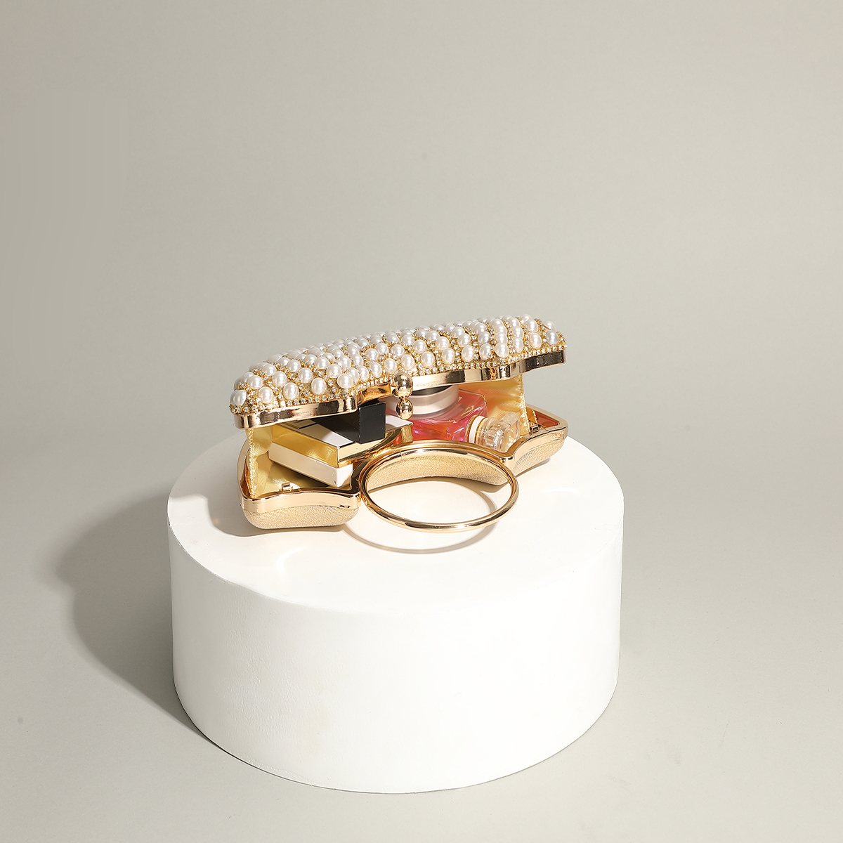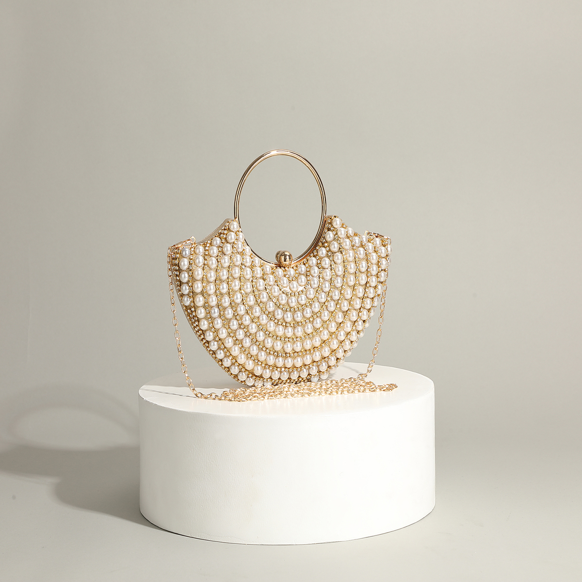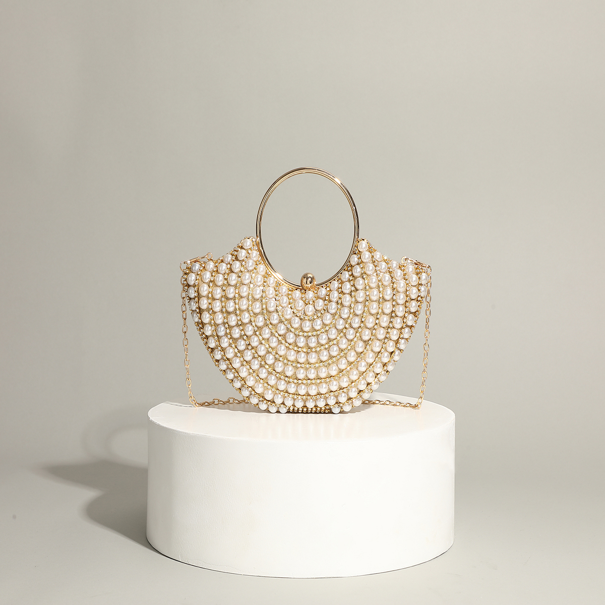 Polyester Evening Party Clutch Bag circular ring & portable Plastic Pearl gold PC