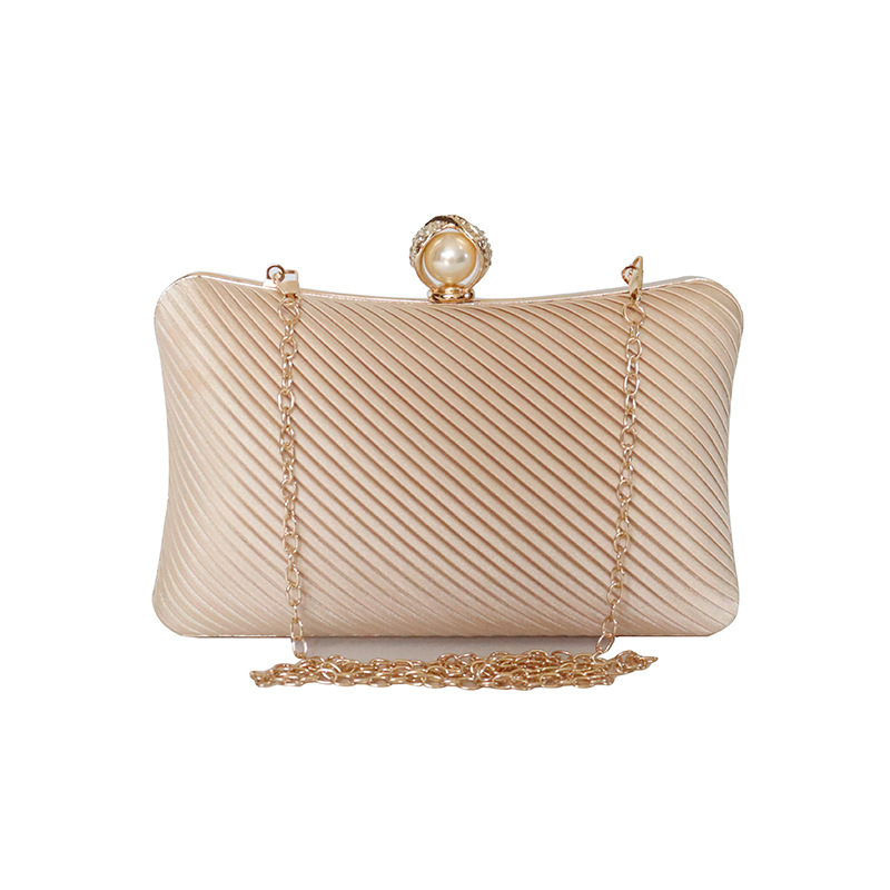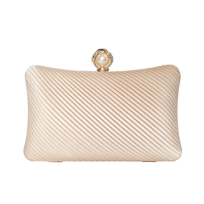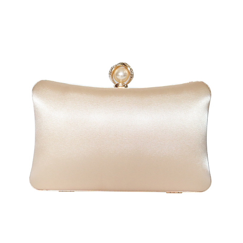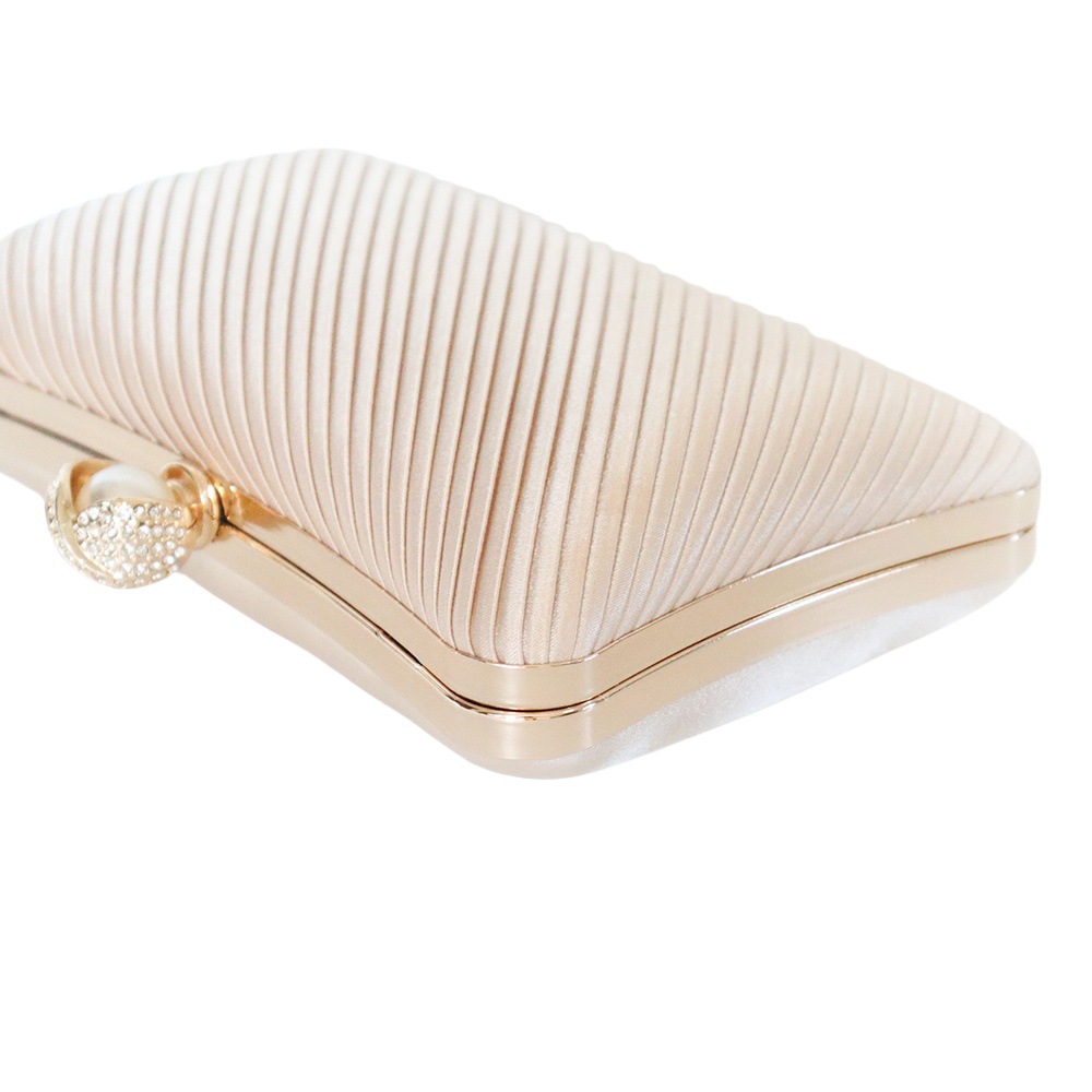 Polyester Clutch Bag with rhinestone Plastic Pearl champagne PC
