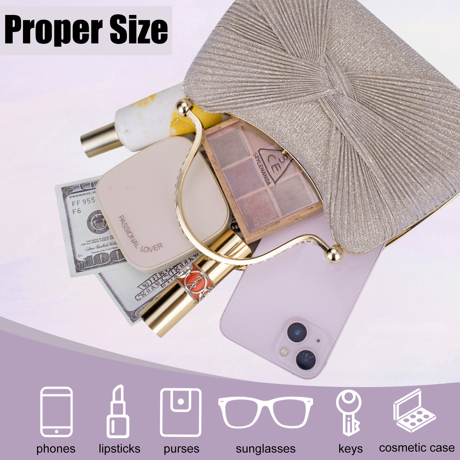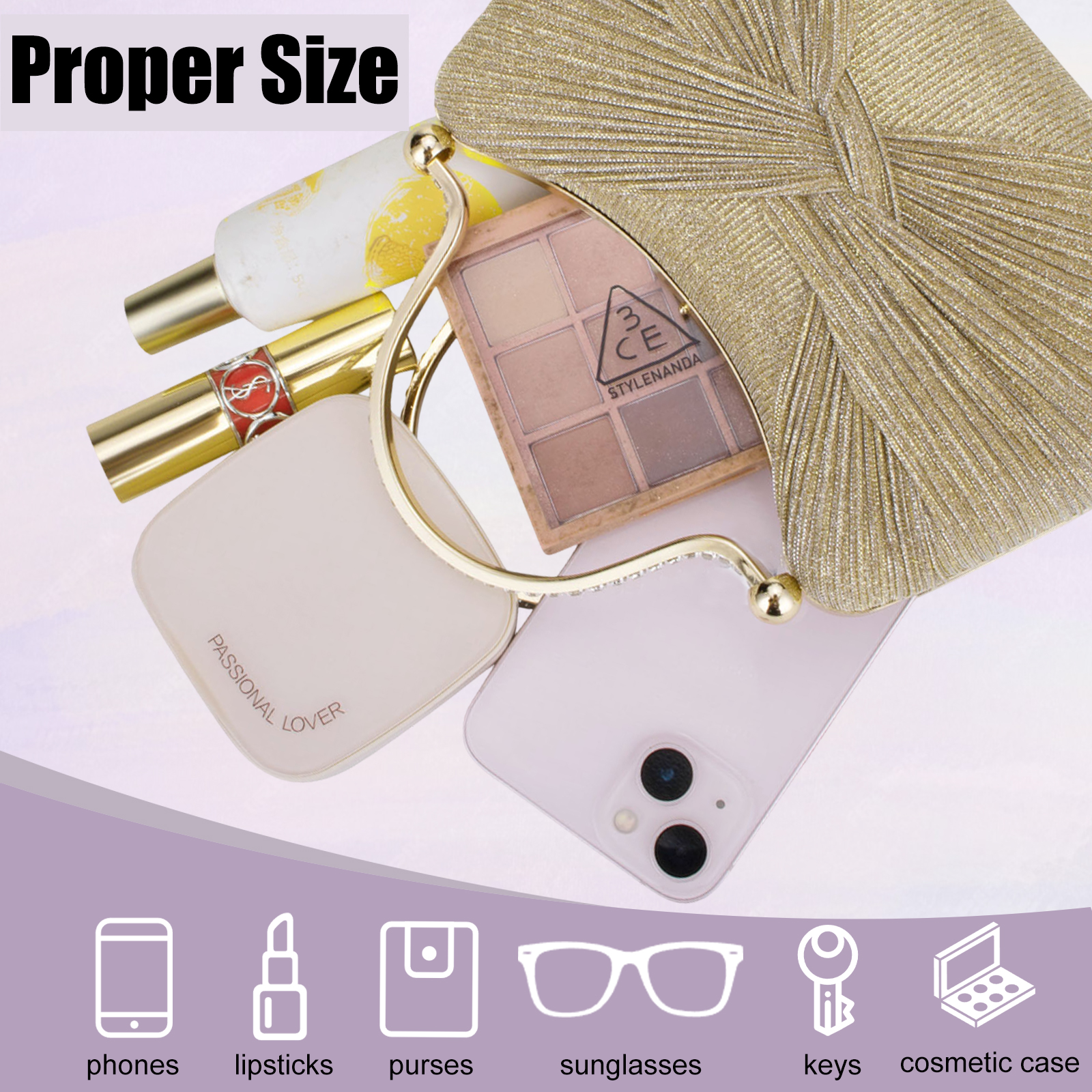 Polyester Easy Matching Clutch Bag with rhinestone PC