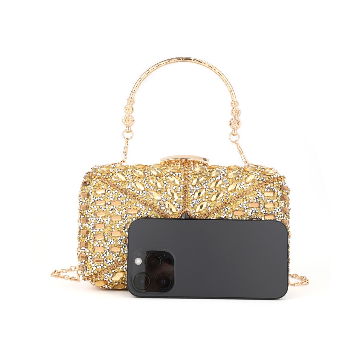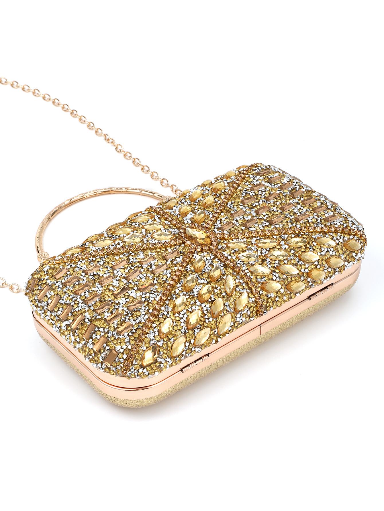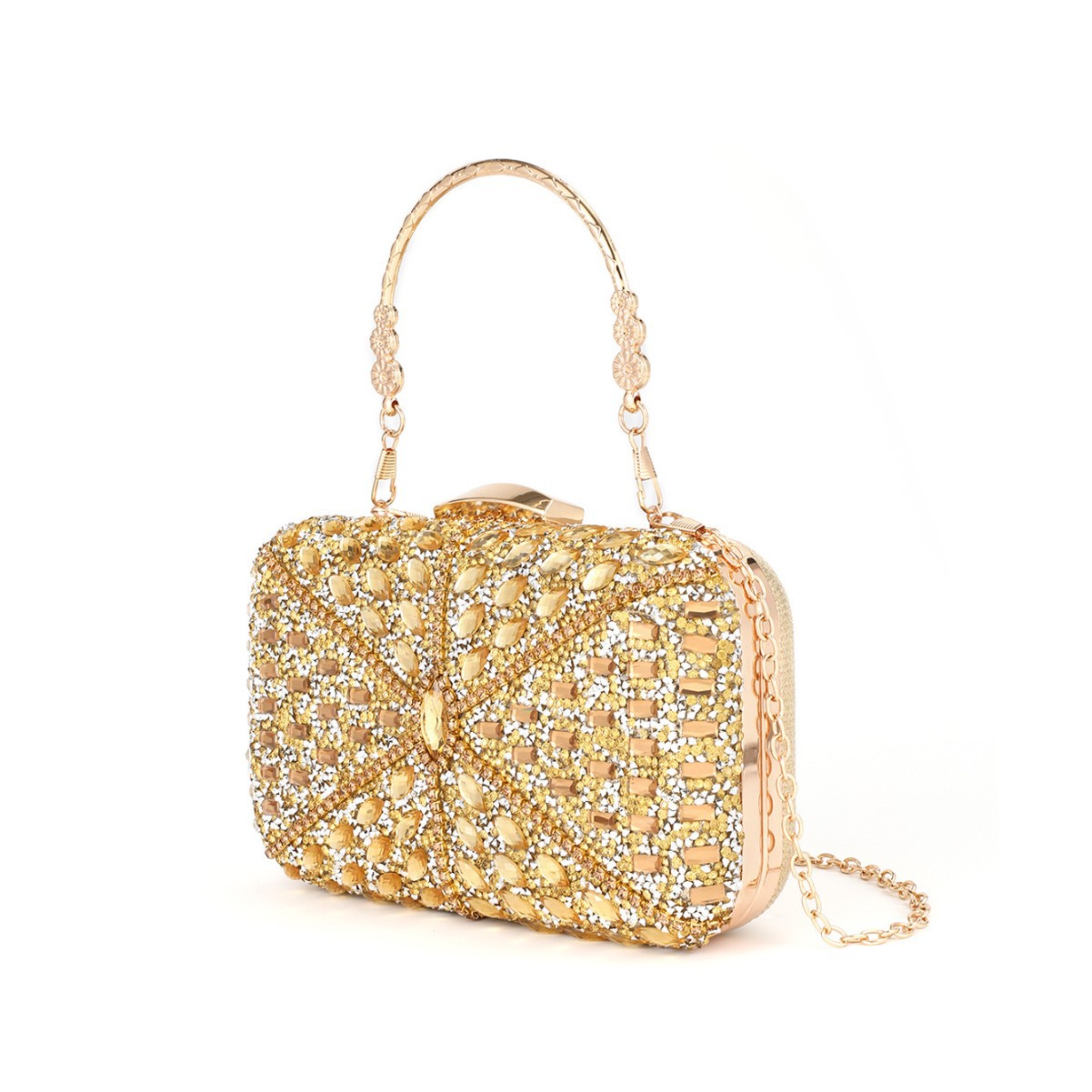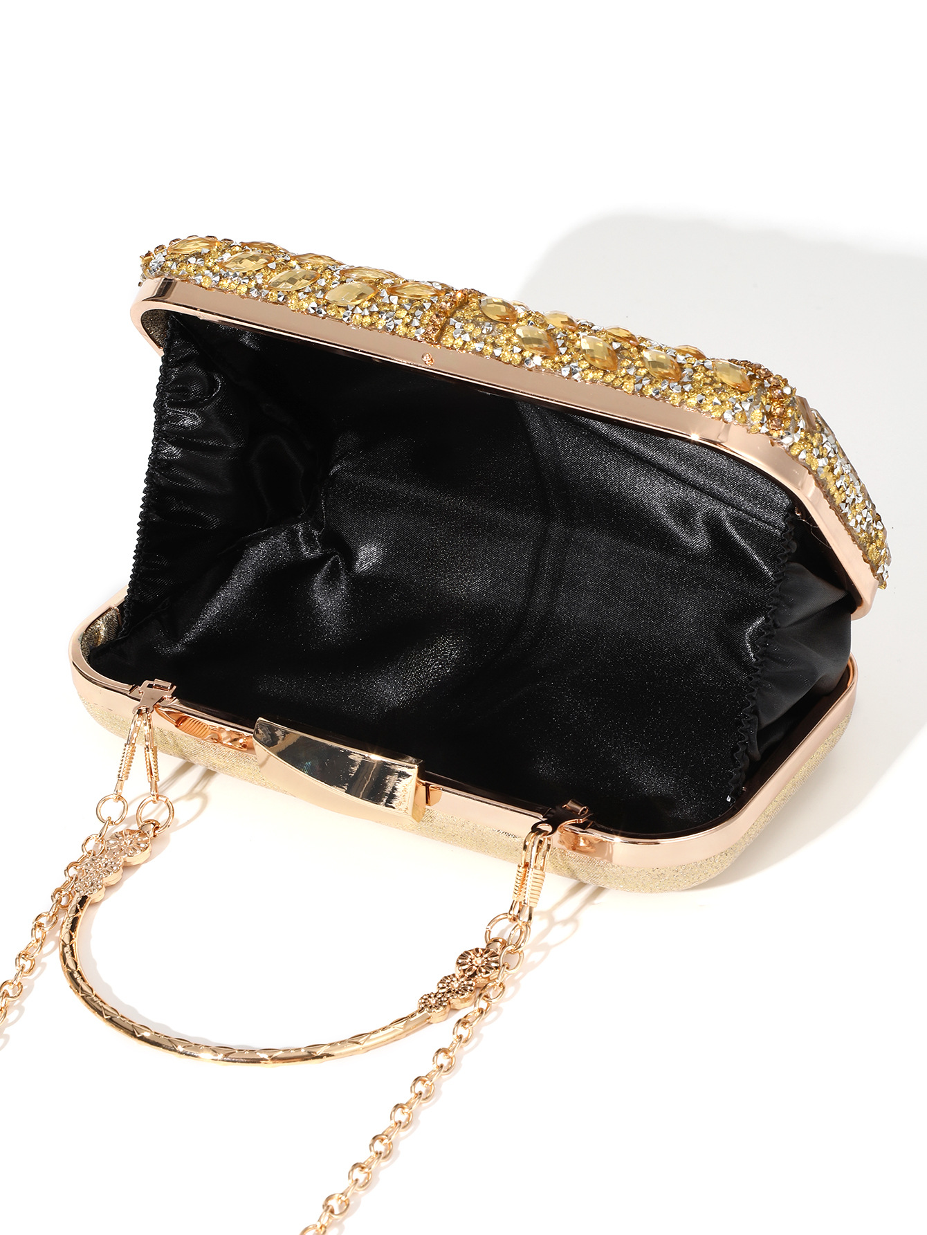 Polyester hard-surface & Handbag Clutch Bag detachable strap & attached with hanging strap & with rhinestone PC
