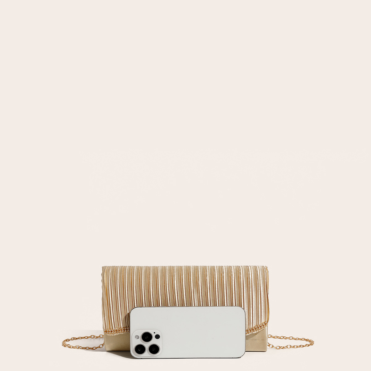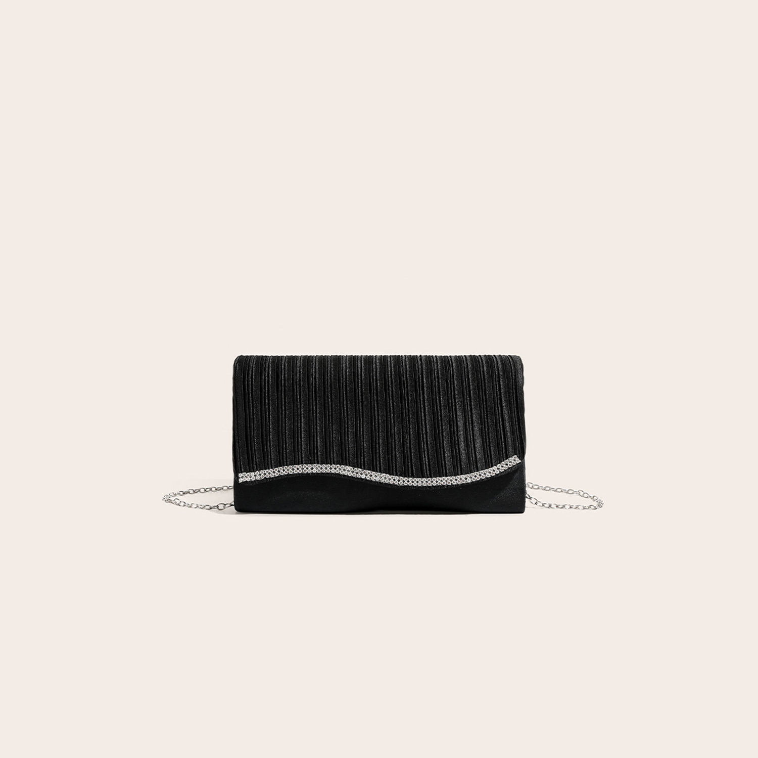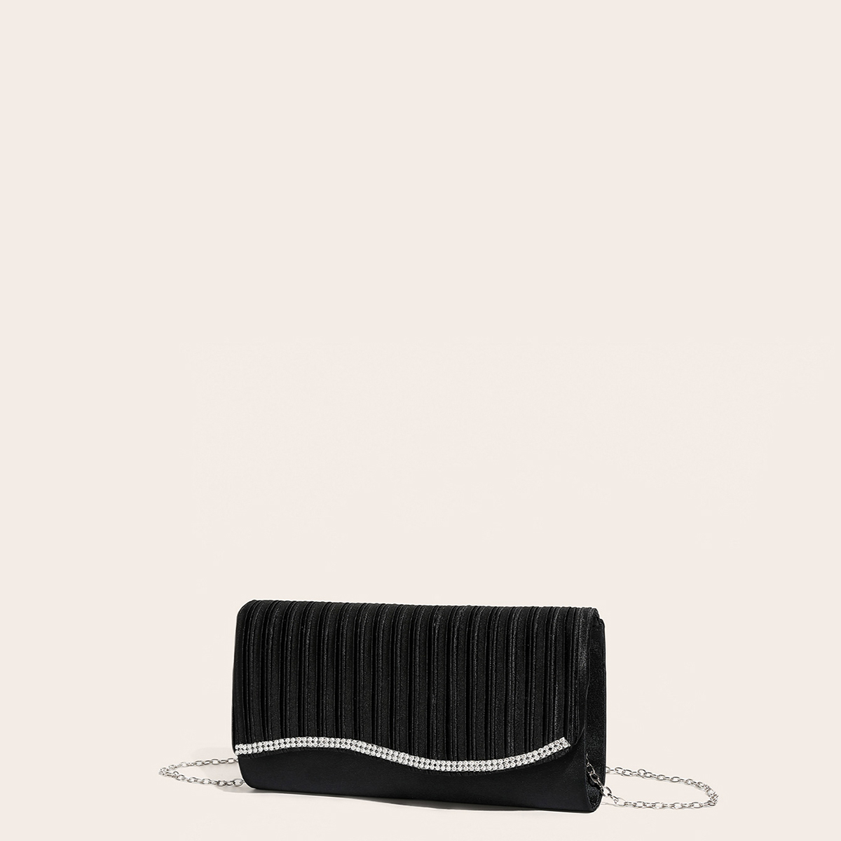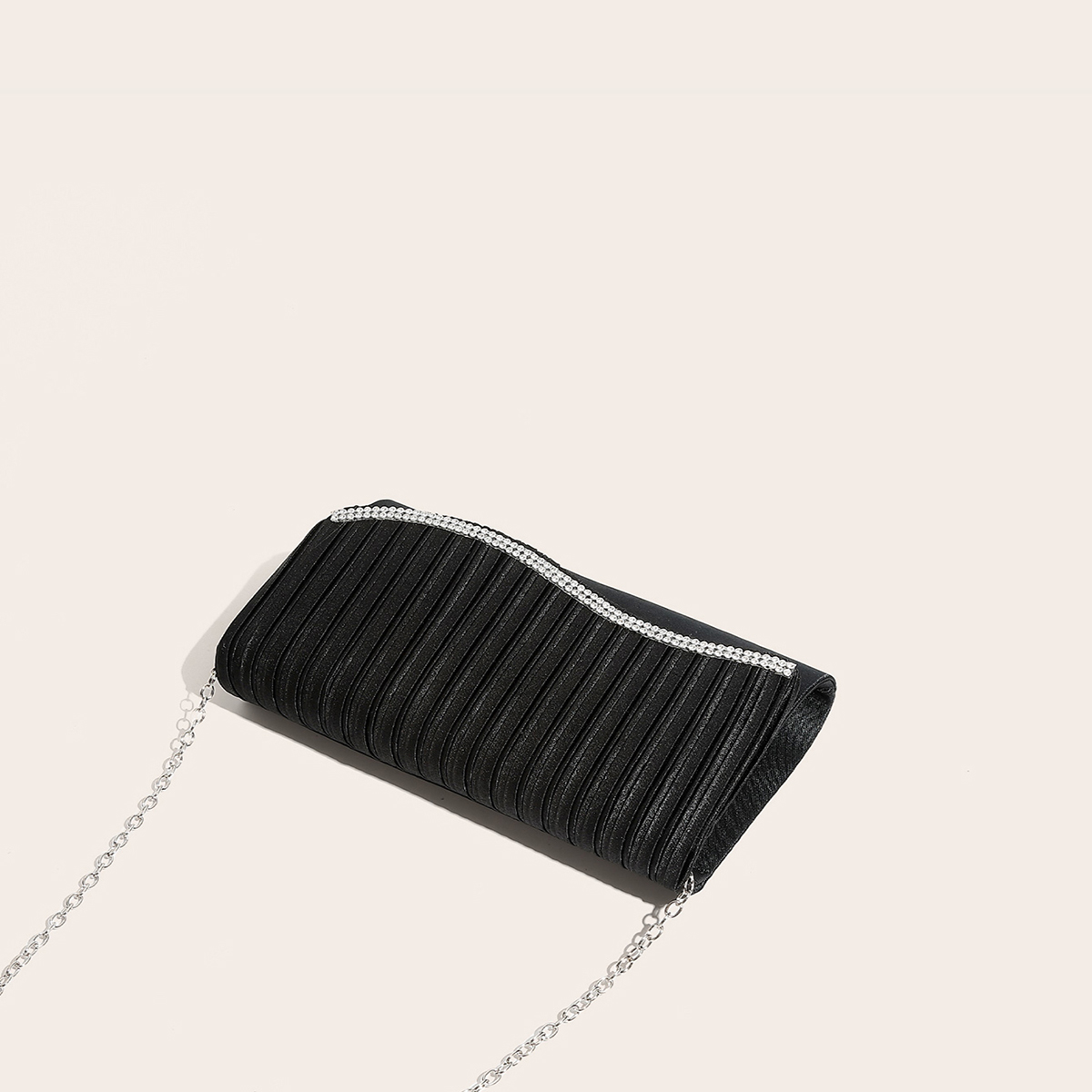 Silk hard-surface Clutch Bag, attached with hanging strap & with rhinestone, Solid, more colors for choice,  PC