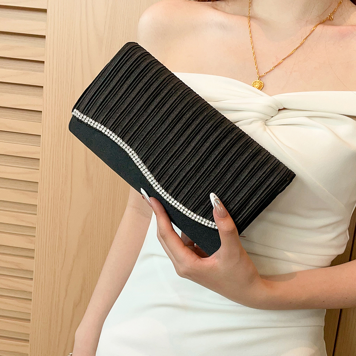 Polyester Evening Party Clutch Bag portable & with rhinestone PC