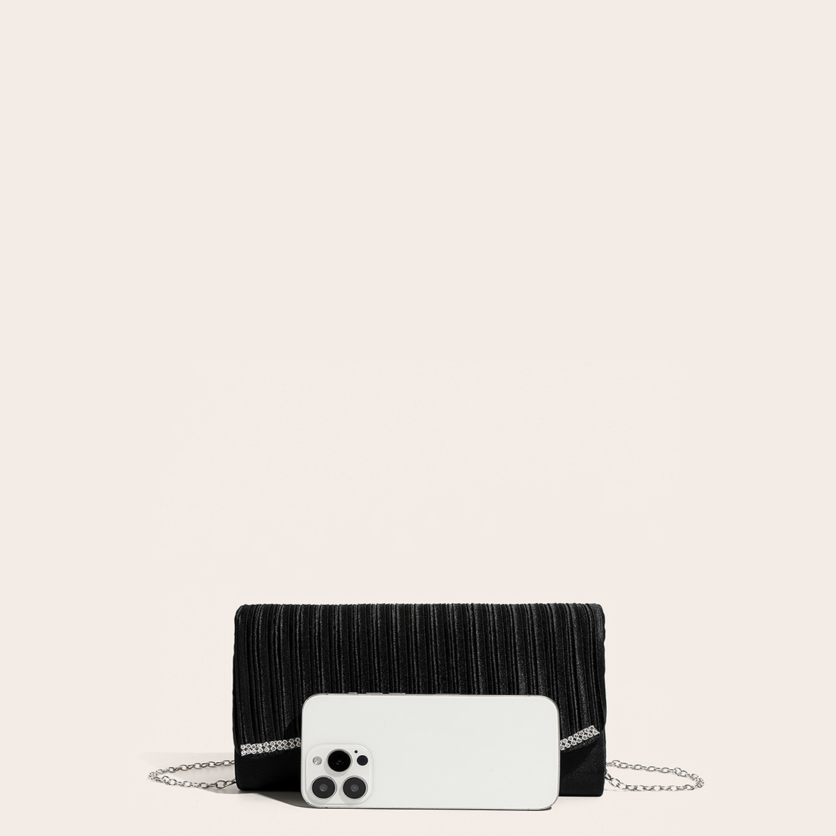 Polyester hard-surface Clutch Bag, attached with hanging strap & with rhinestone, more colors for choice,  PC