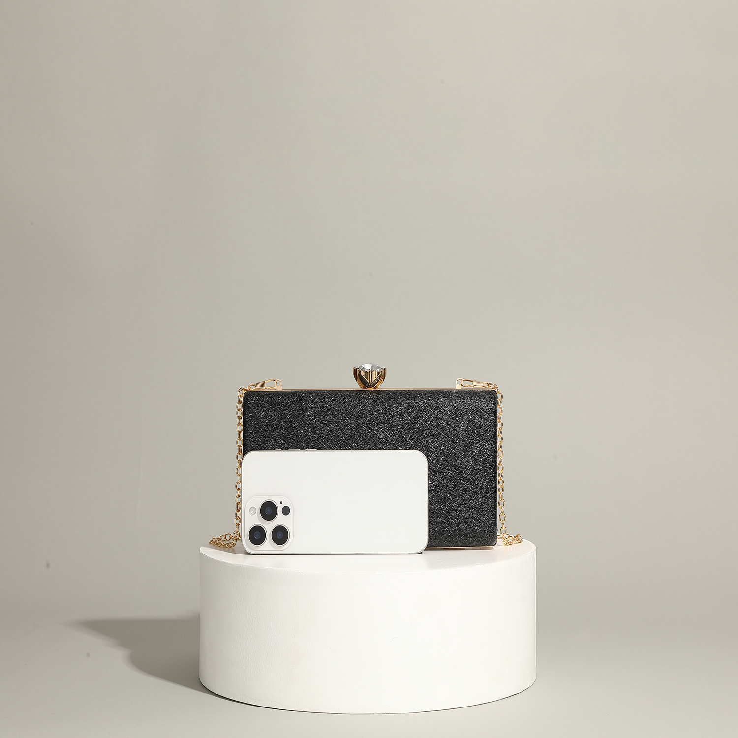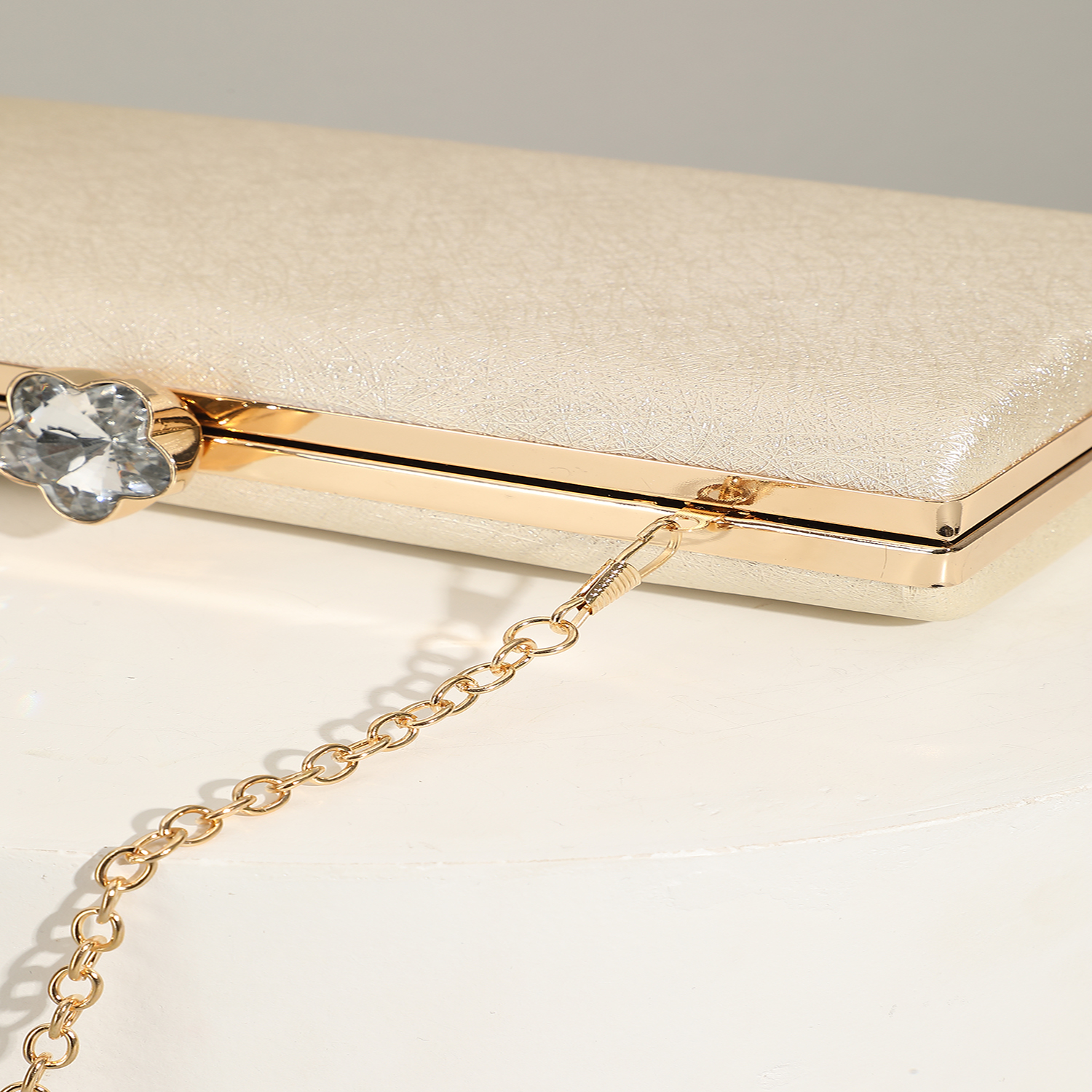 Polyester hard-surface Clutch Bag, attached with hanging strap & with rhinestone, more colors for choice,  PC