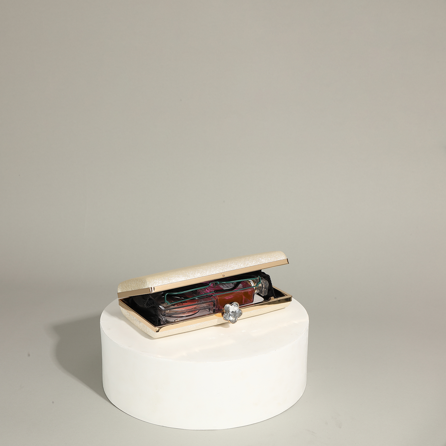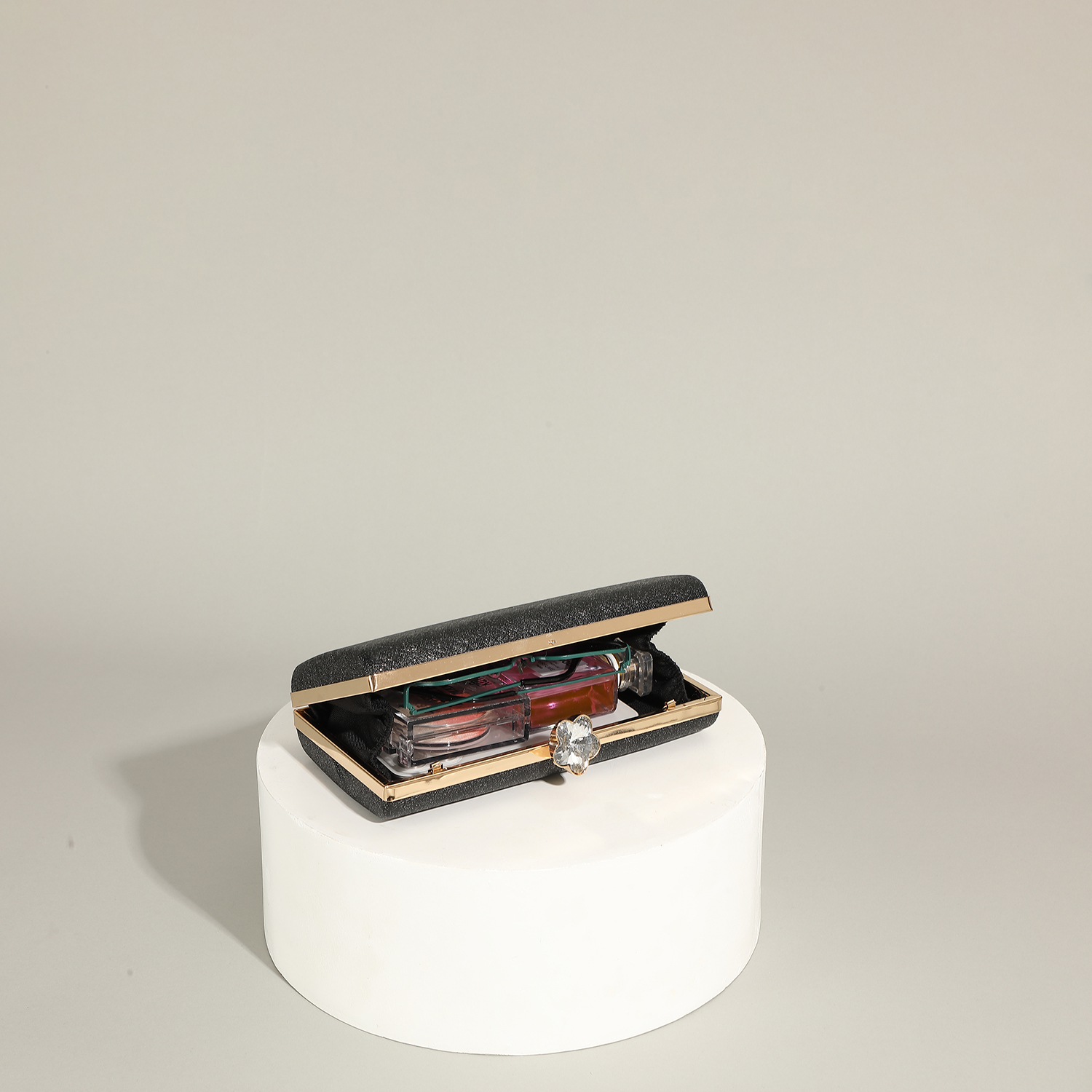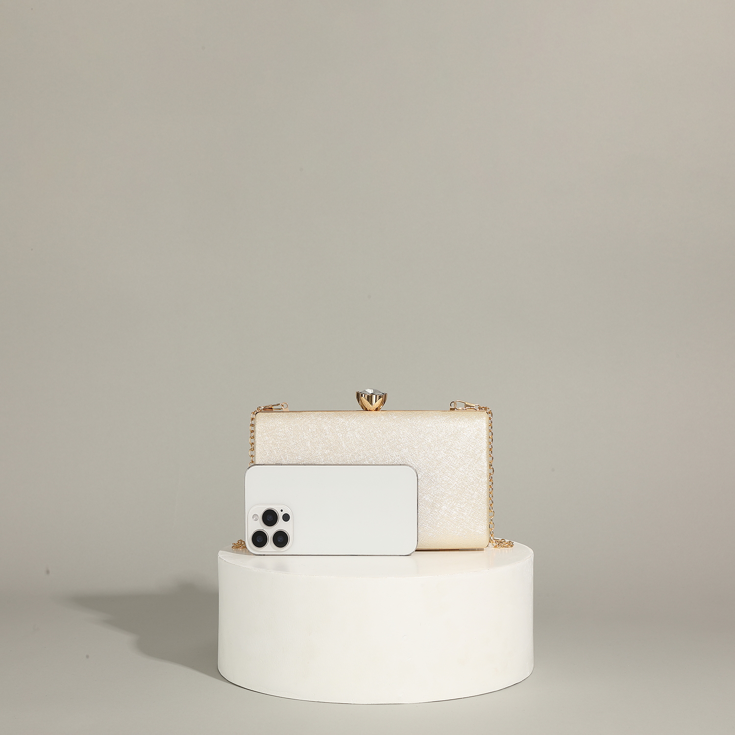 Silk hard-surface Clutch Bag, attached with hanging strap & with rhinestone, Solid, more colors for choice,  PC