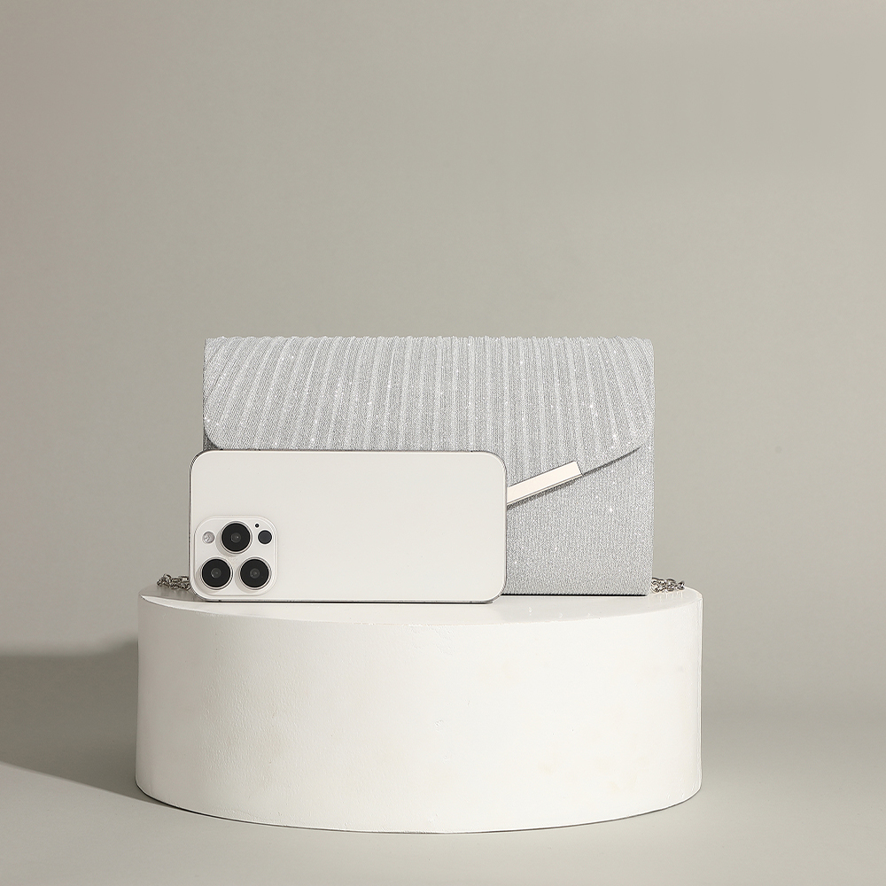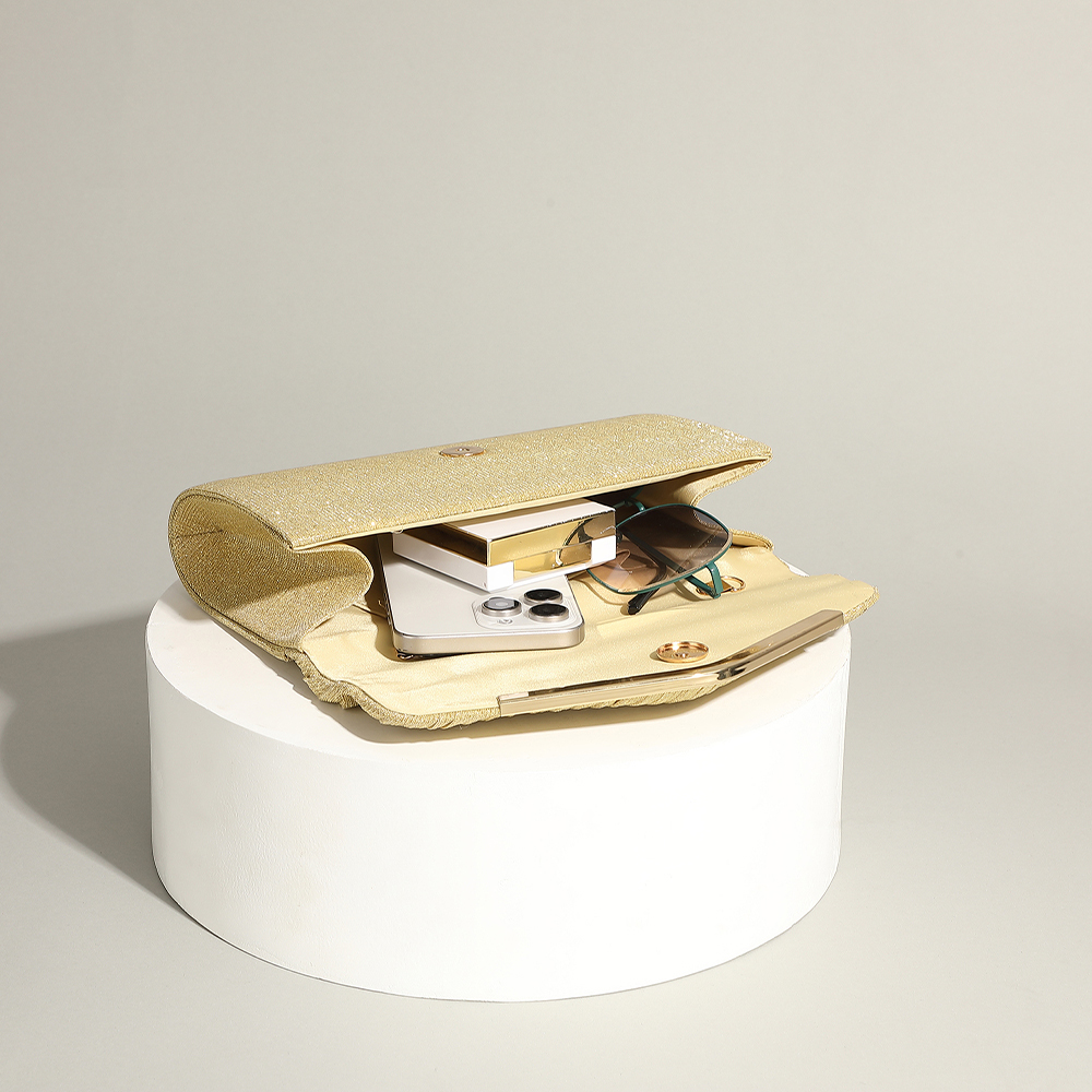 Silk hard-surface Clutch Bag, attached with hanging strap & with rhinestone, Solid, more colors for choice,  PC