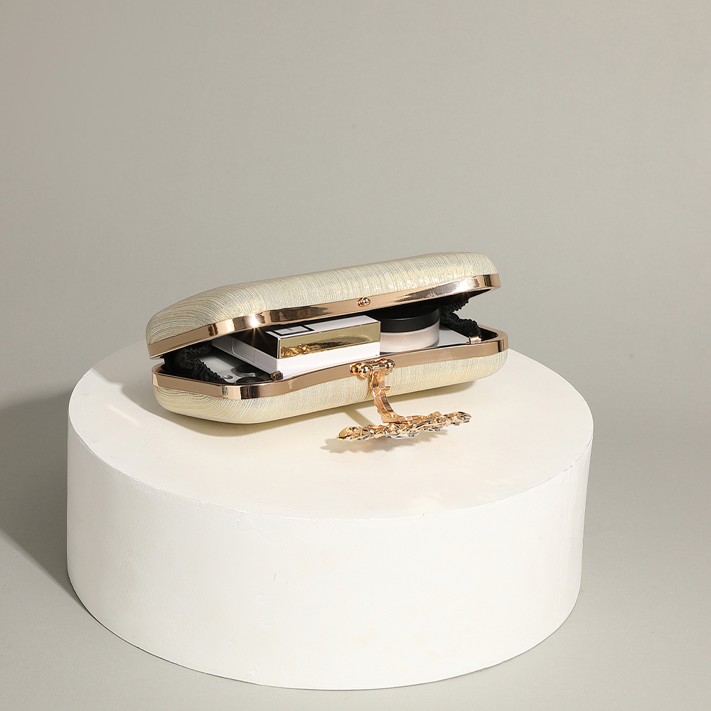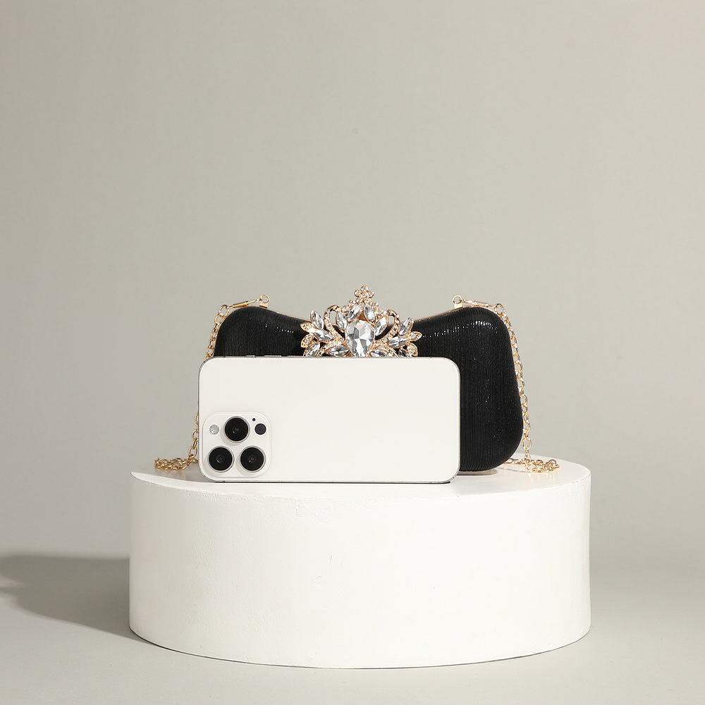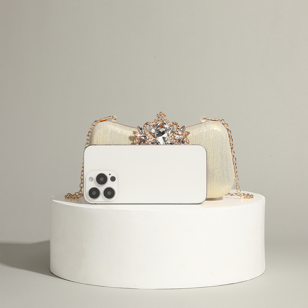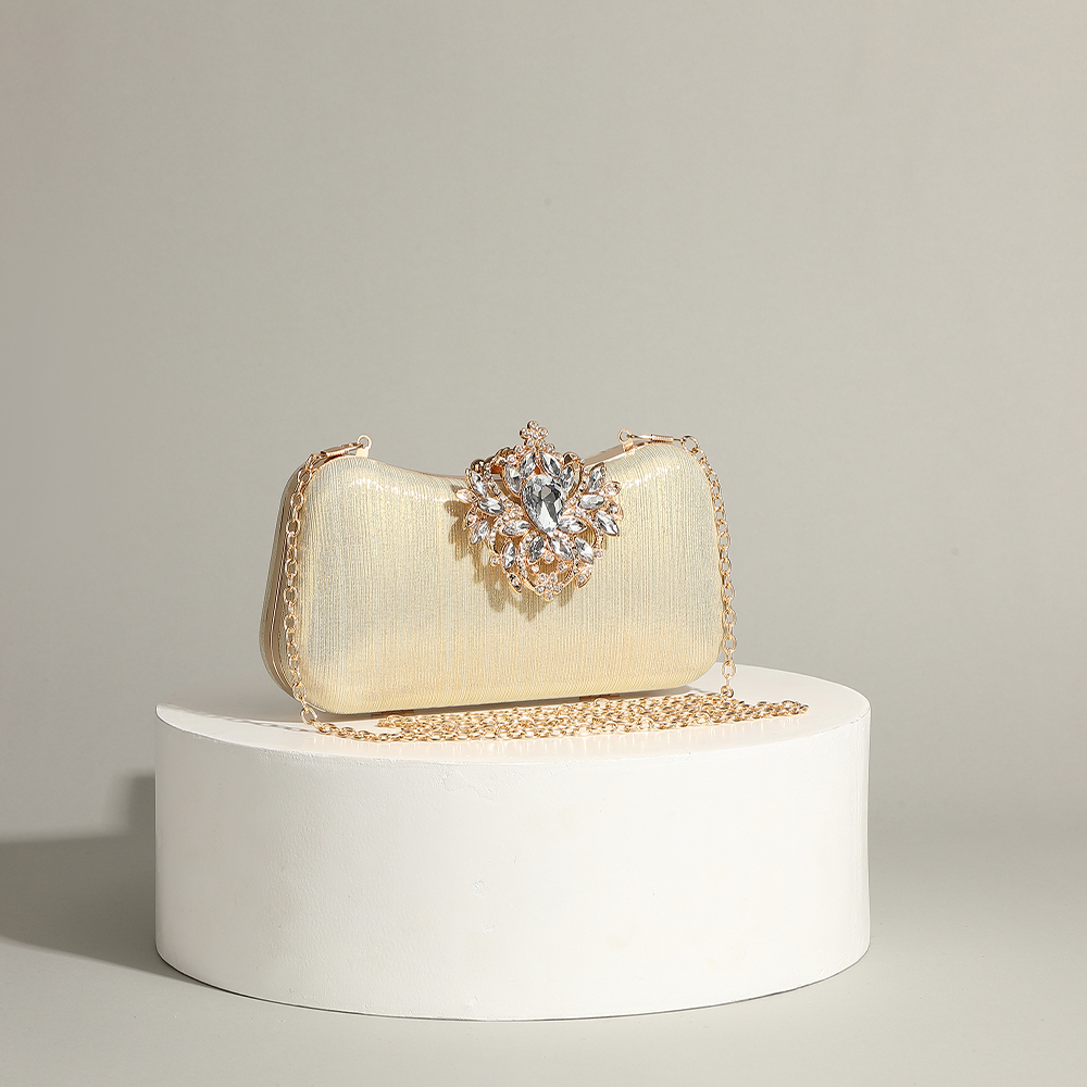Silk hard-surface Clutch Bag, attached with hanging strap & with rhinestone, Solid, more colors for choice,  PC