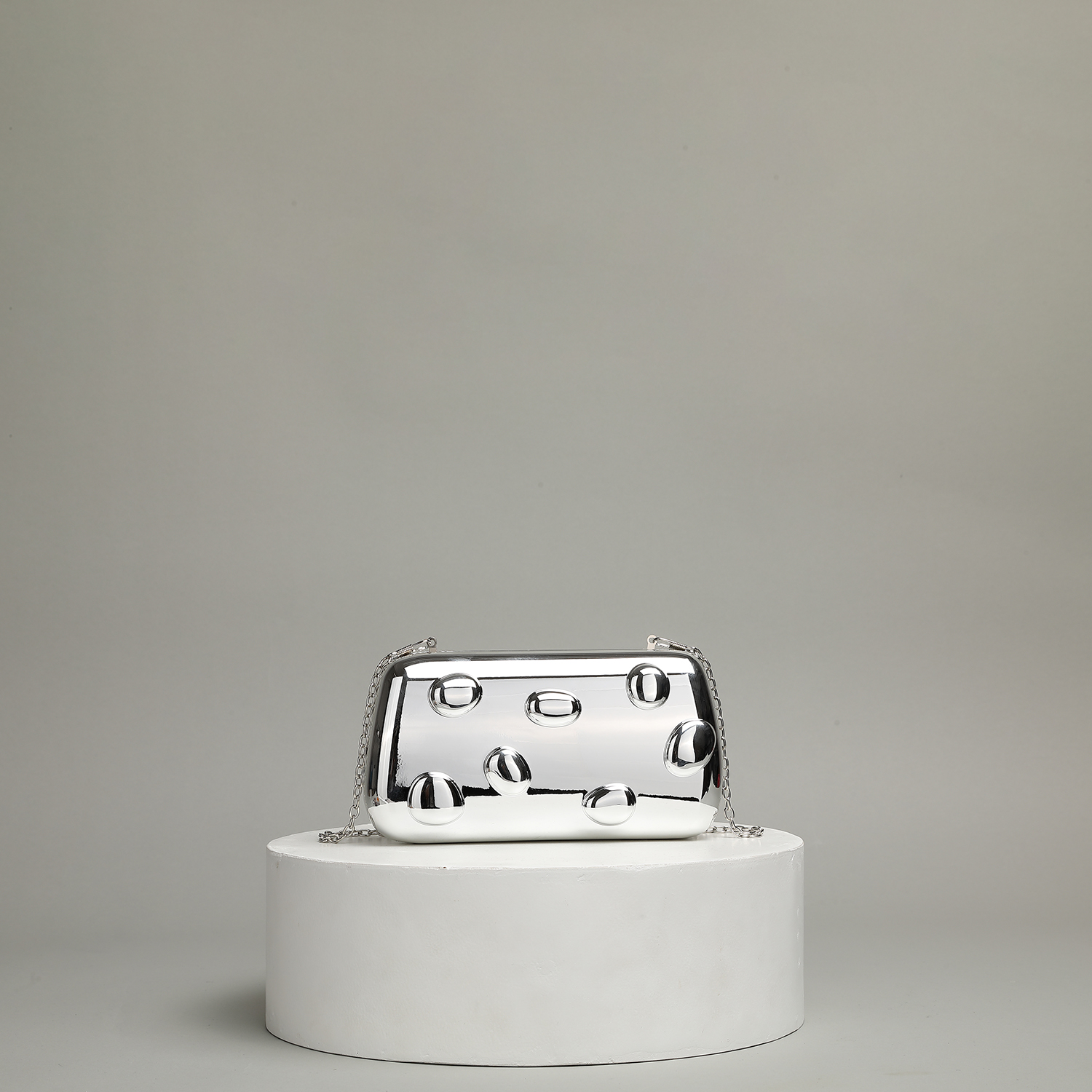 Silk hard-surface Clutch Bag, attached with hanging strap & with rhinestone, Solid, more colors for choice,  PC