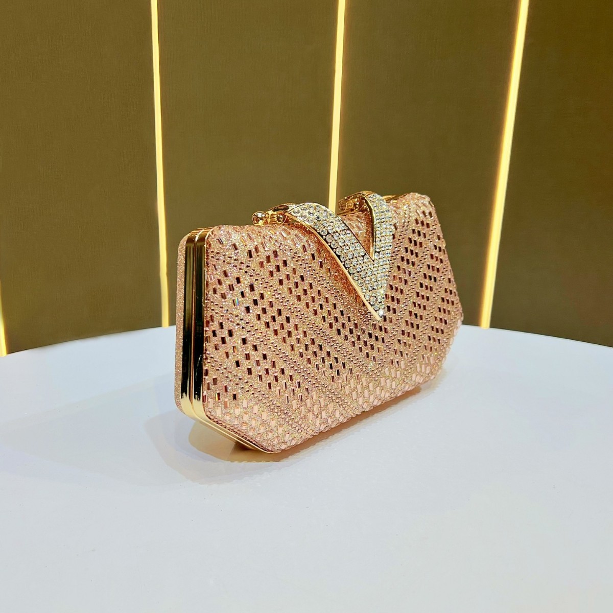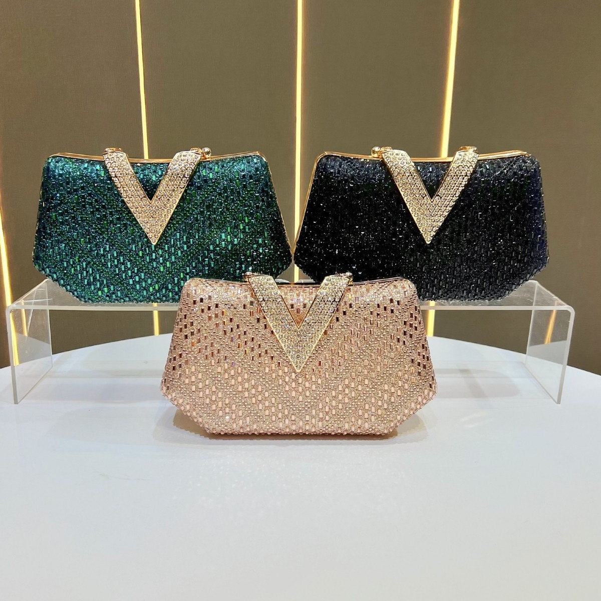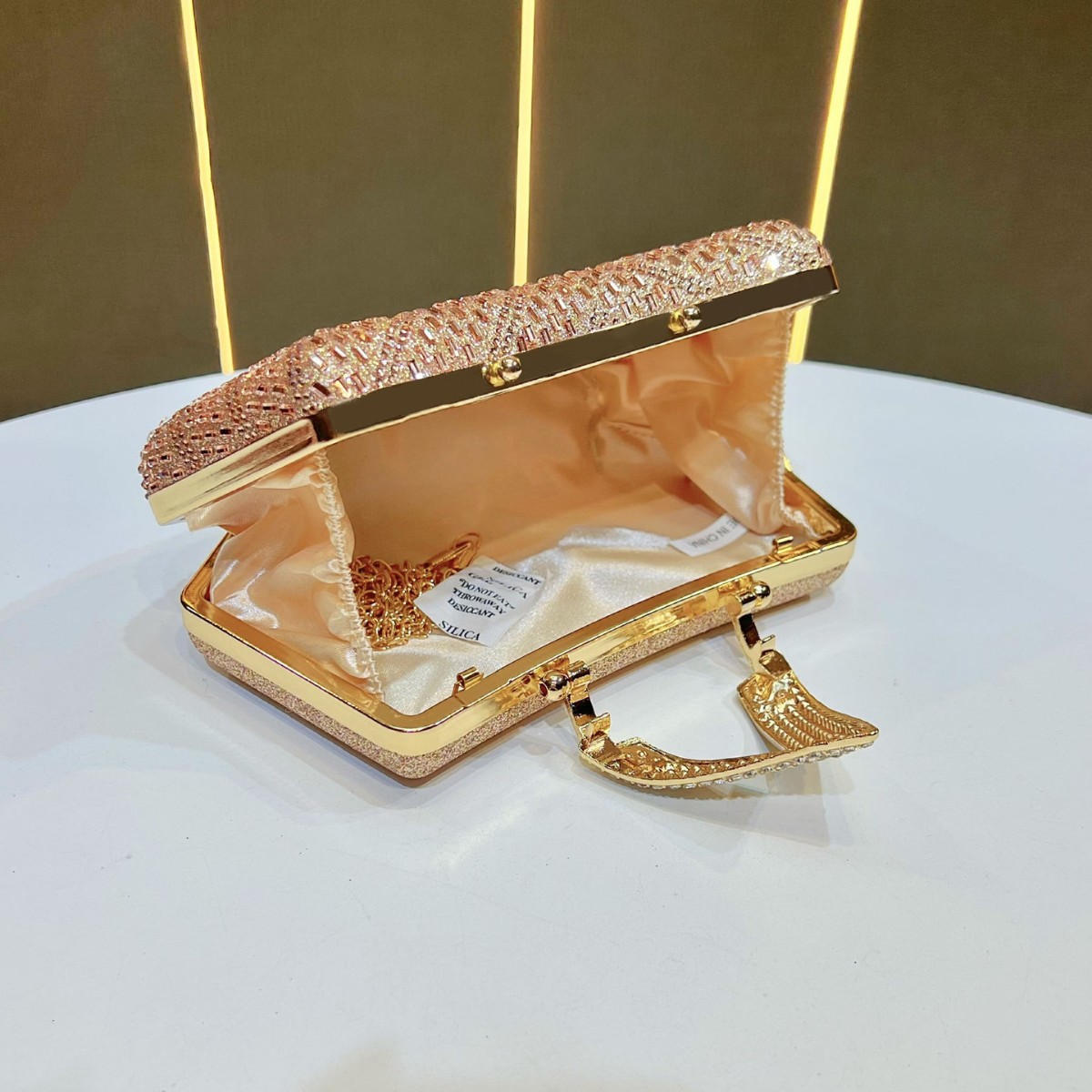 Polyester hard-surface Clutch Bag attached with hanging strap & with rhinestone PC