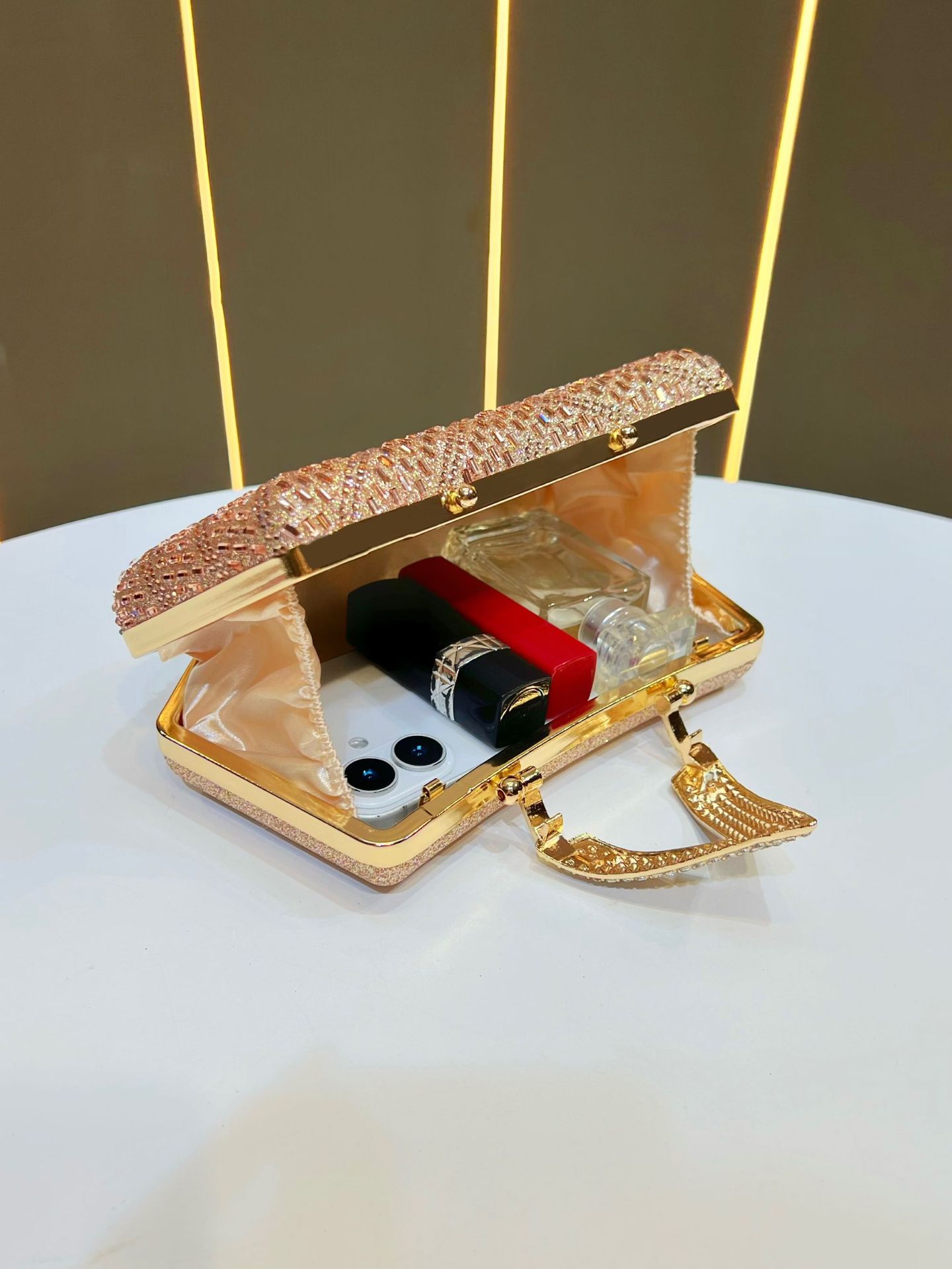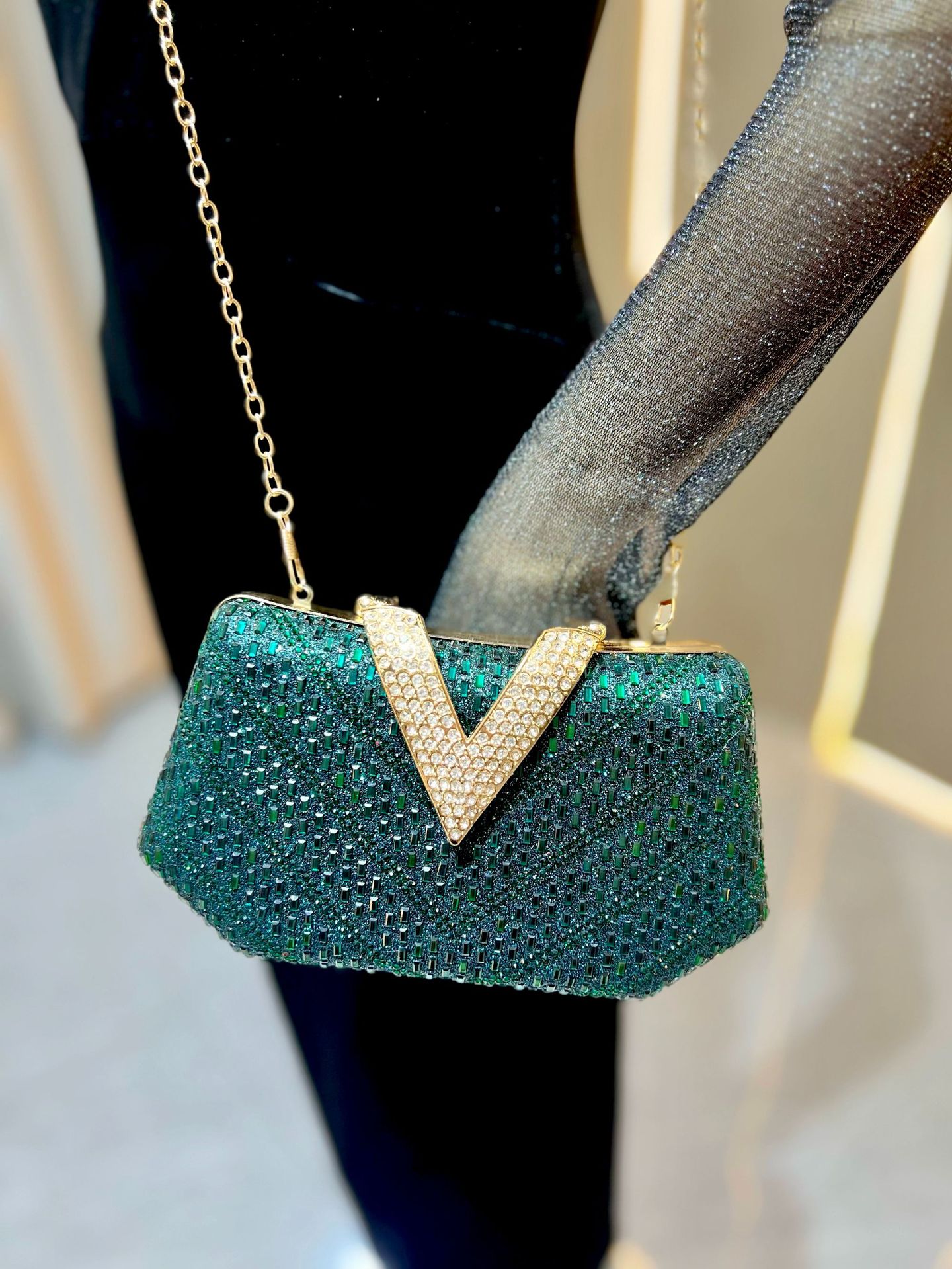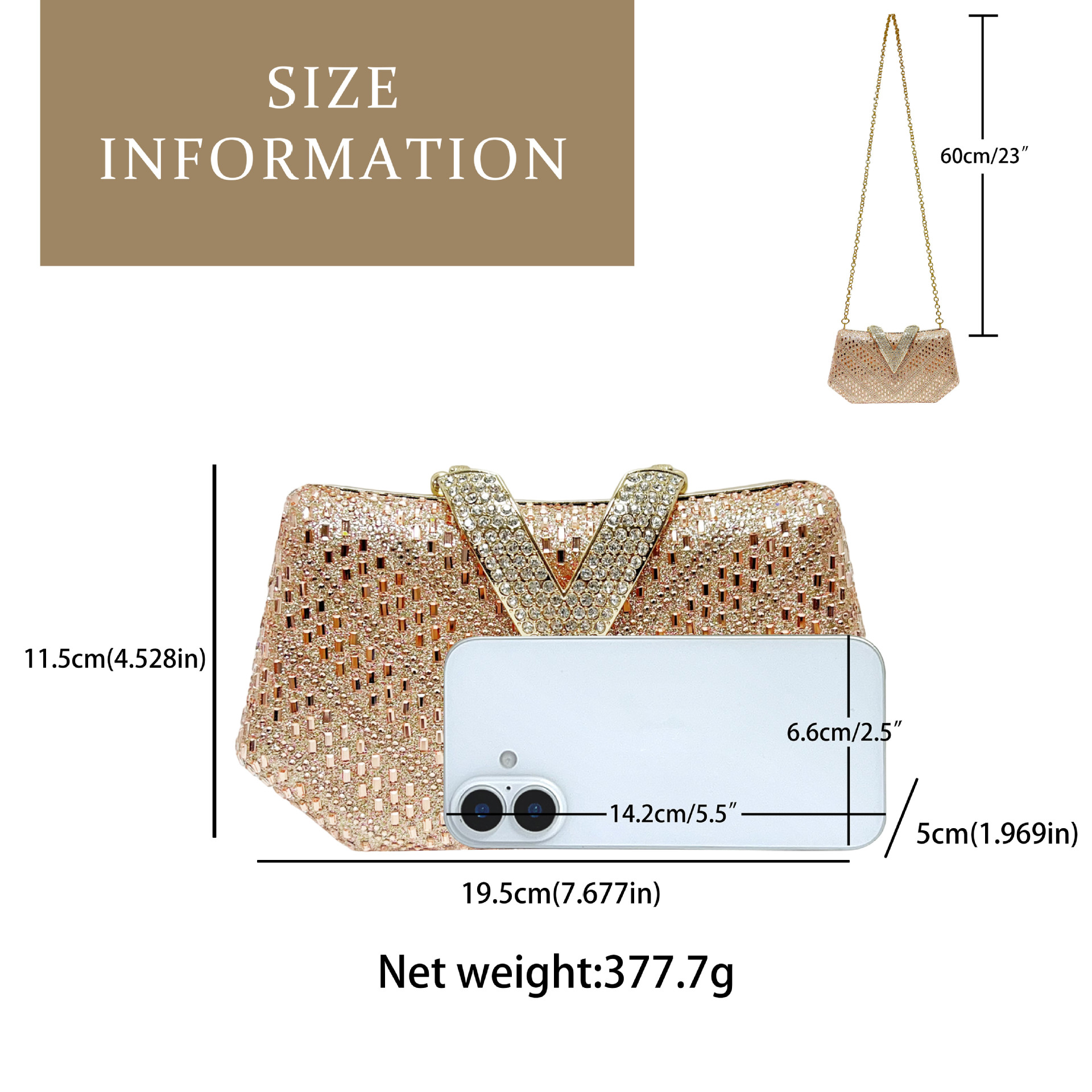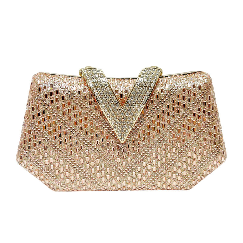 Polyester hard-surface Clutch Bag attached with hanging strap & with rhinestone PC