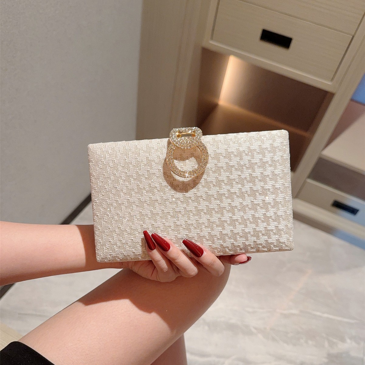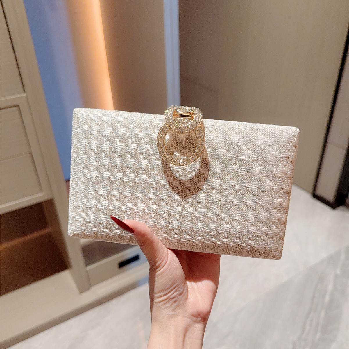 Polyester Clutch Bag attached with hanging strap & with rhinestone white PC