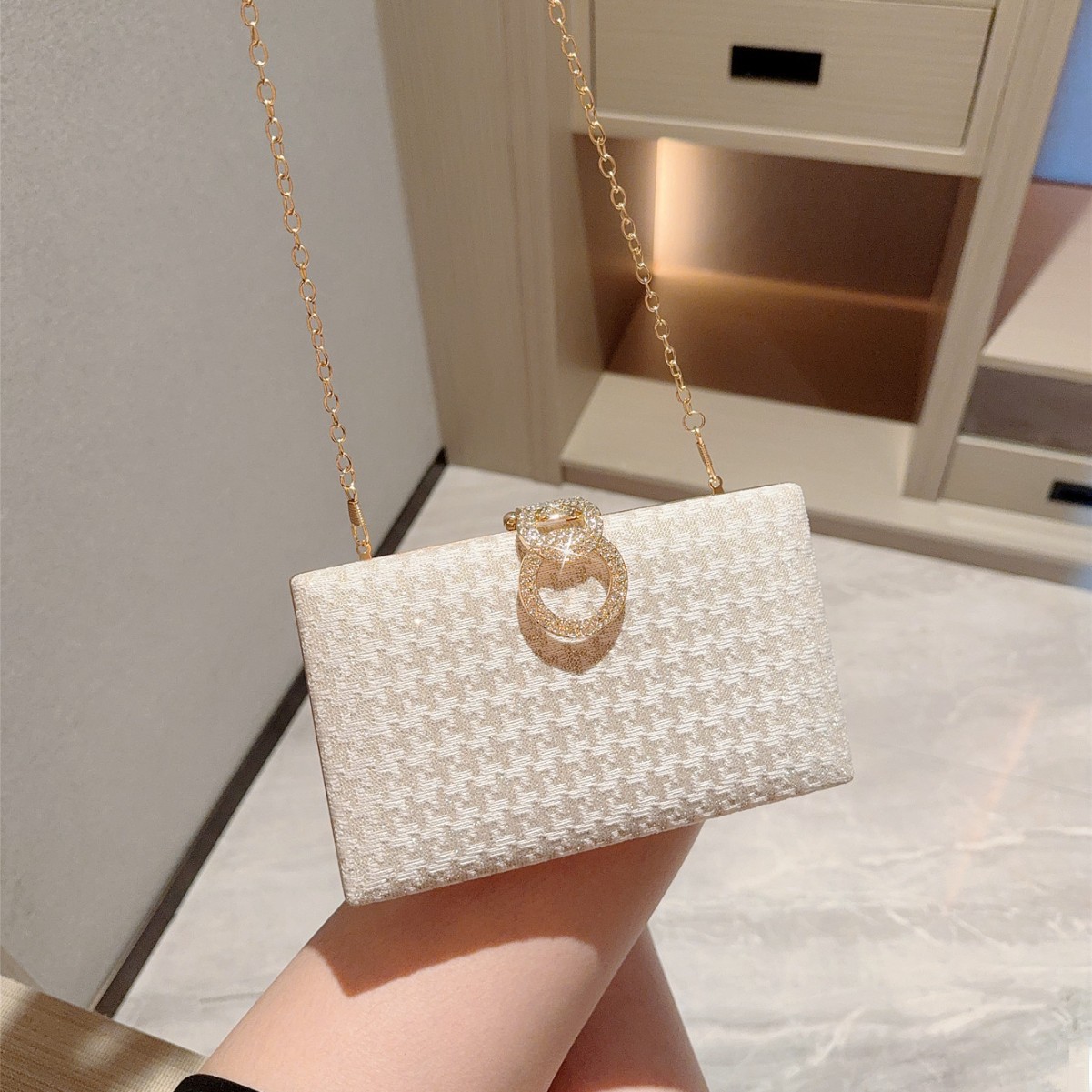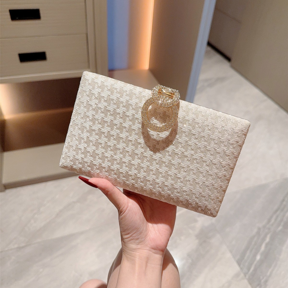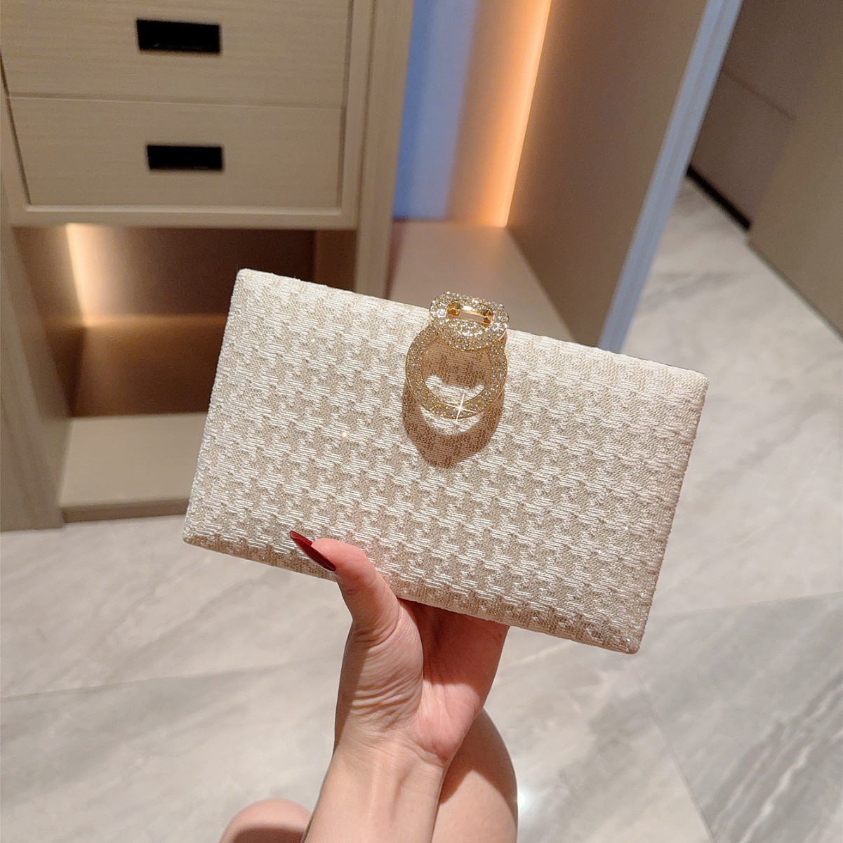 Silk hard-surface Clutch Bag, attached with hanging strap & with rhinestone, Solid, more colors for choice,  PC