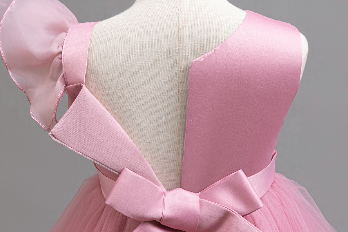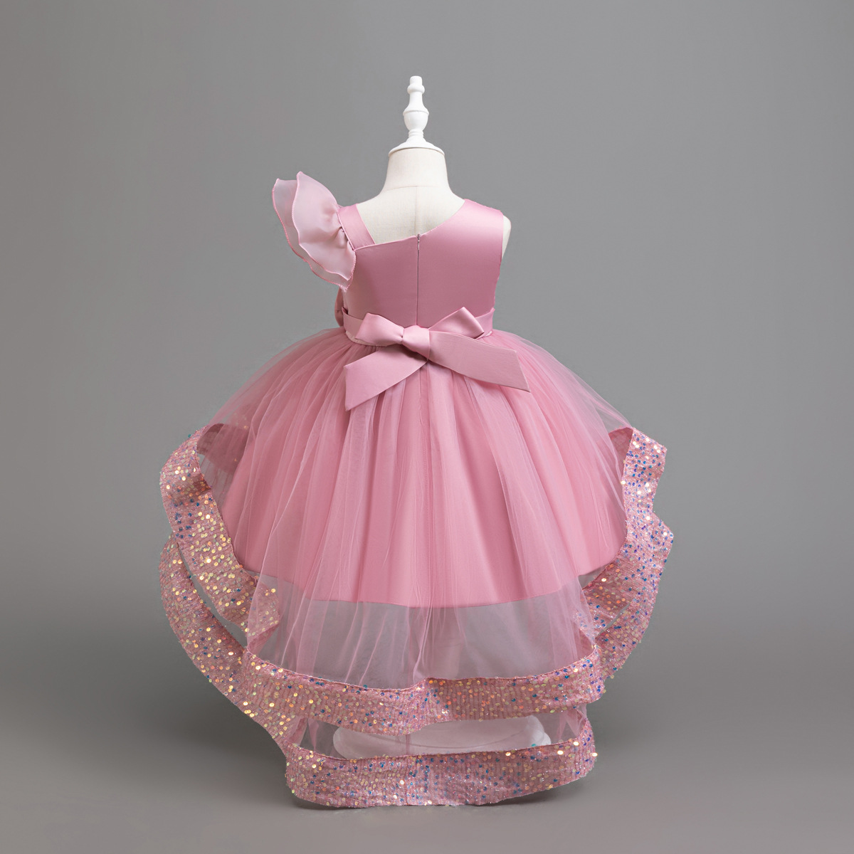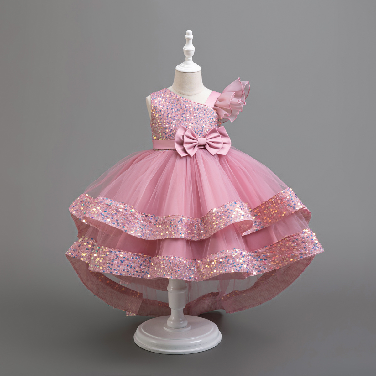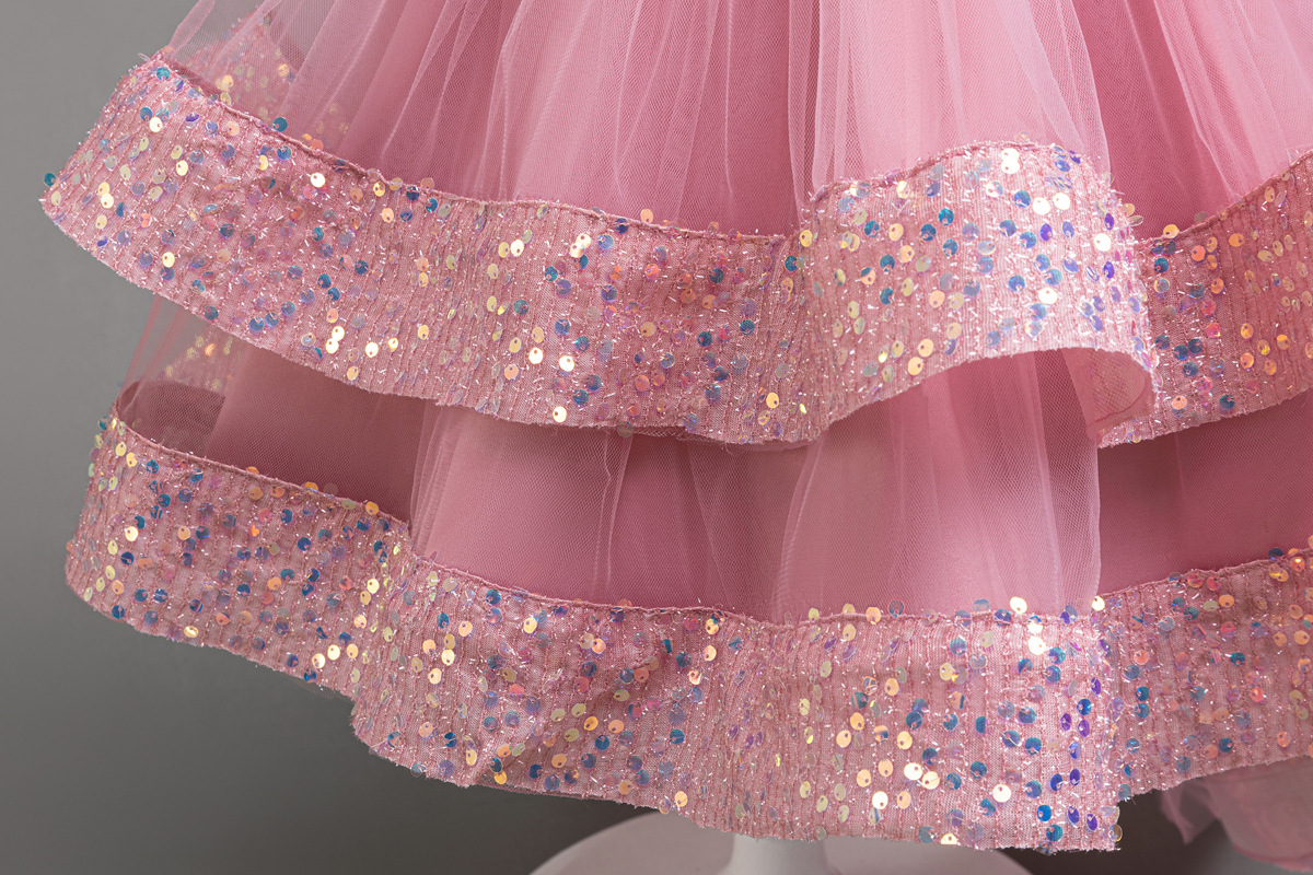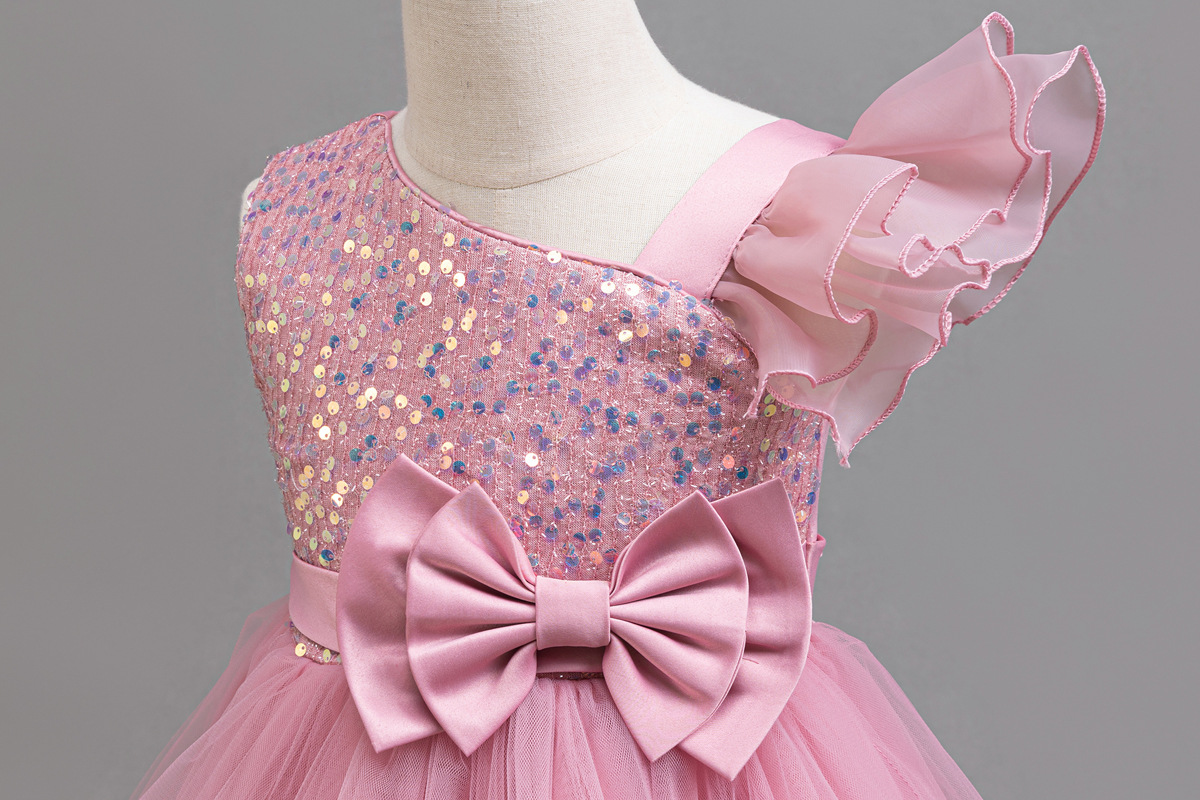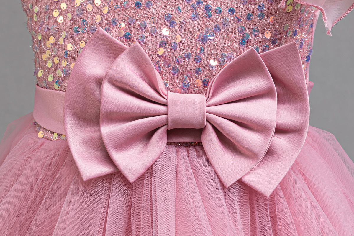 Polyester & Cotton Princess Girl One-piece Dress with bowknot Sequin Solid PC