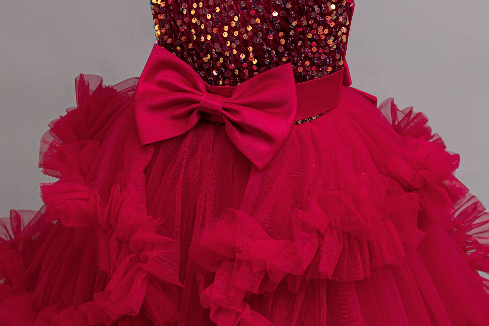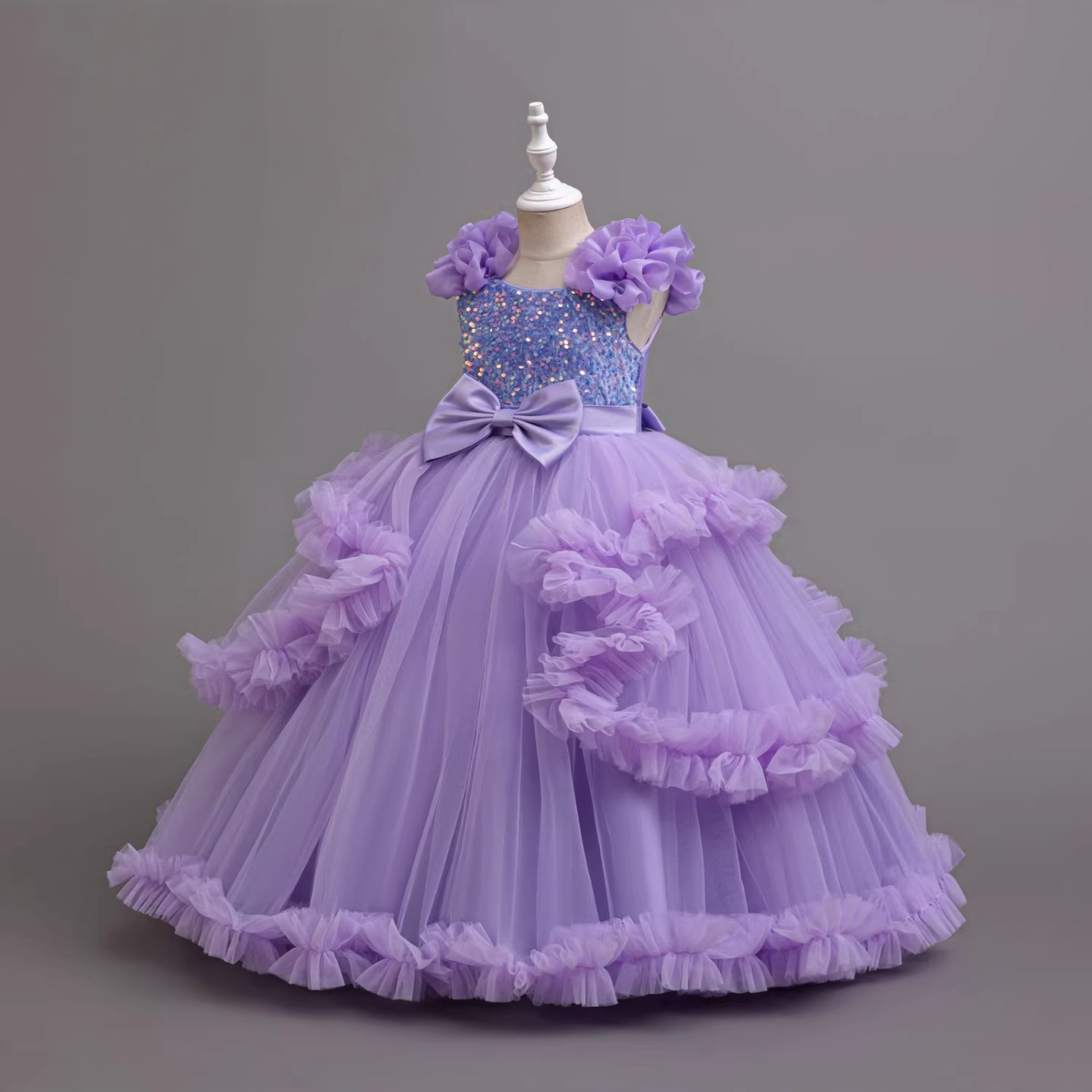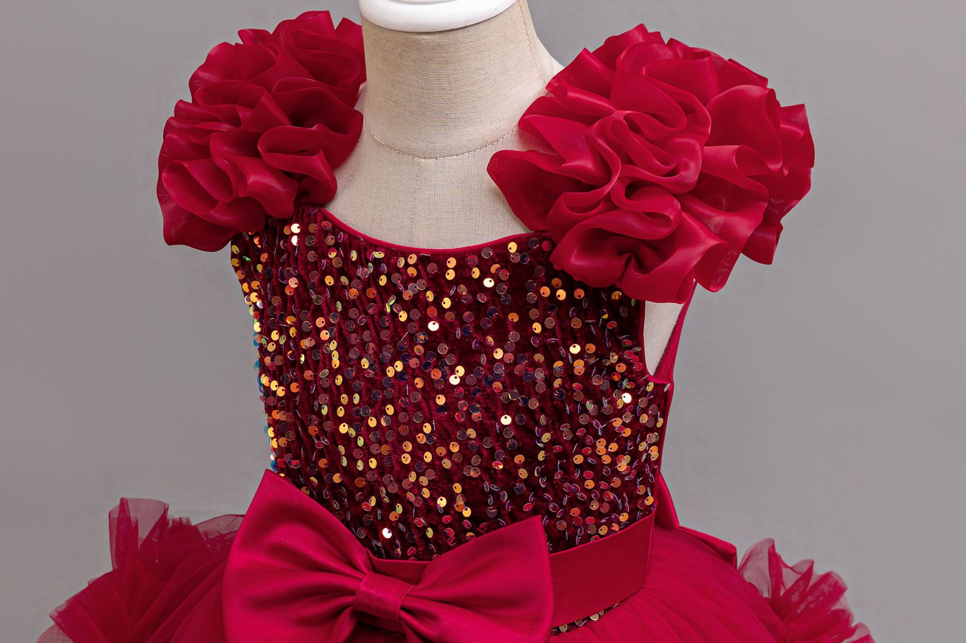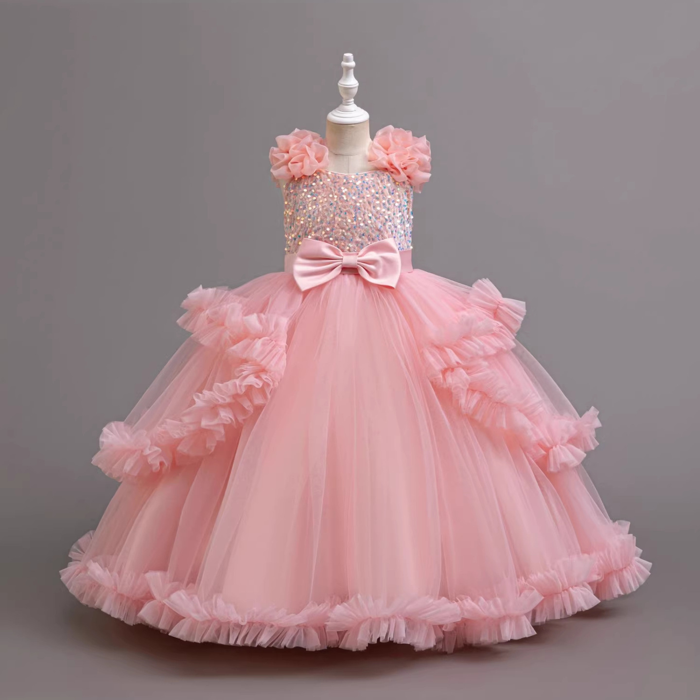 Polyester & Cotton Princess Girl One-piece Dress with bowknot Sequin PC