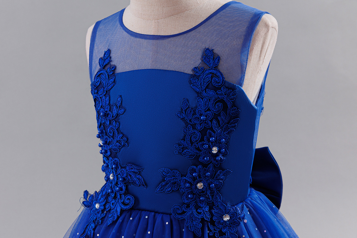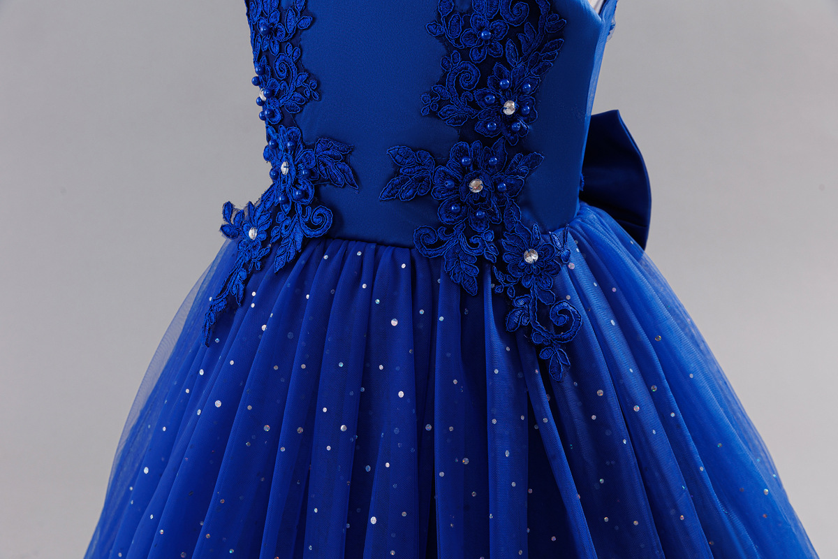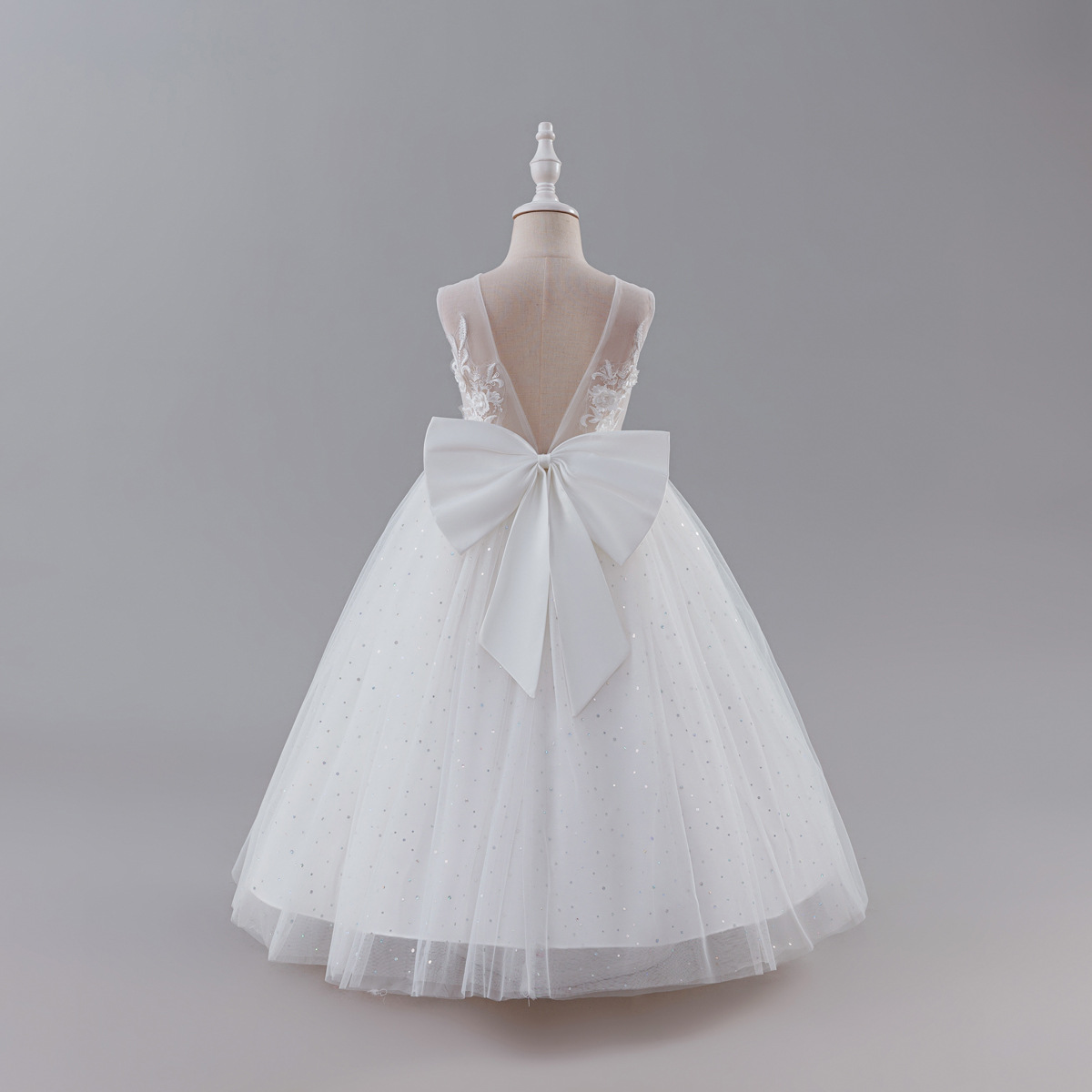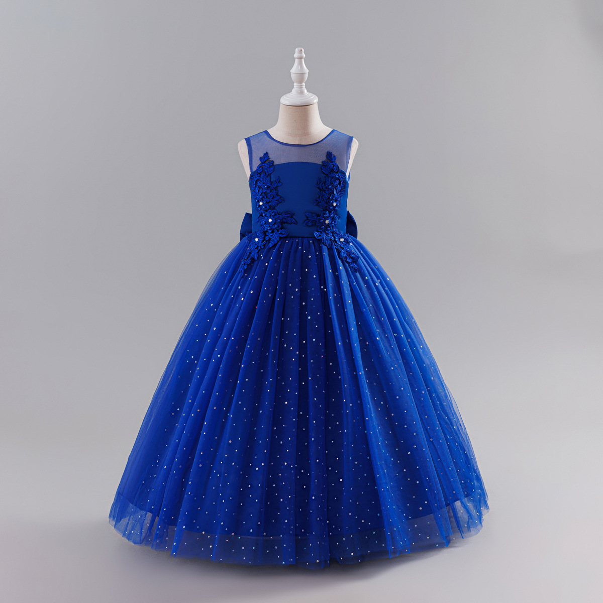 Polyester & Cotton Princess Girl One-piece Dress with bowknot Sequin embroider PC