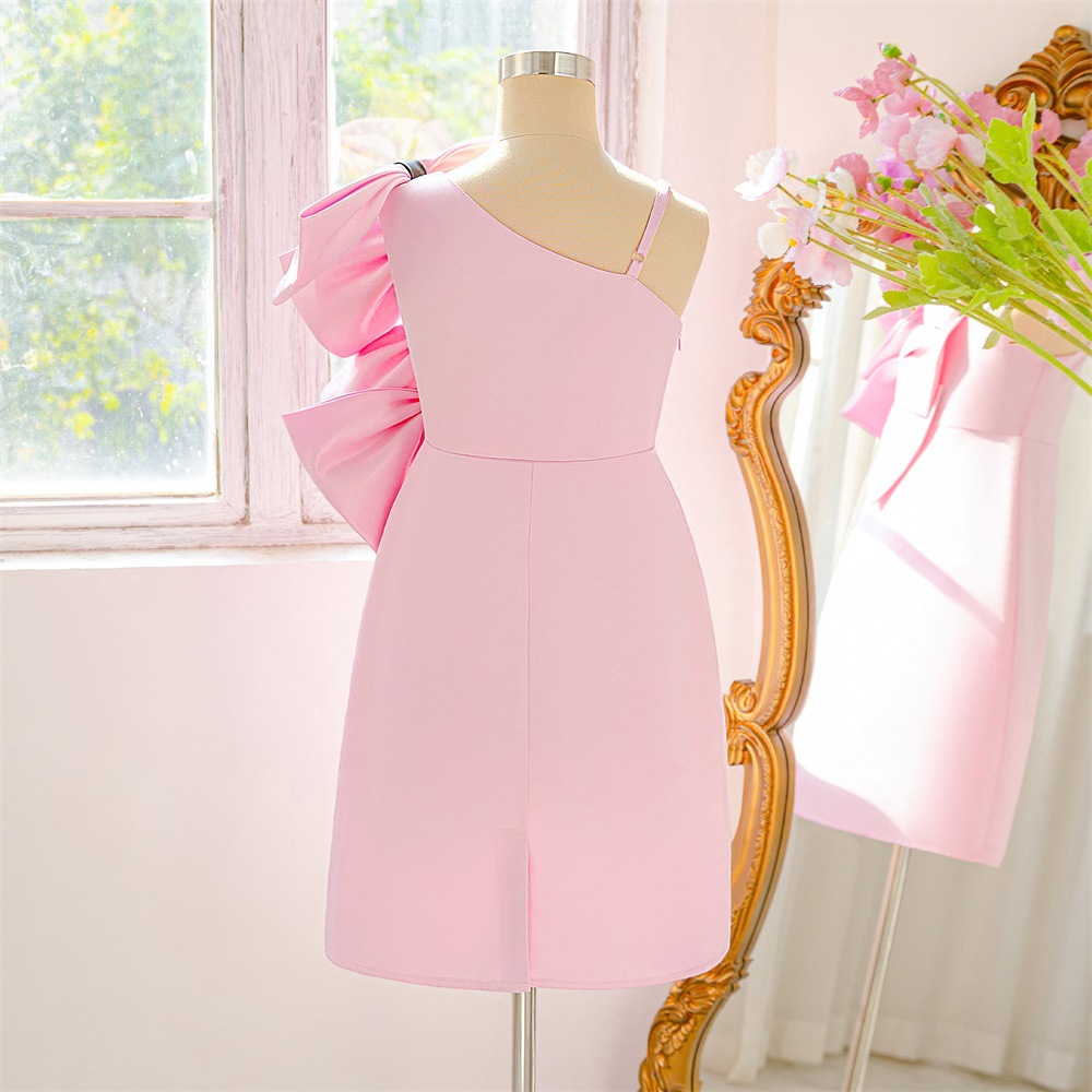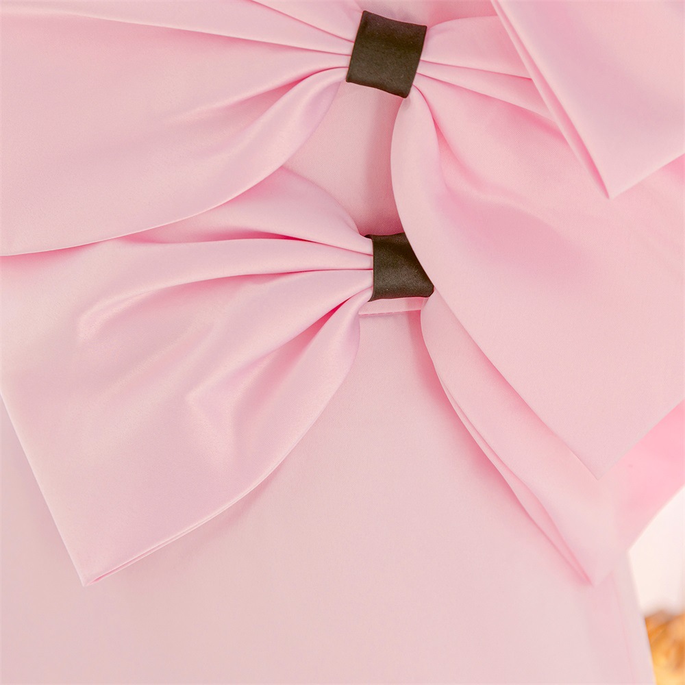 Polyester & Cotton Princess Girl One-piece Dress with bowknot Viscose Solid light pink PC