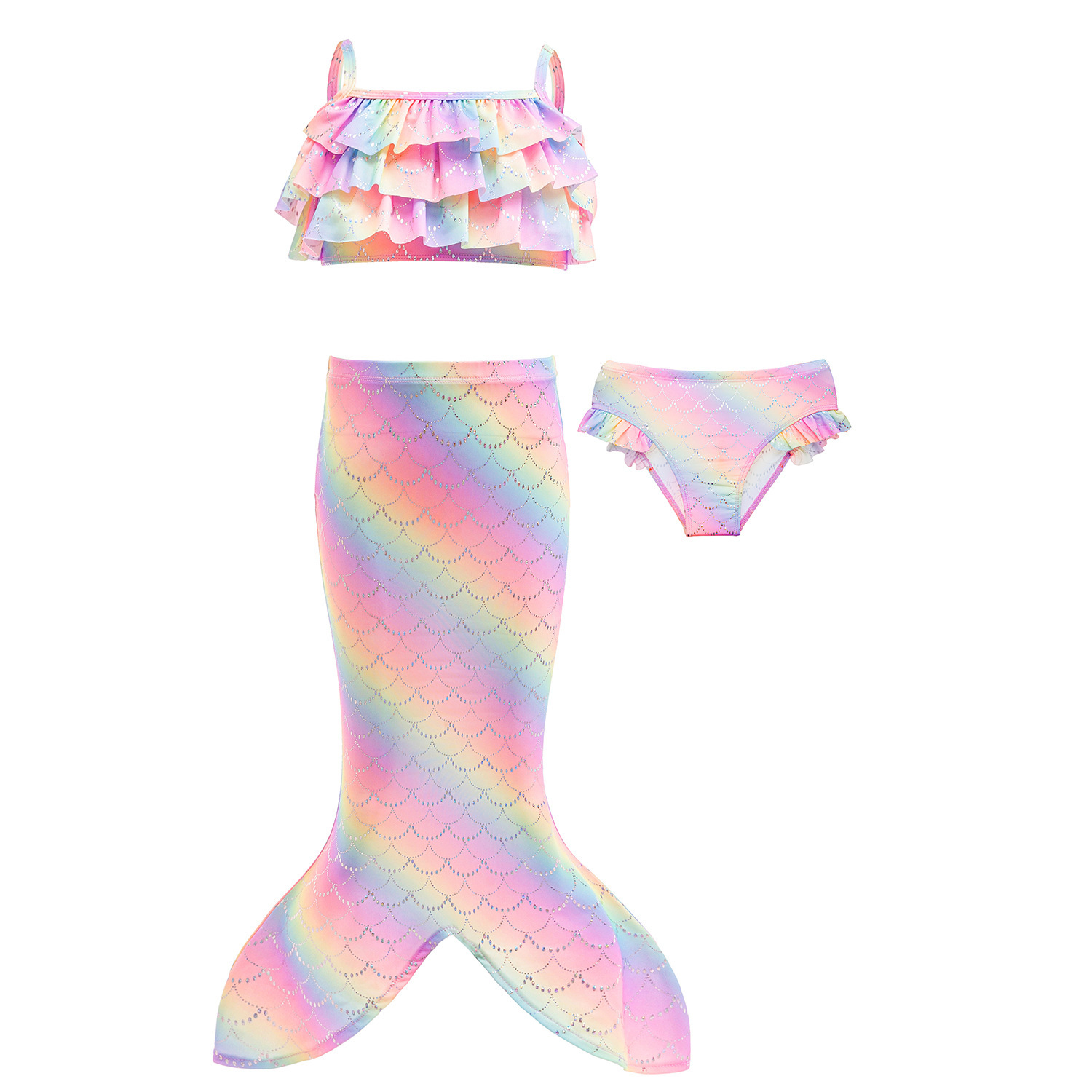 Polyester Girl Kids Three-piece Swimsuit & three piece Set