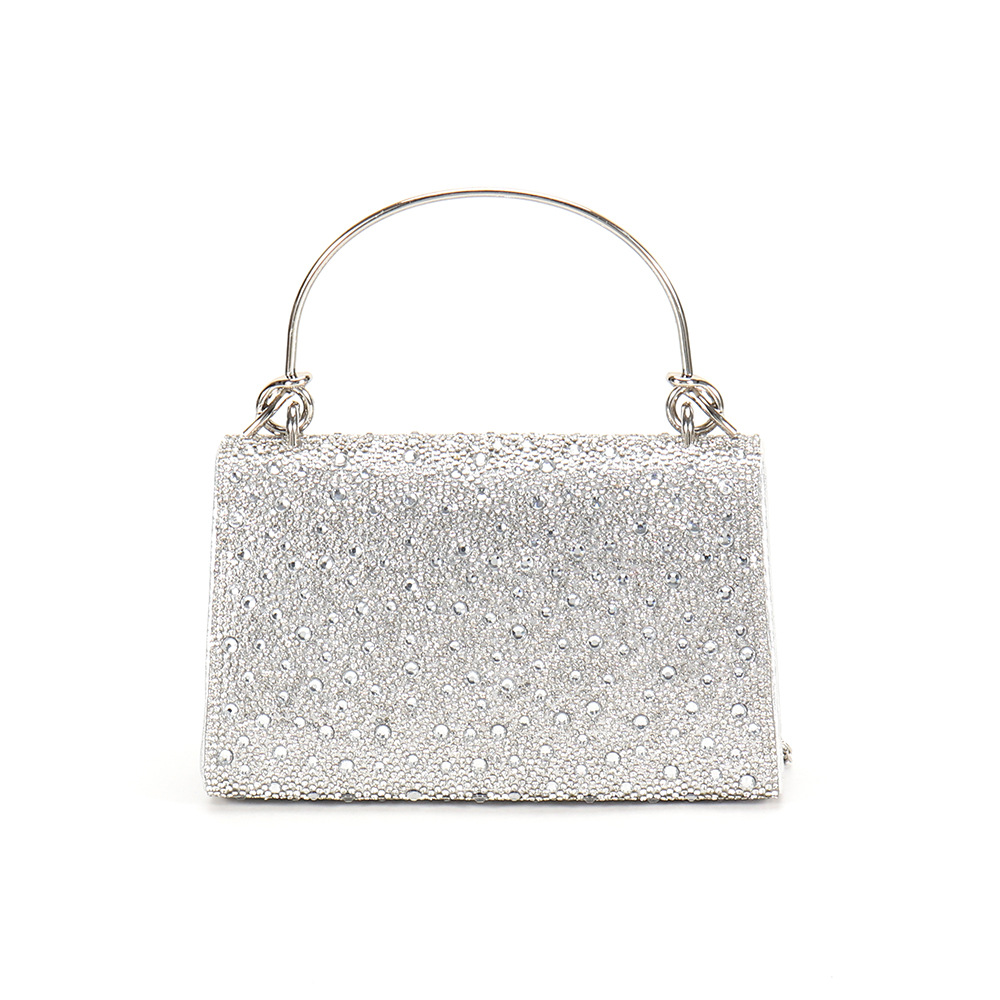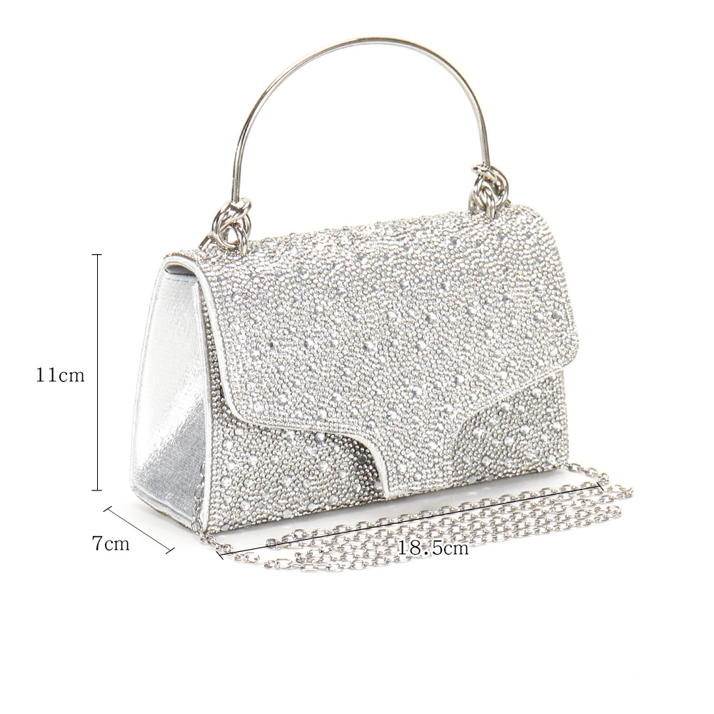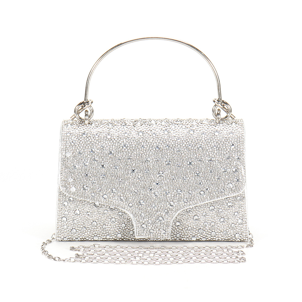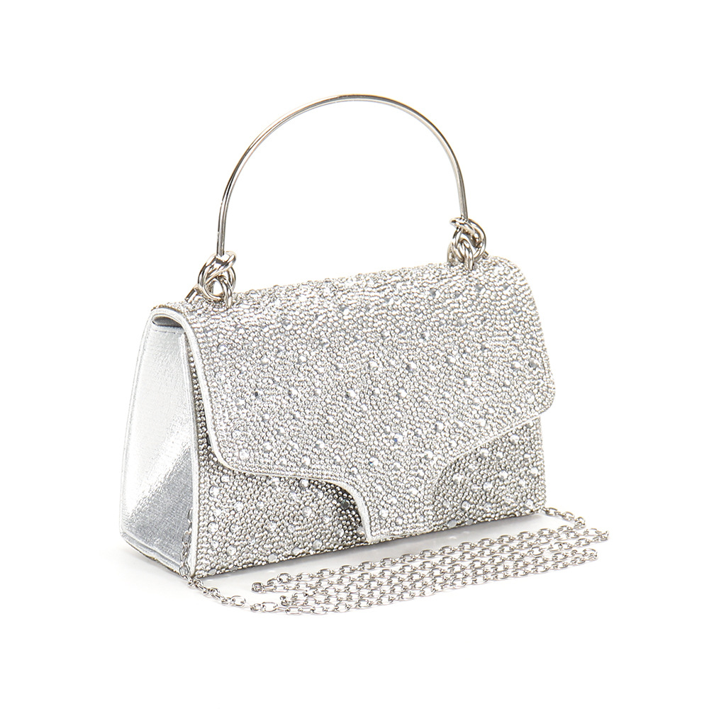 Polyester Handbag with chain & durable & with rhinestone Solid silver PC