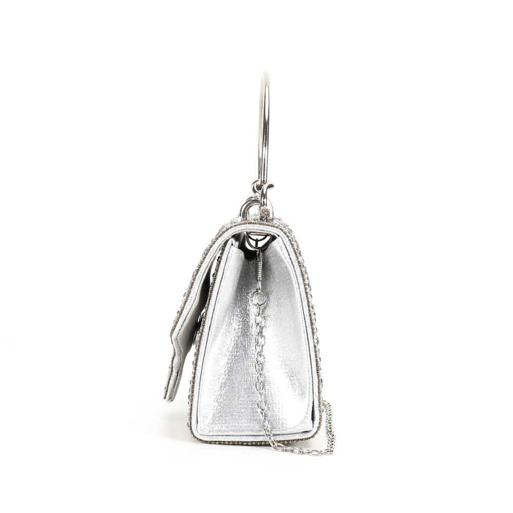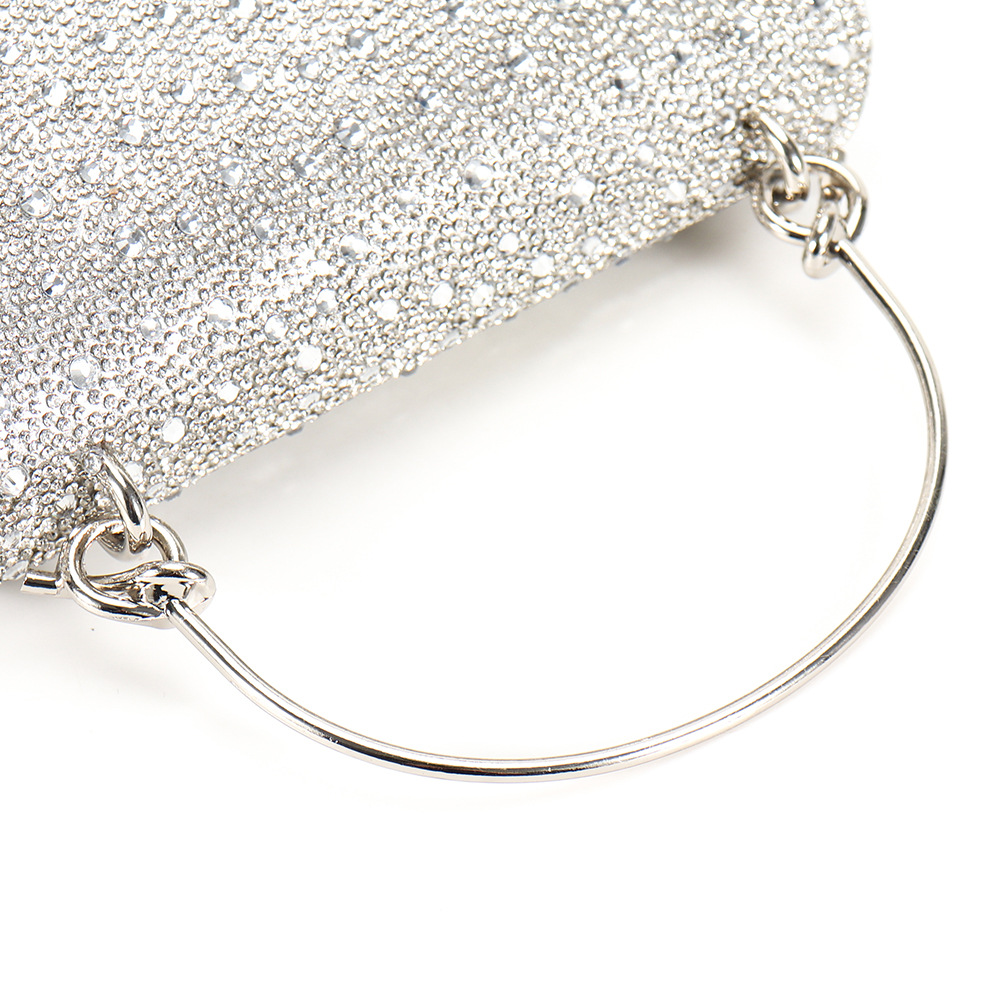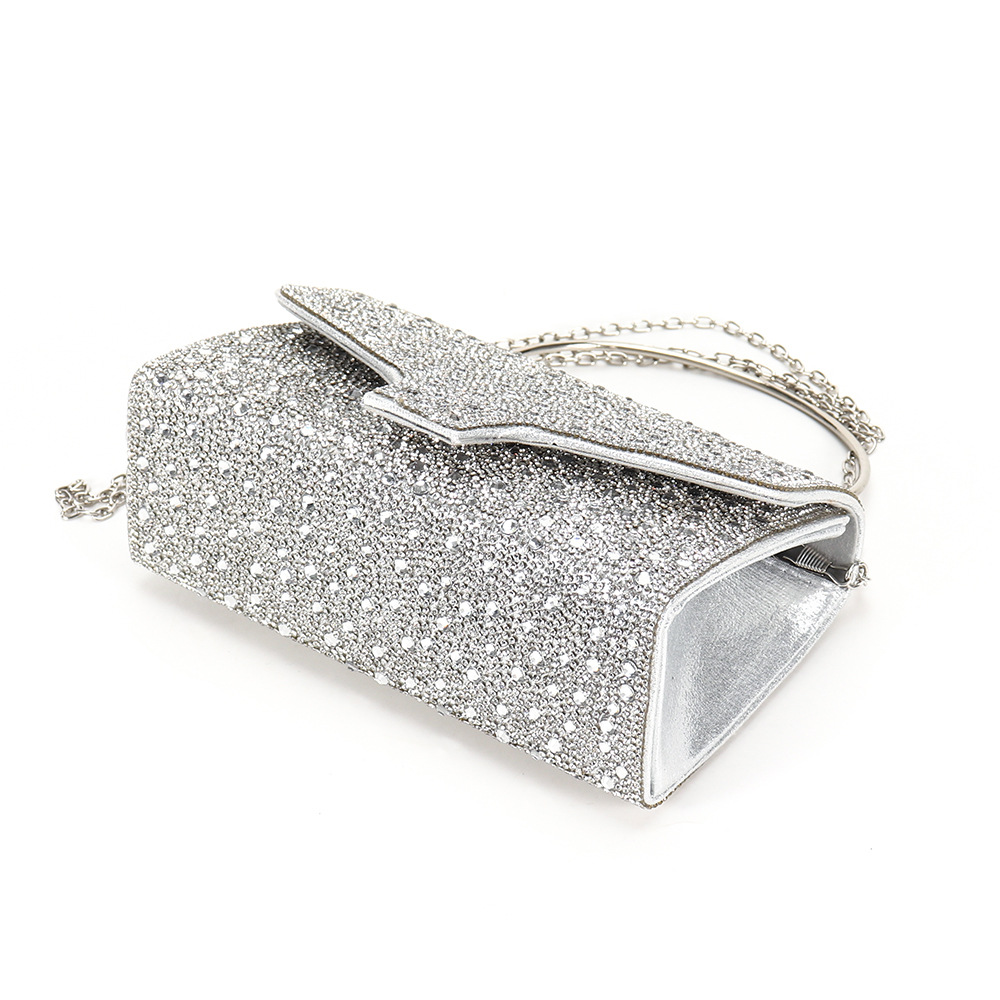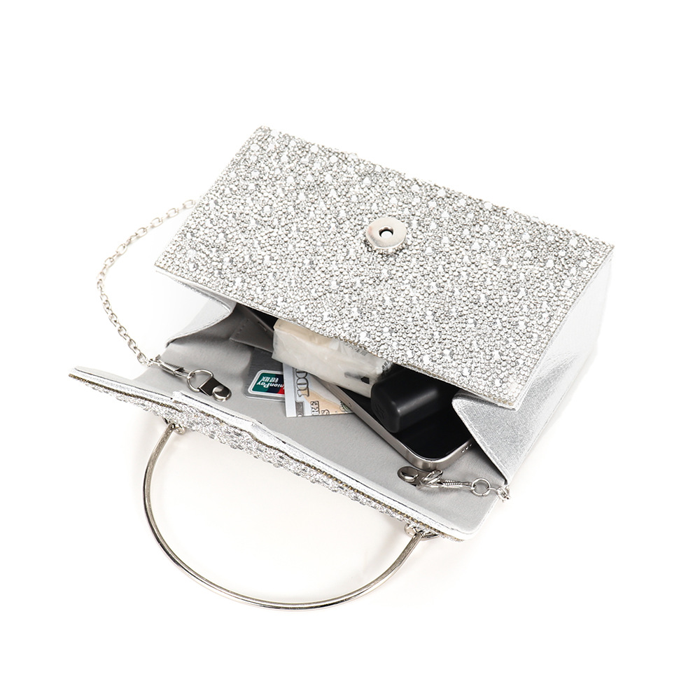 Polyester Handbag with chain & durable & with rhinestone Solid silver PC