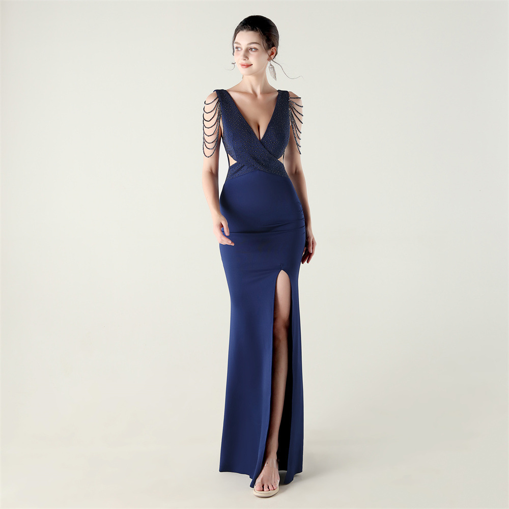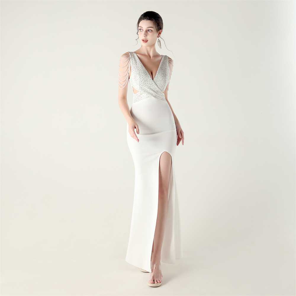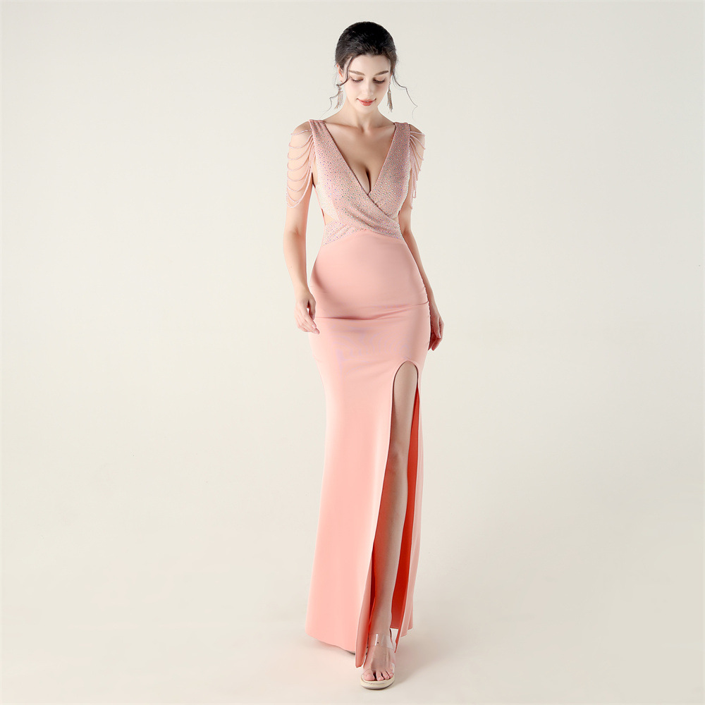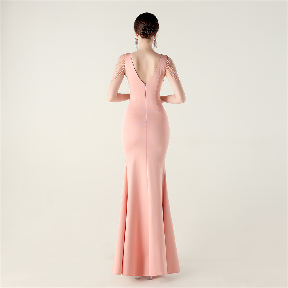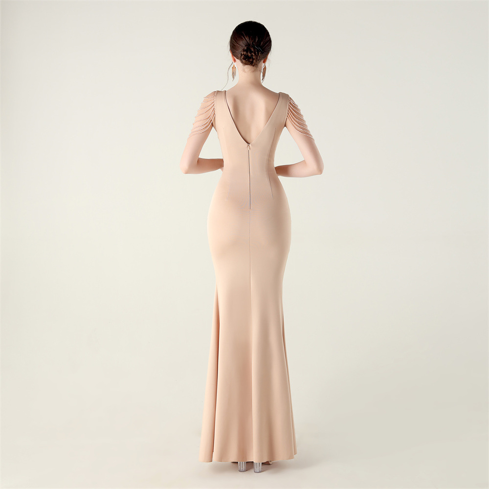 Polyester Slim Long Evening Dress side slit iron-on PC