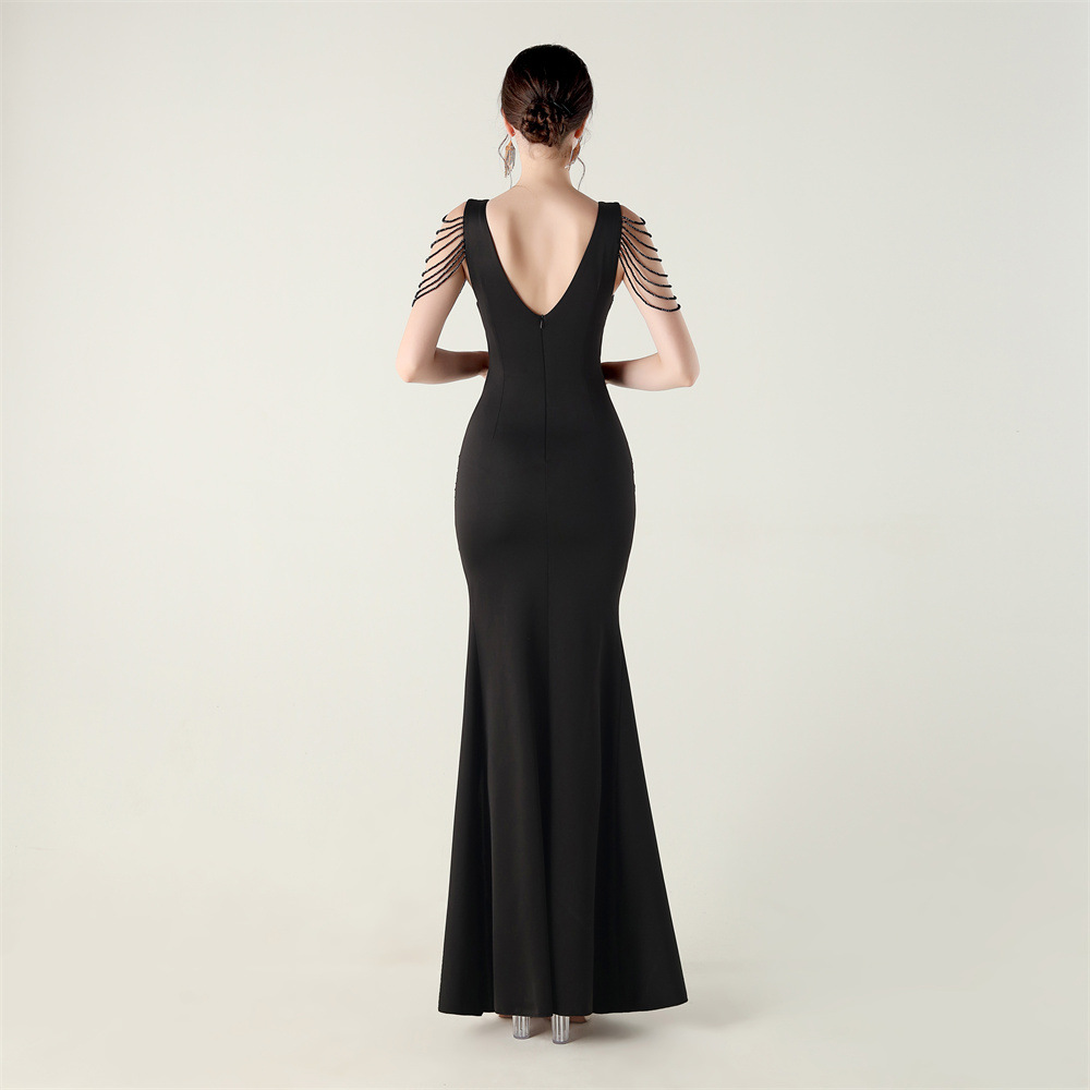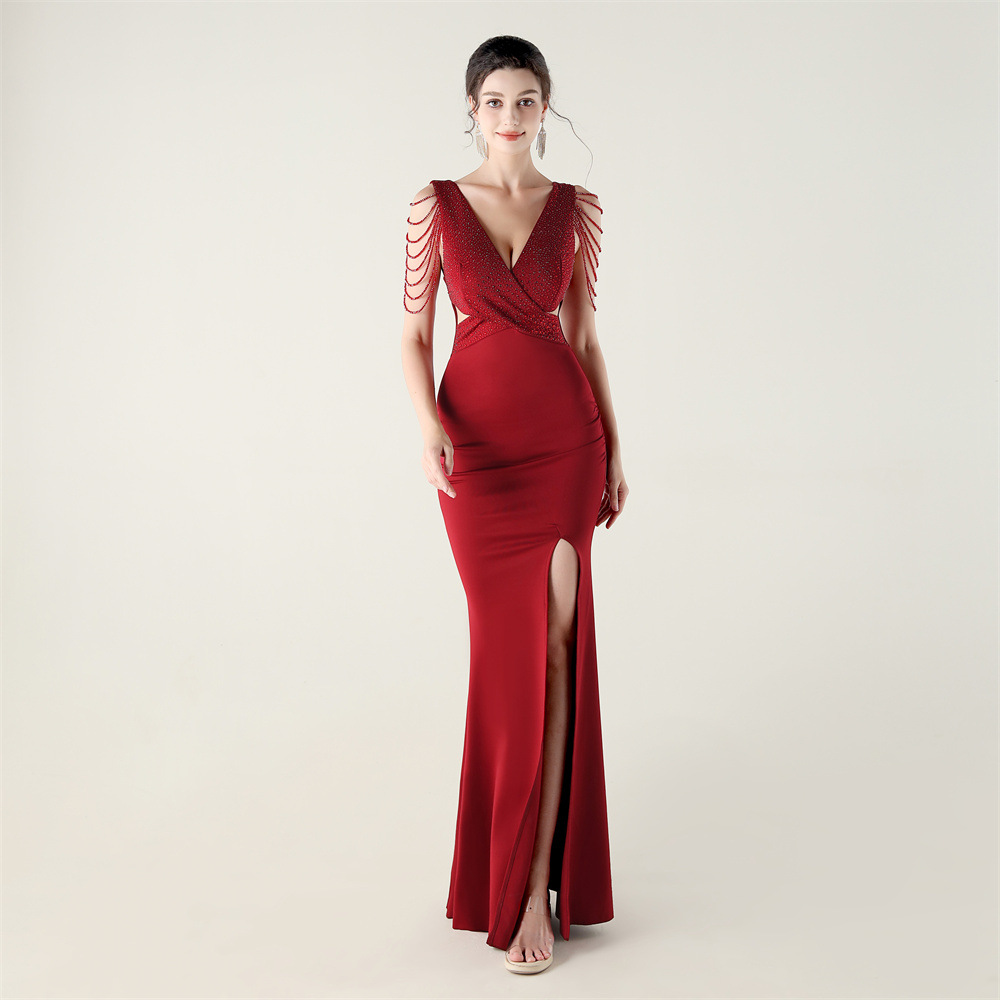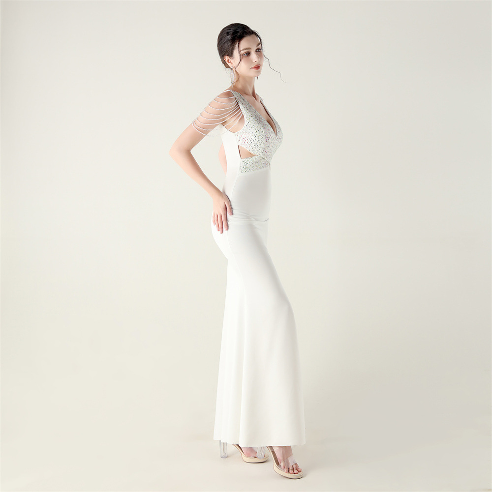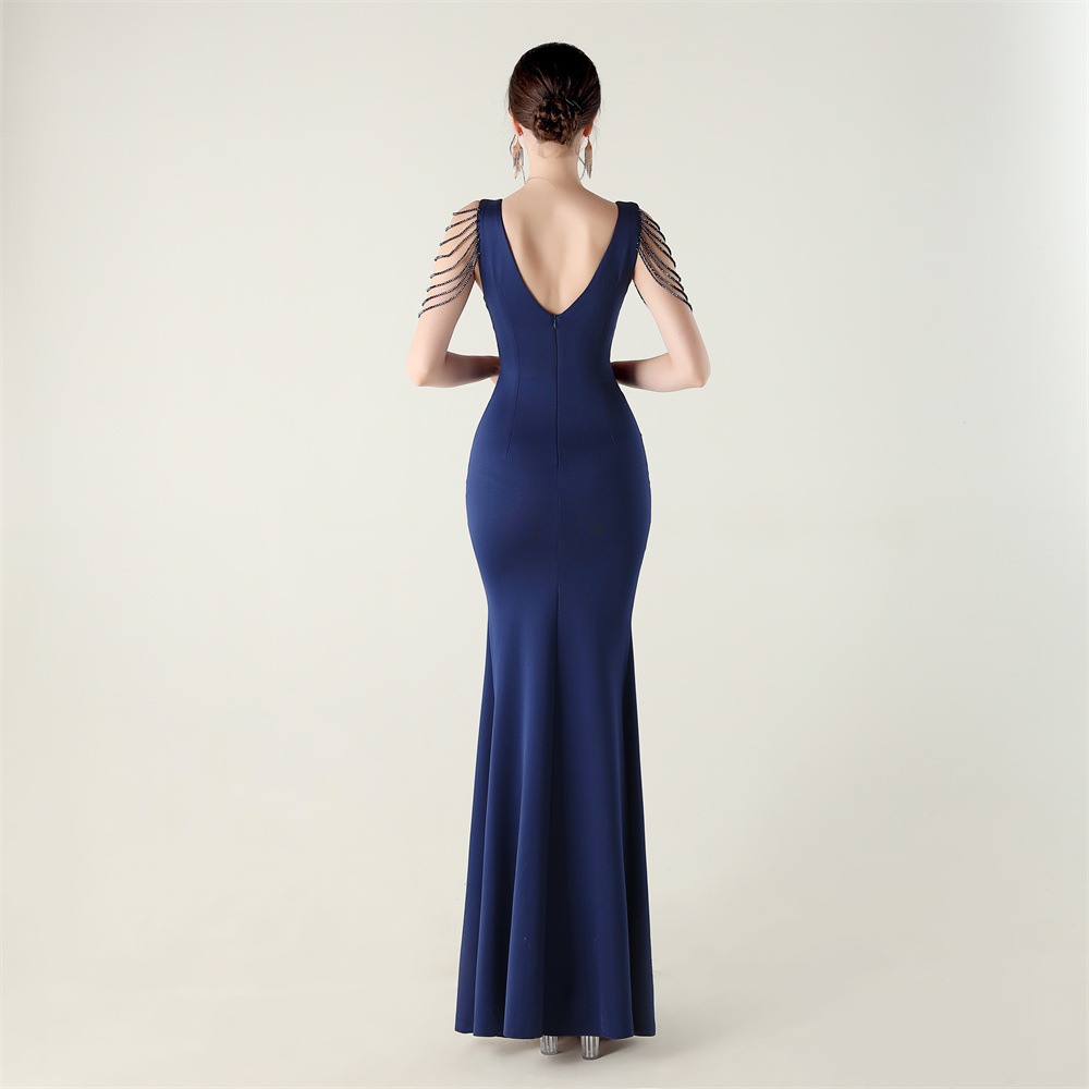Polyester Slim Long Evening Dress side slit iron-on PC