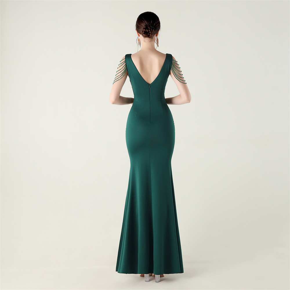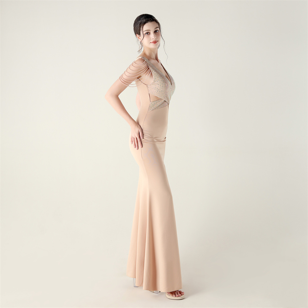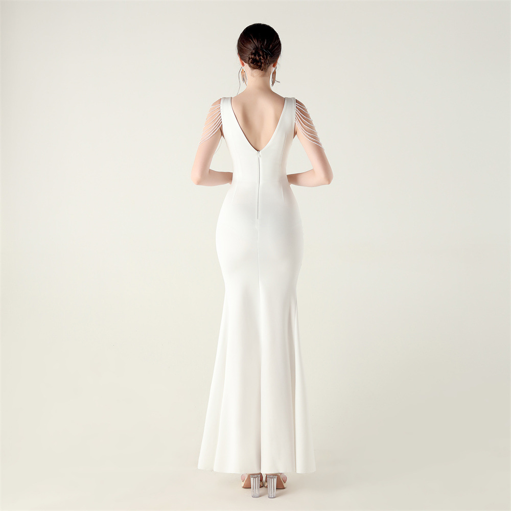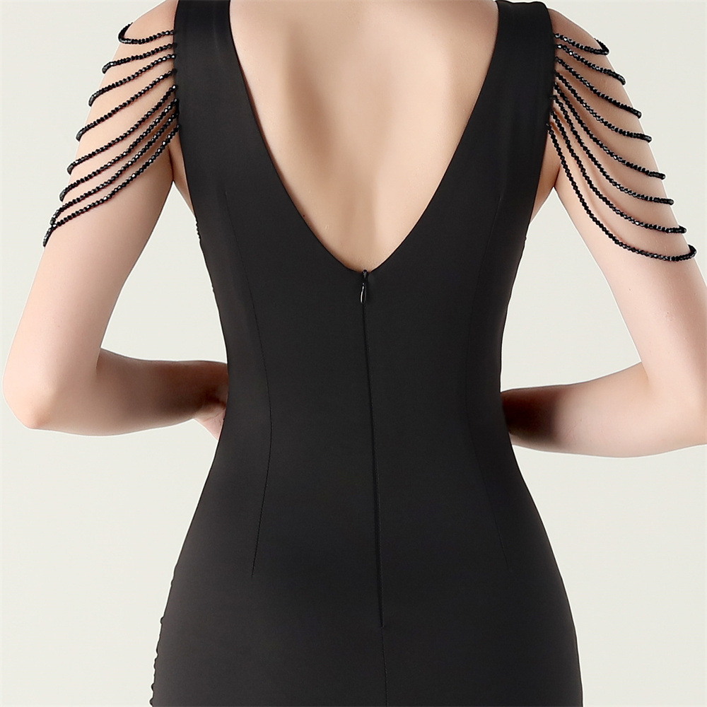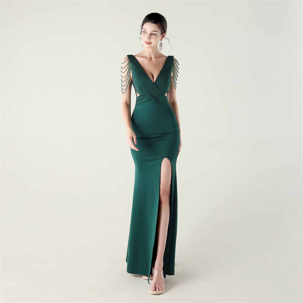 Polyester Slim Long Evening Dress side slit iron-on PC