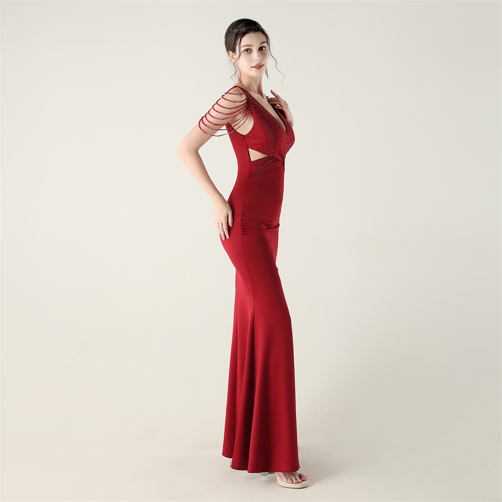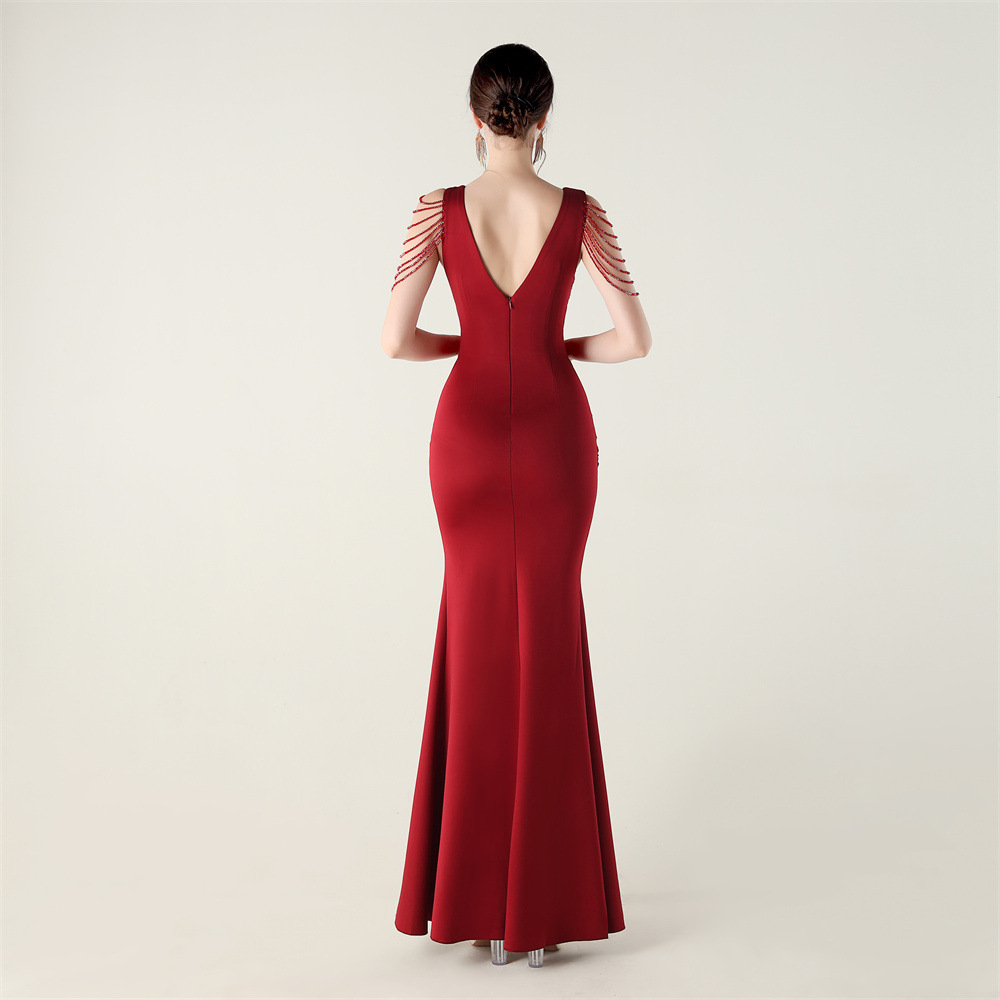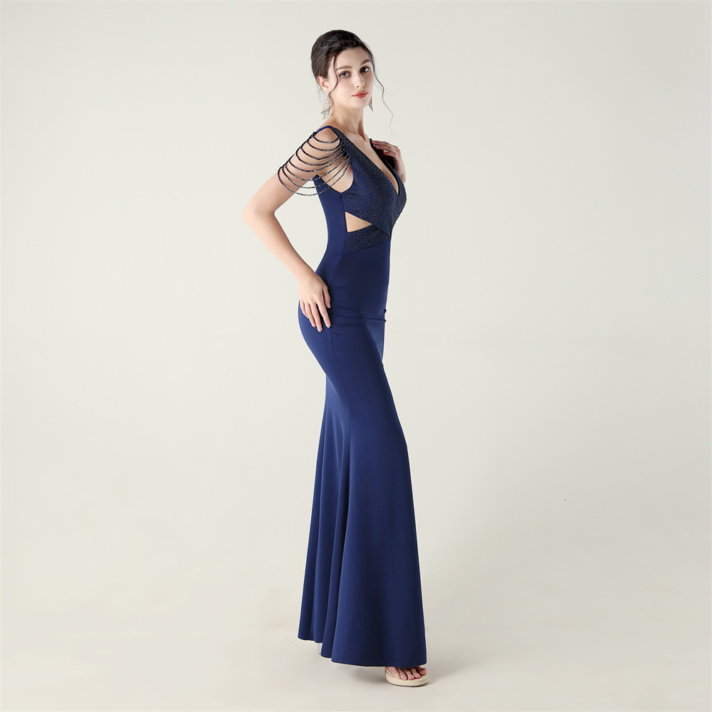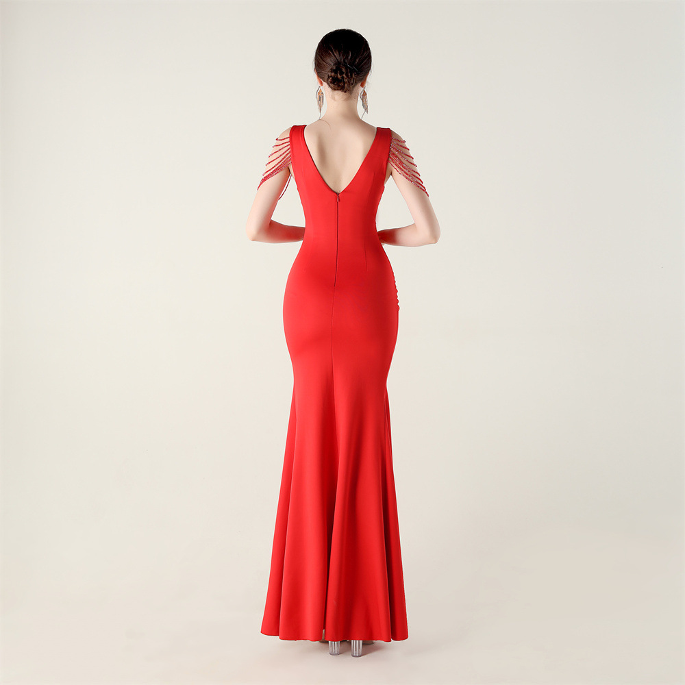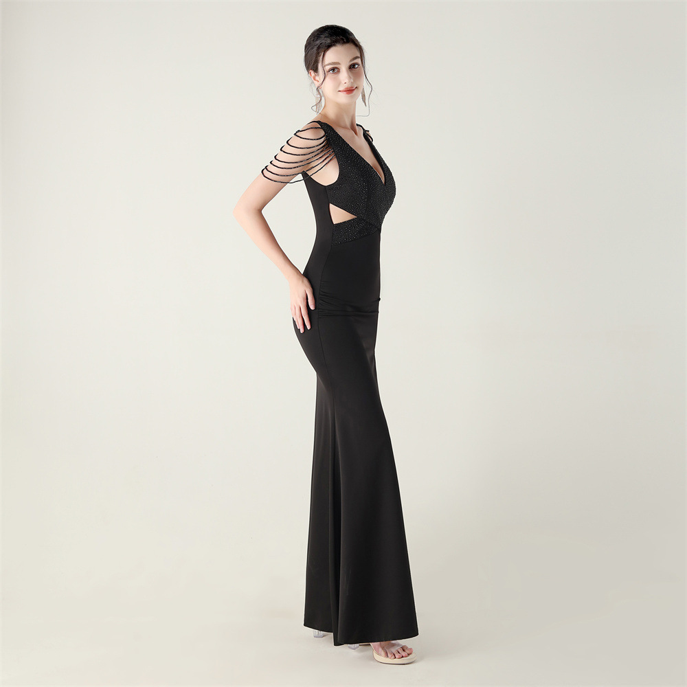 Polyester Slim Long Evening Dress side slit iron-on PC