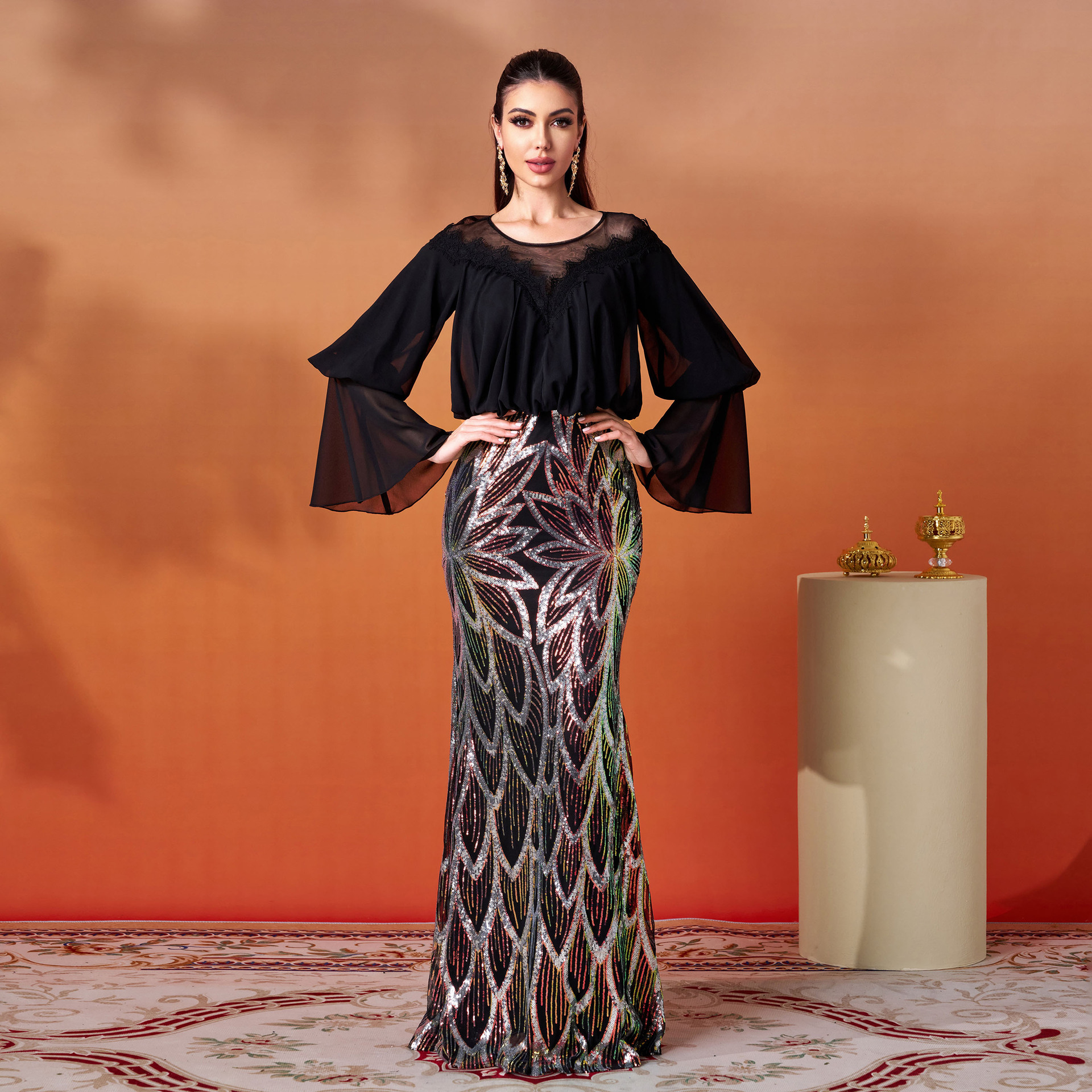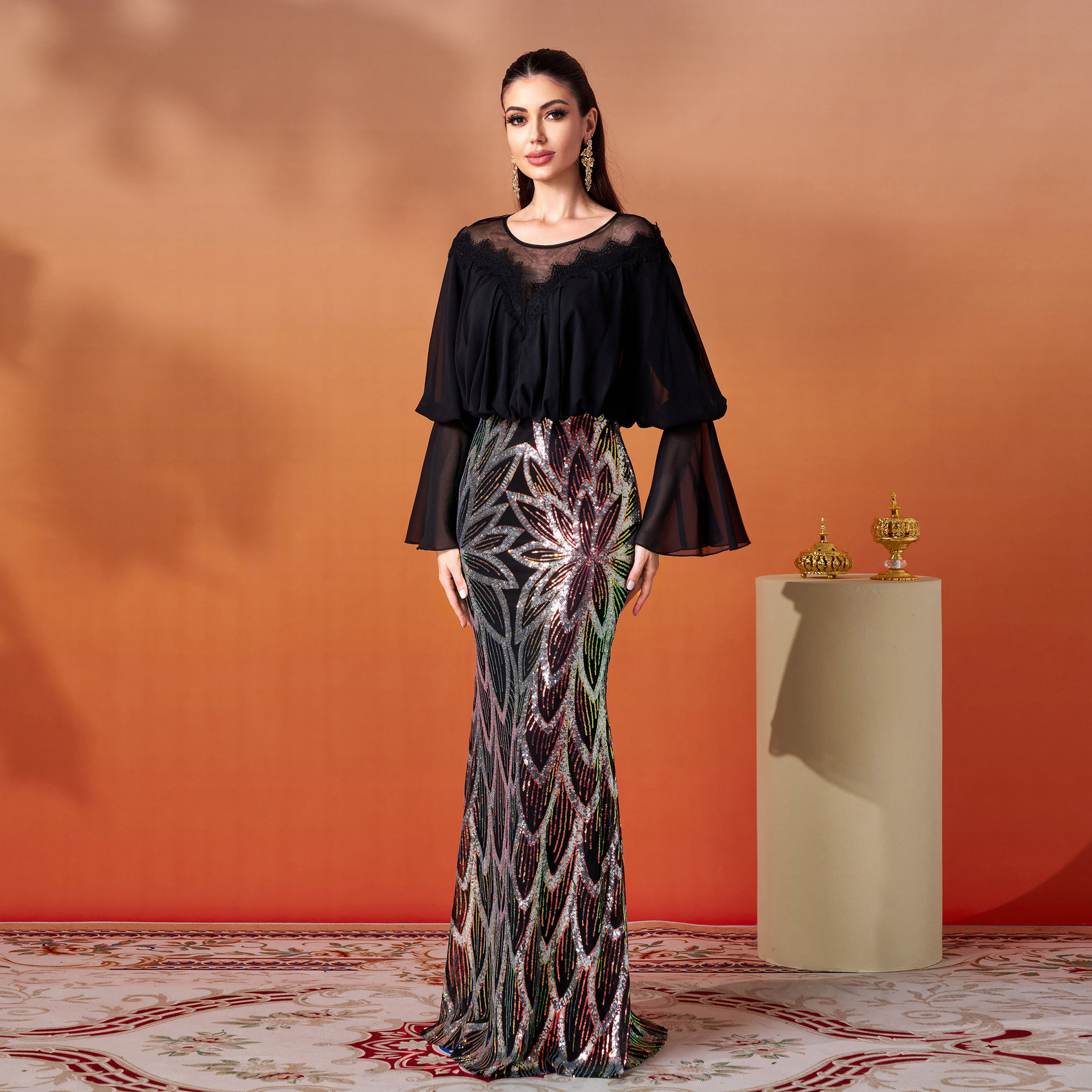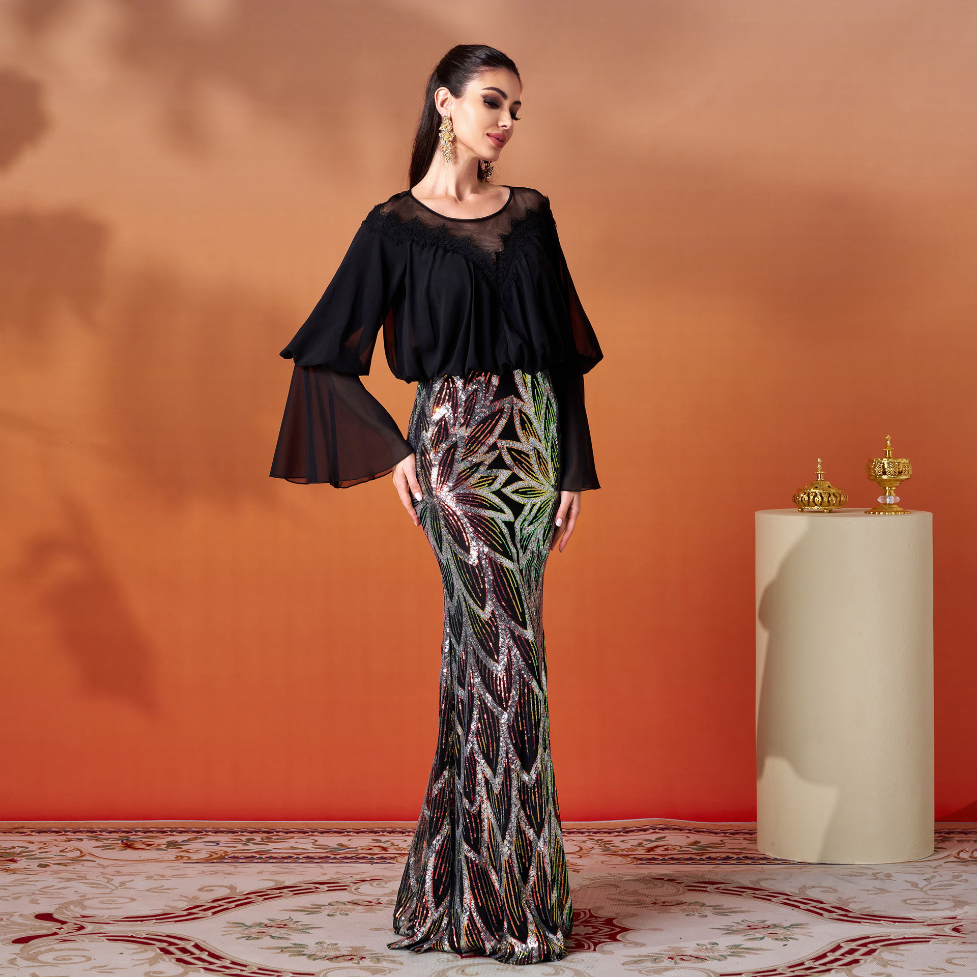 Polyester Mermaid Long Evening Dress Sequin black PC