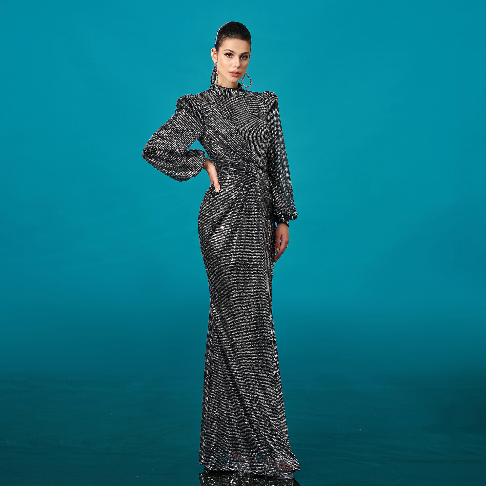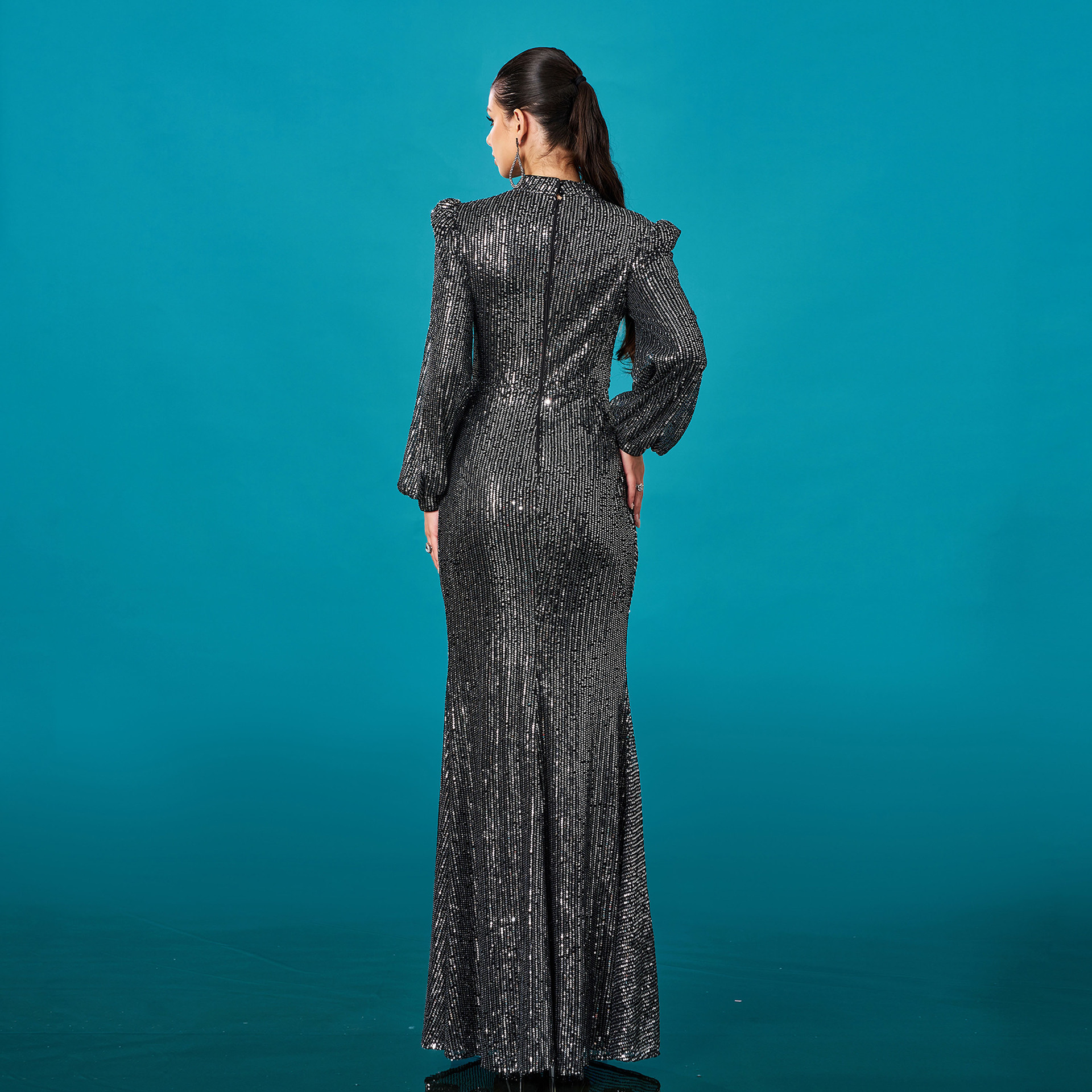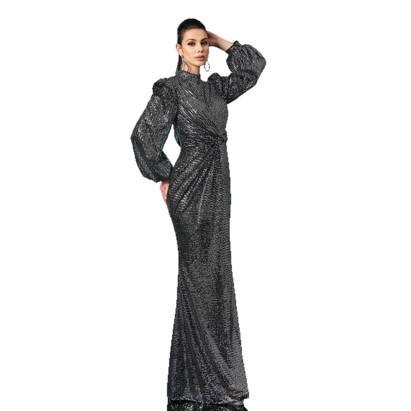 Polyester Mermaid Long Evening Dress Sequin black PC