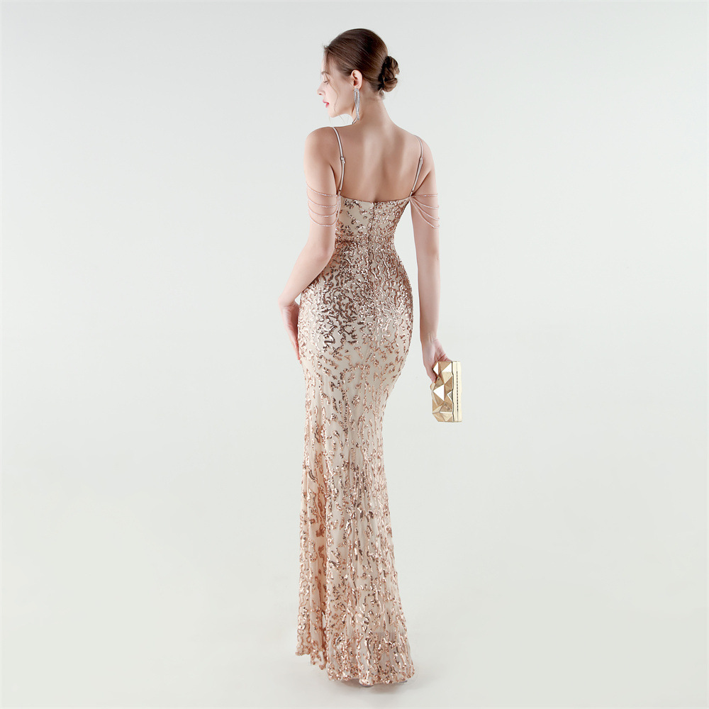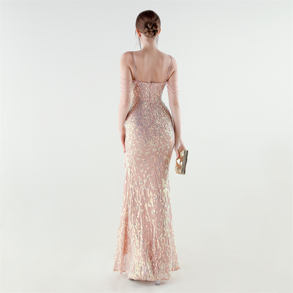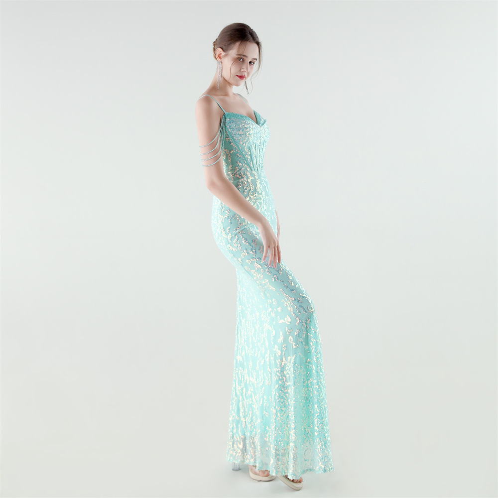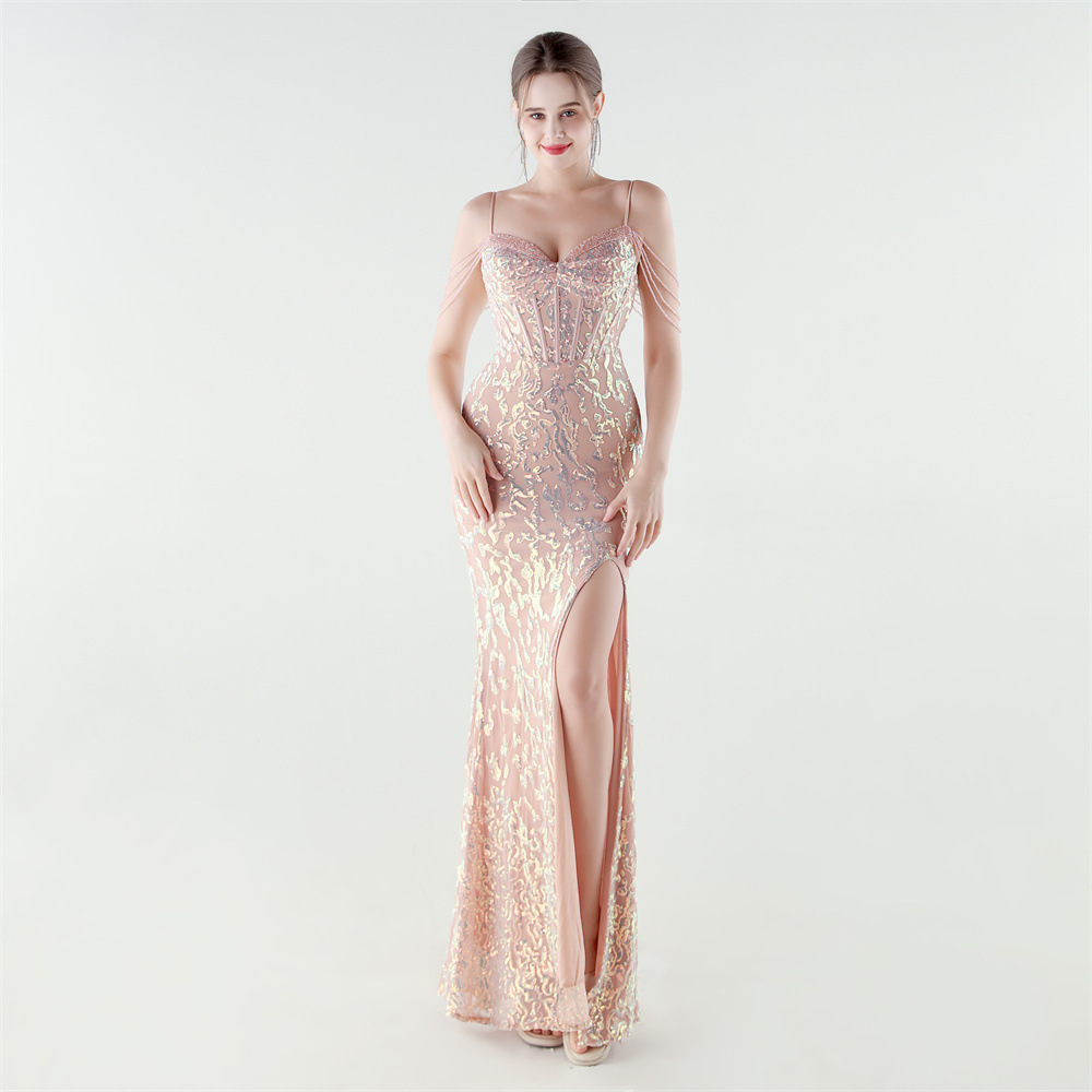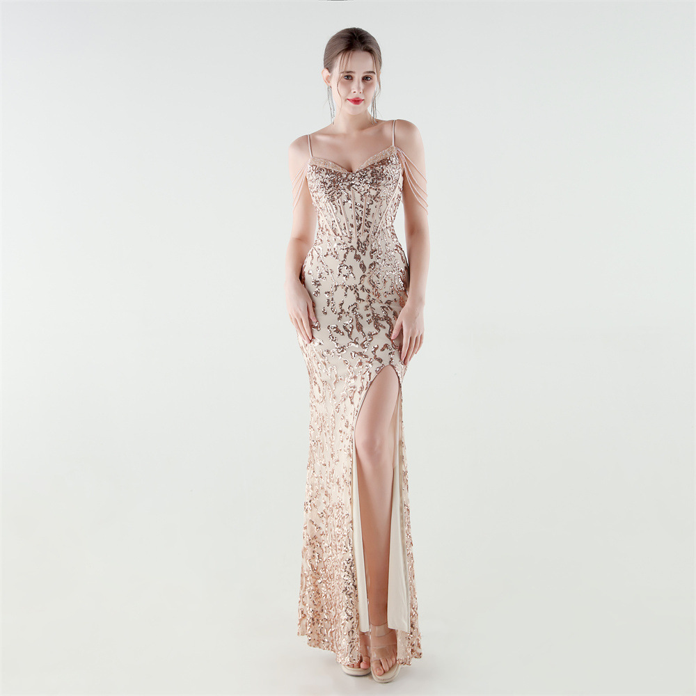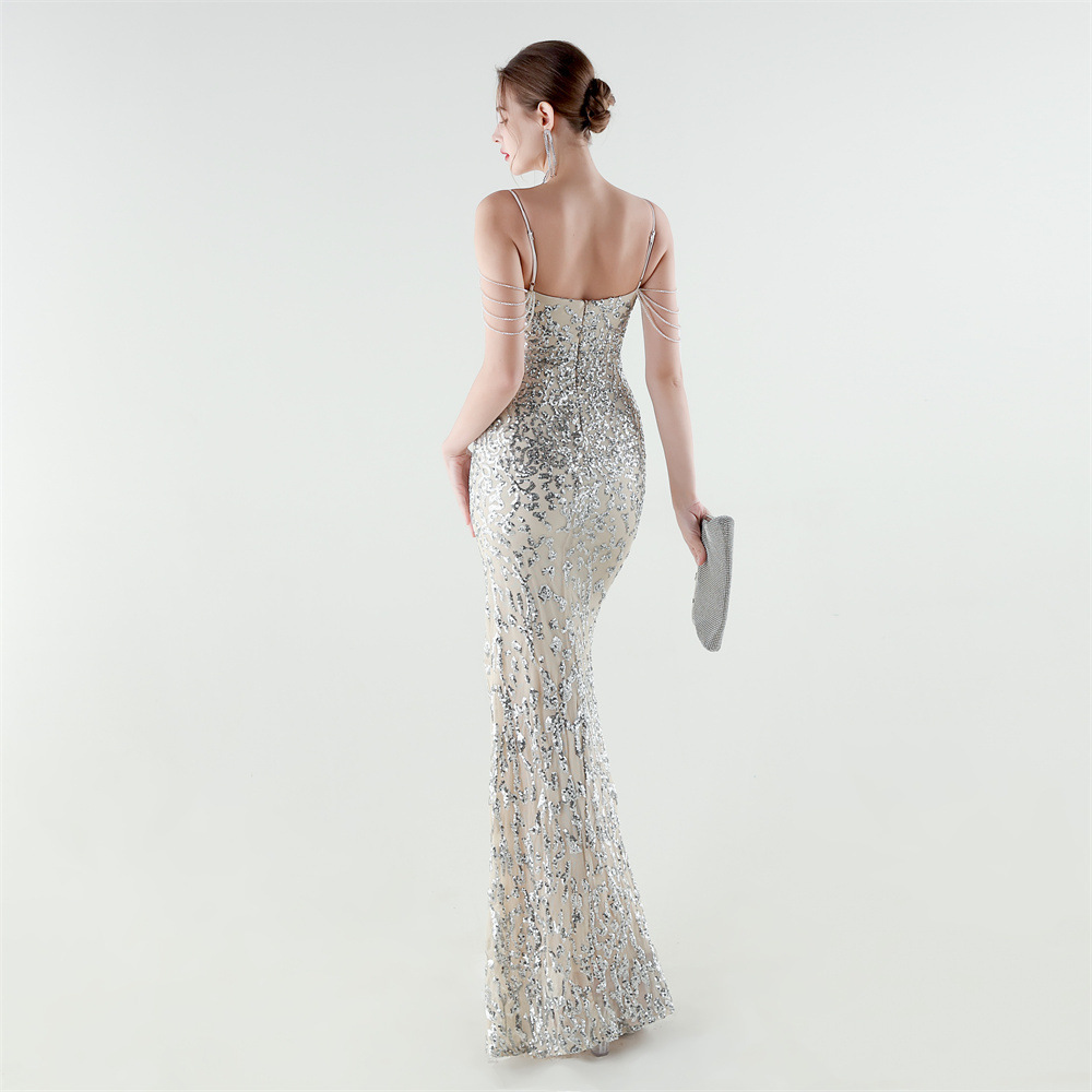 Polyester Mermaid Long Evening Dress side slit & padded Sequin PC