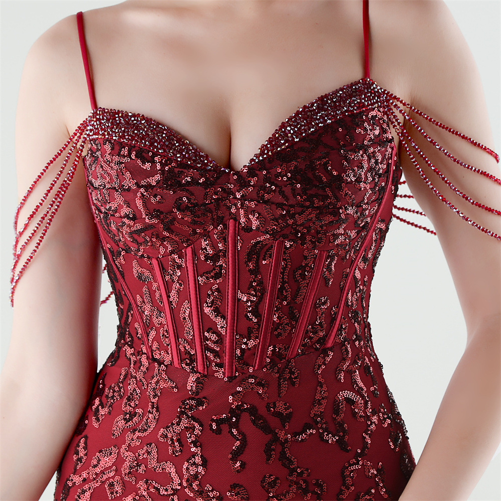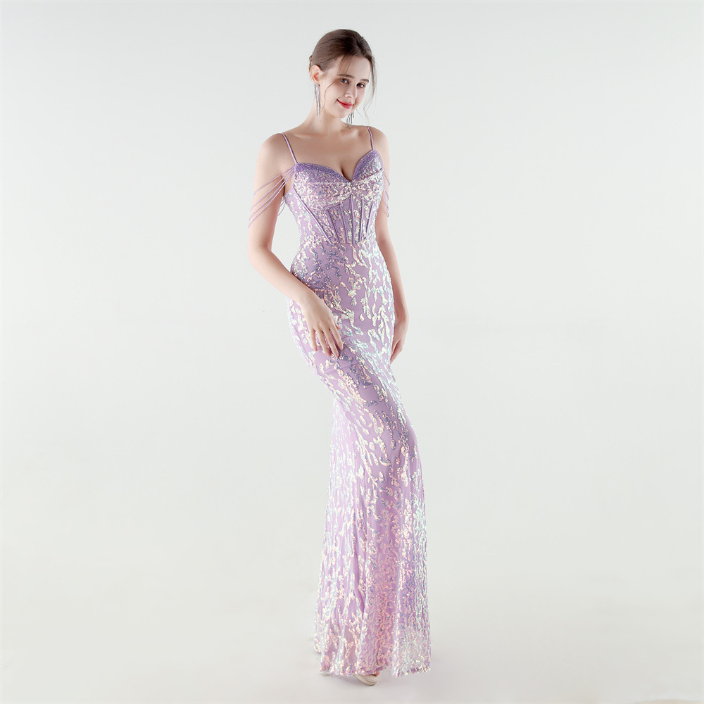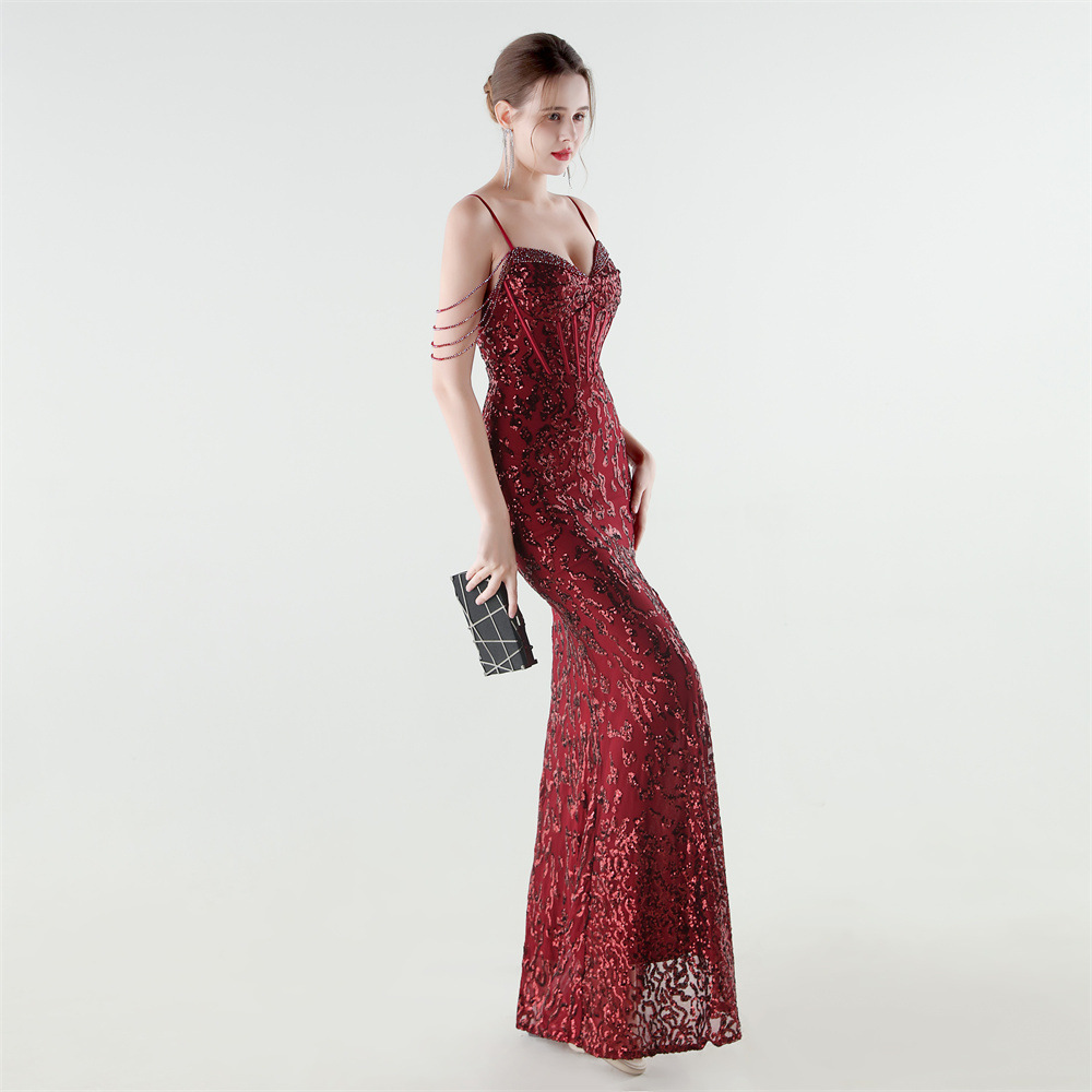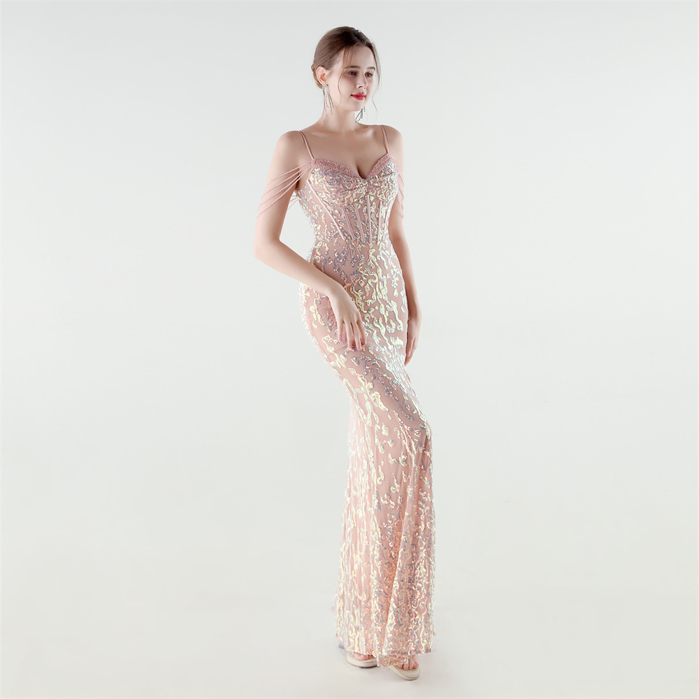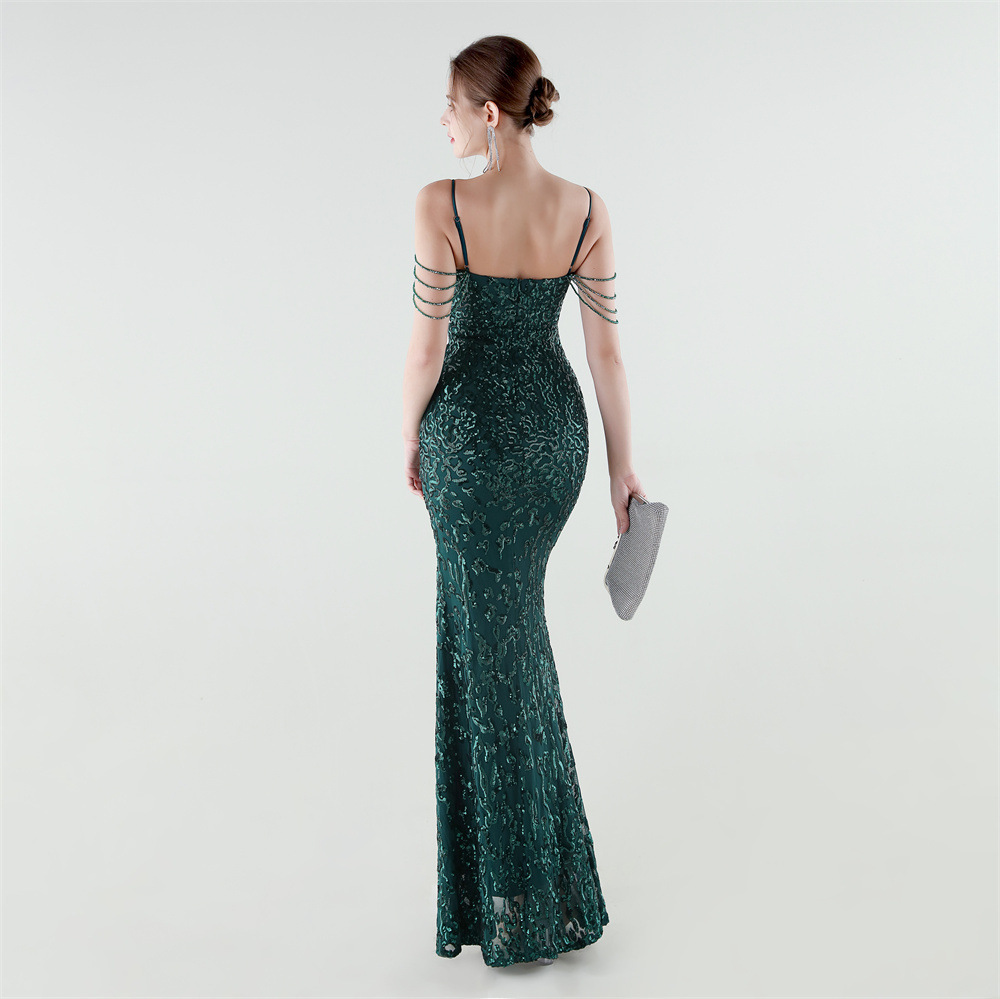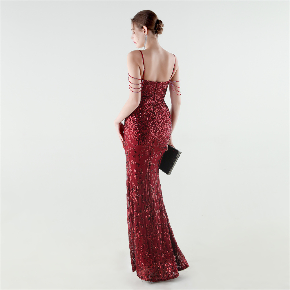 Polyester Mermaid Long Evening Dress side slit & padded Sequin PC