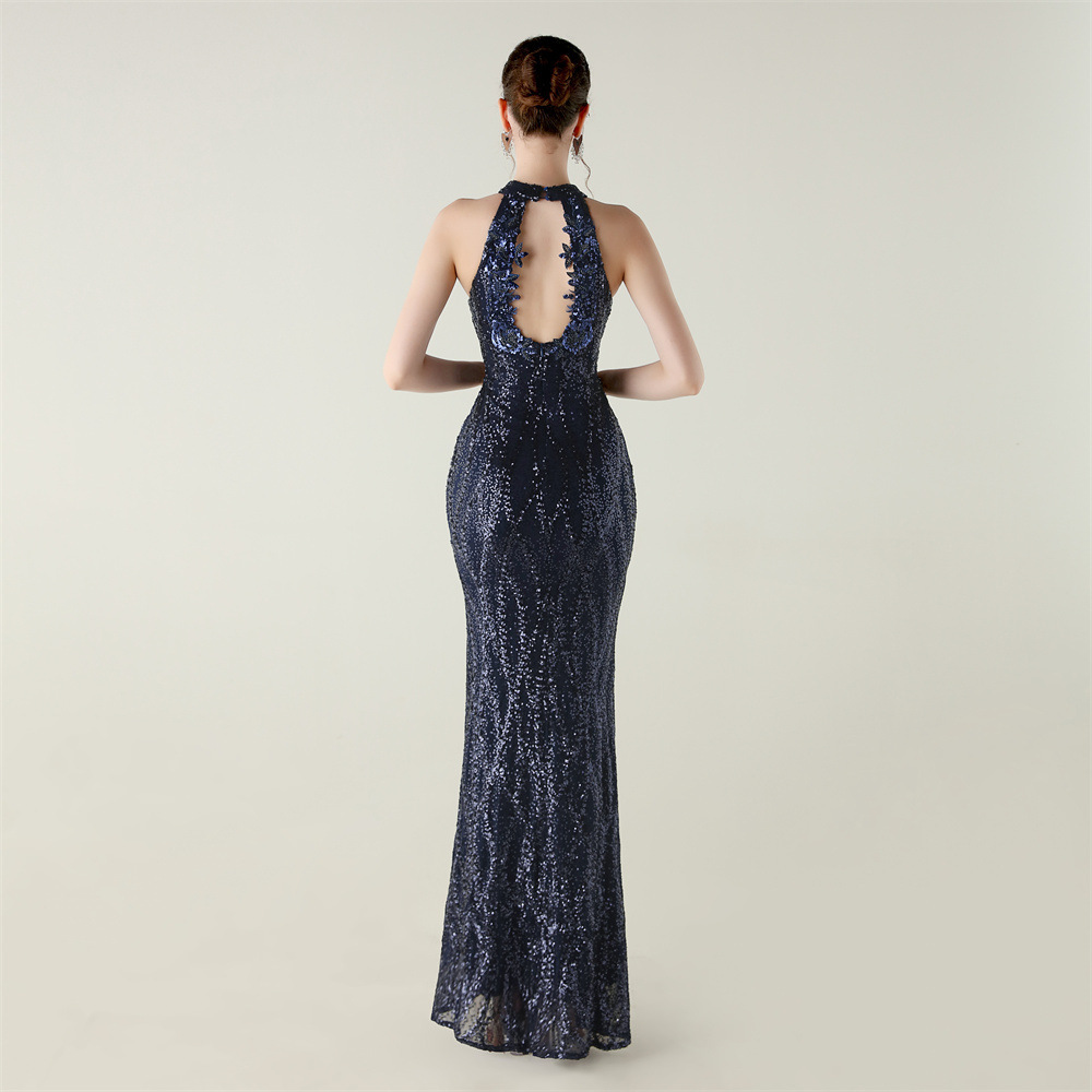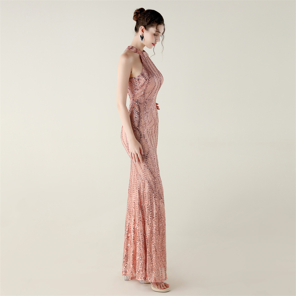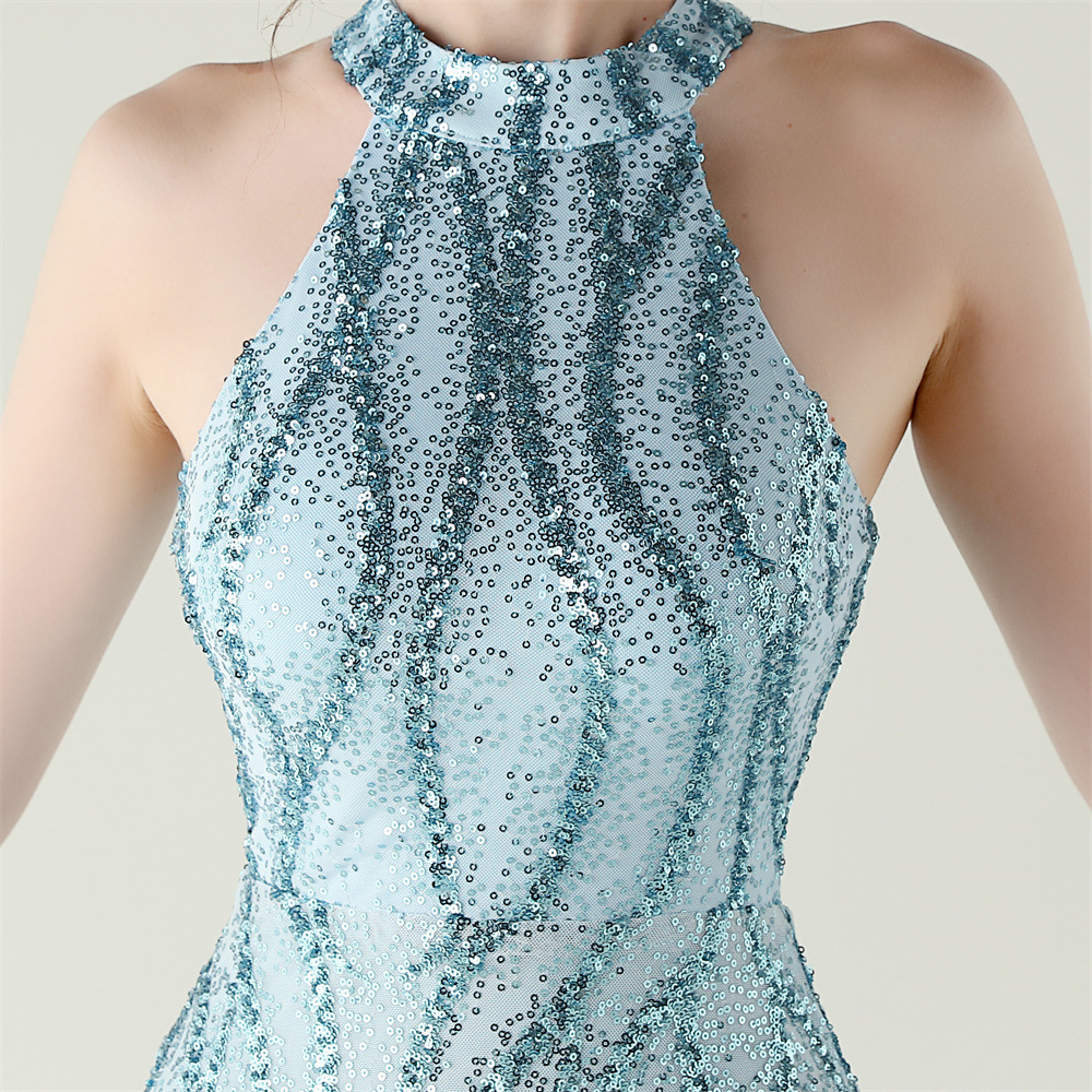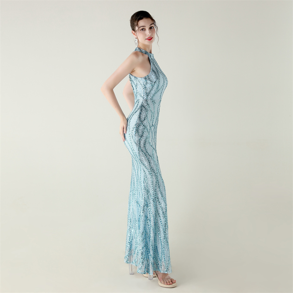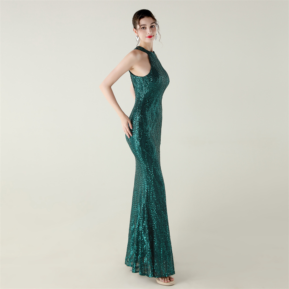 Polyester Mermaid Long Evening Dress side slit & backless & padded Sequin PC
