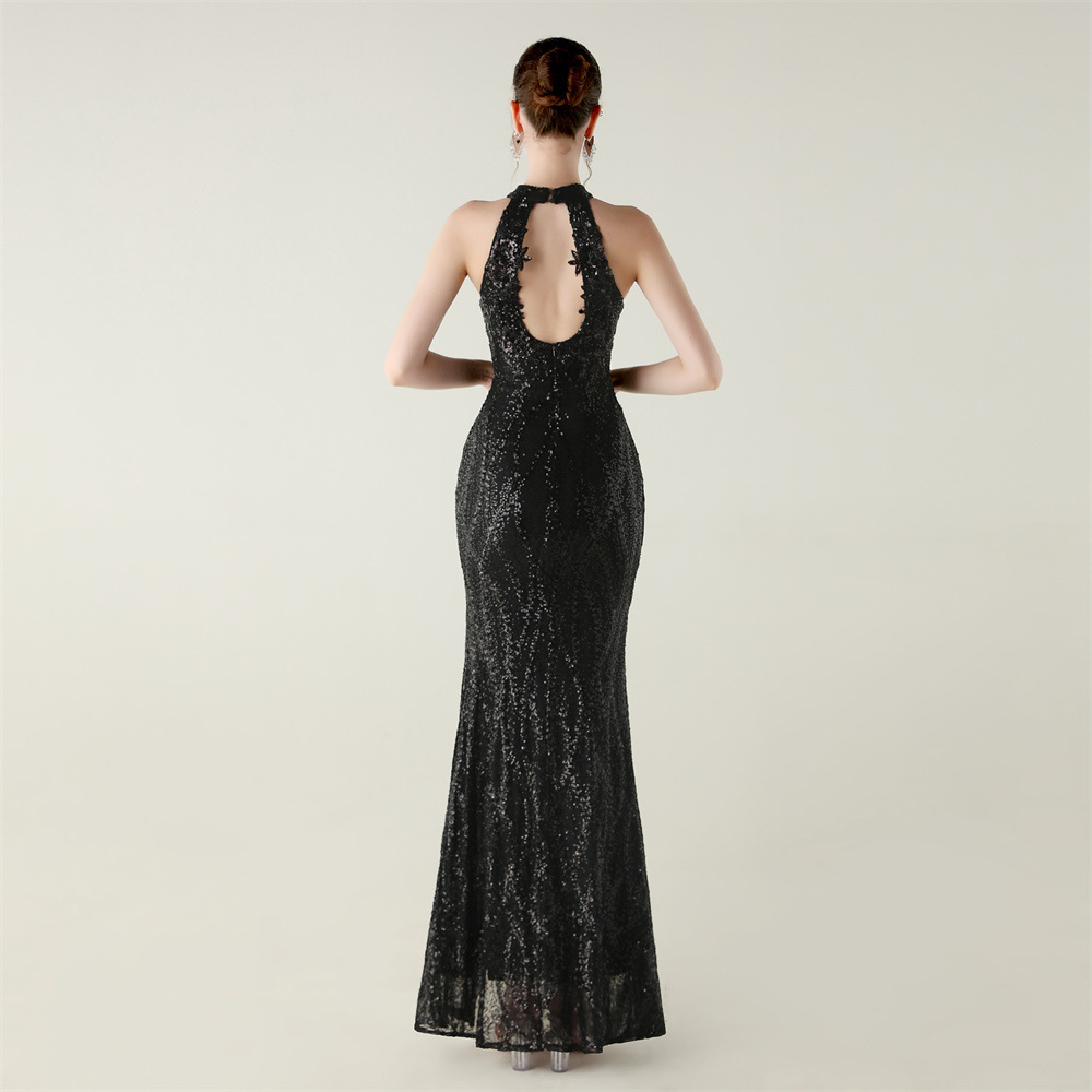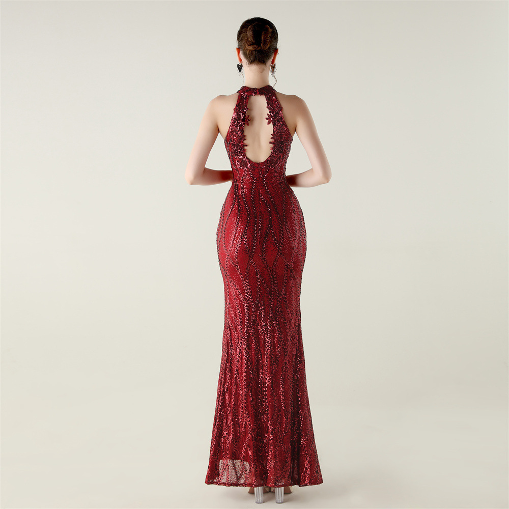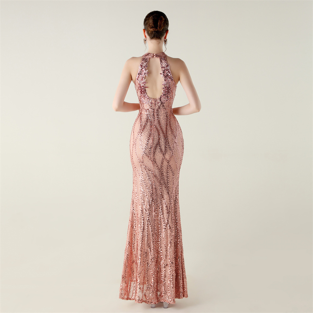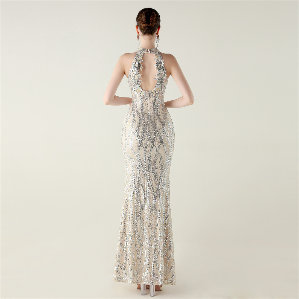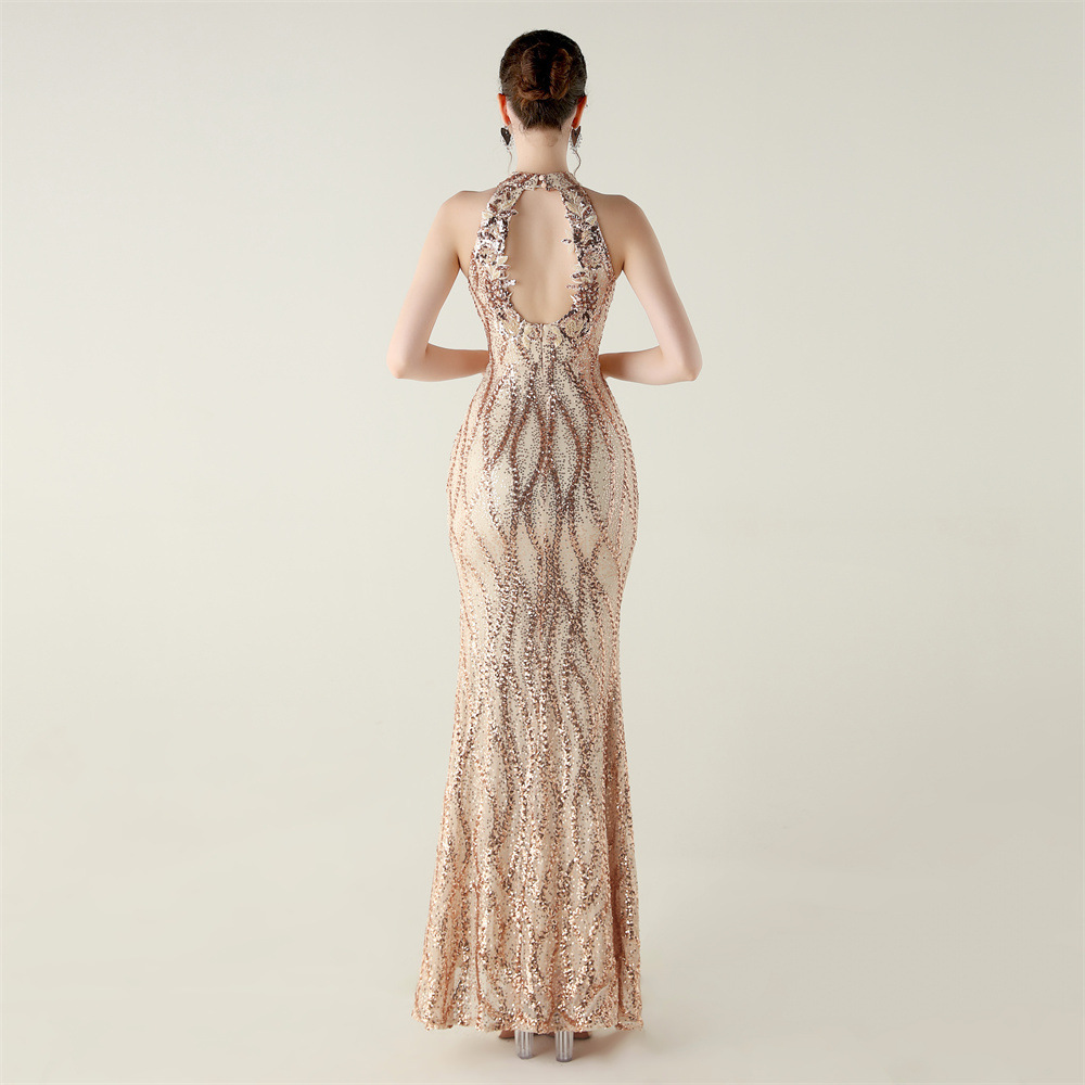 Polyester Mermaid Long Evening Dress side slit & backless & padded Sequin PC
