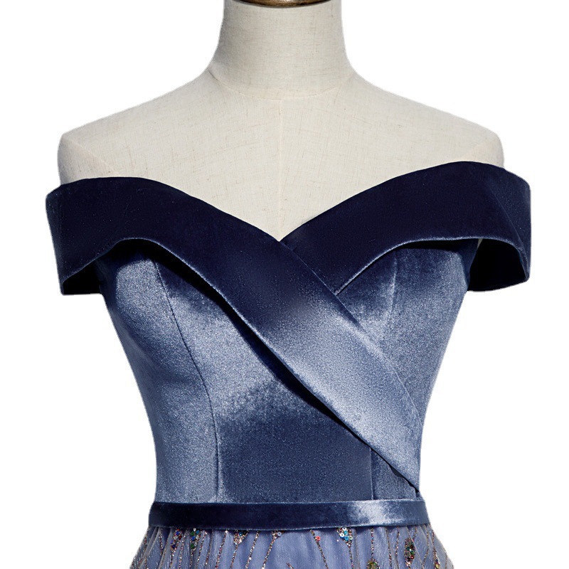 Polyester Long Evening Dress blue PC