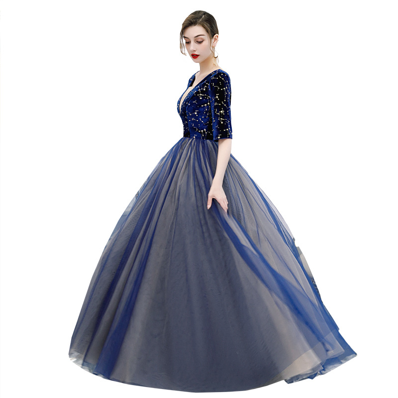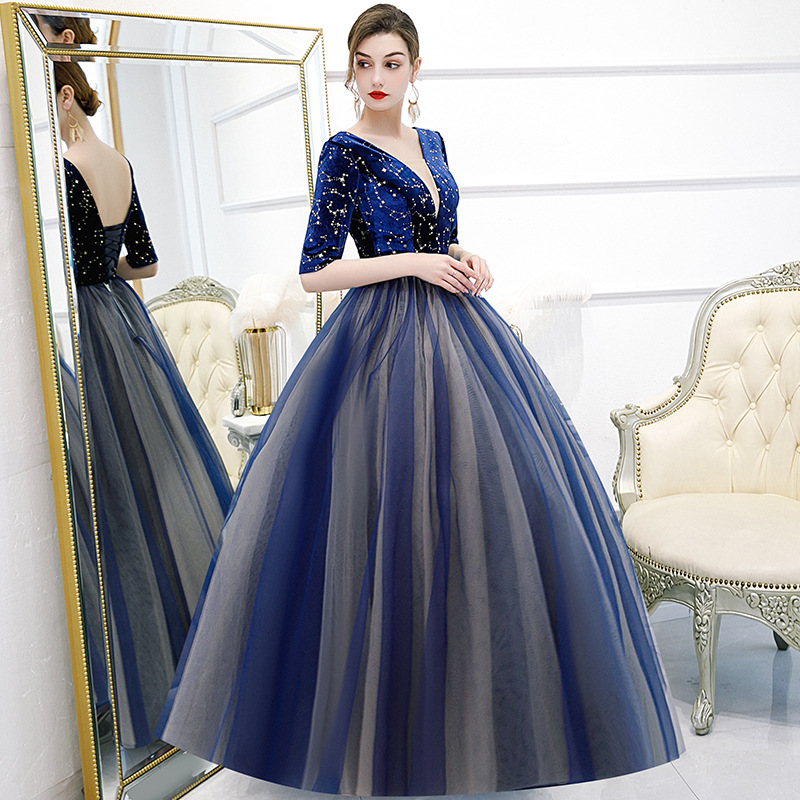 Polyester Long Evening Dress Navy Blue PC
