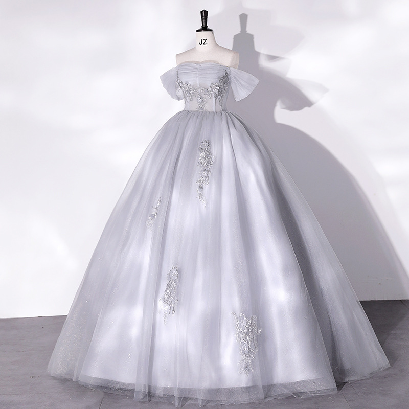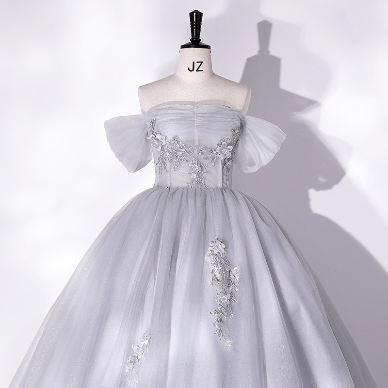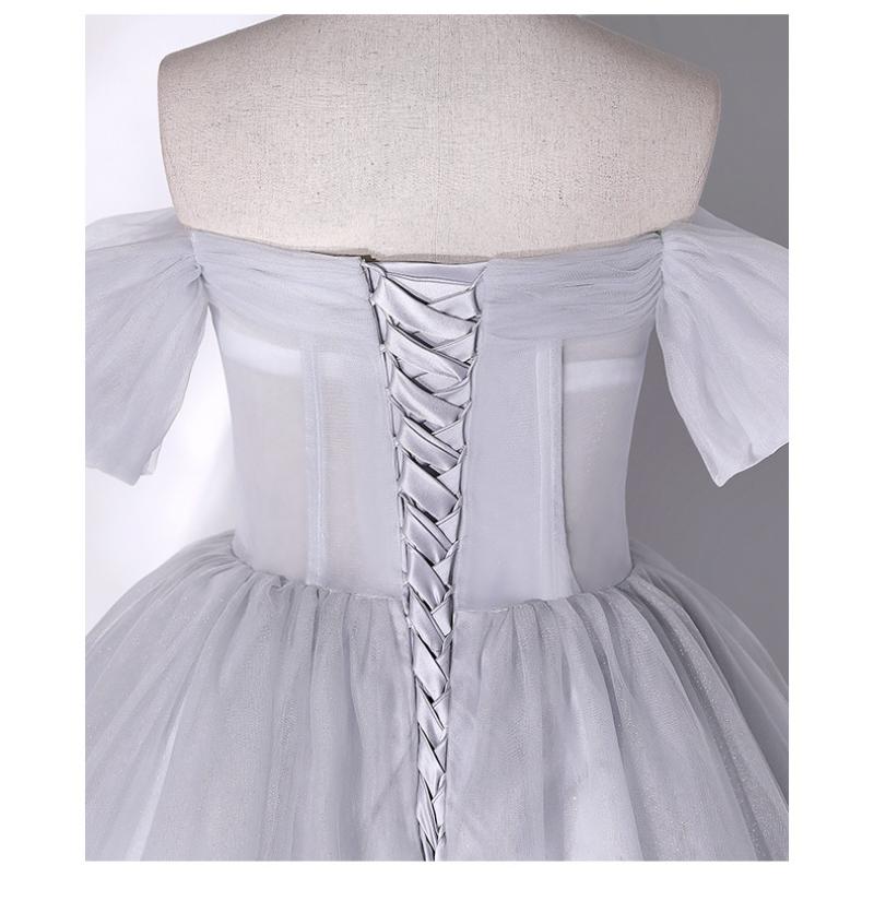 Polyester Off Shoulder Long Evening Dress light gray PC