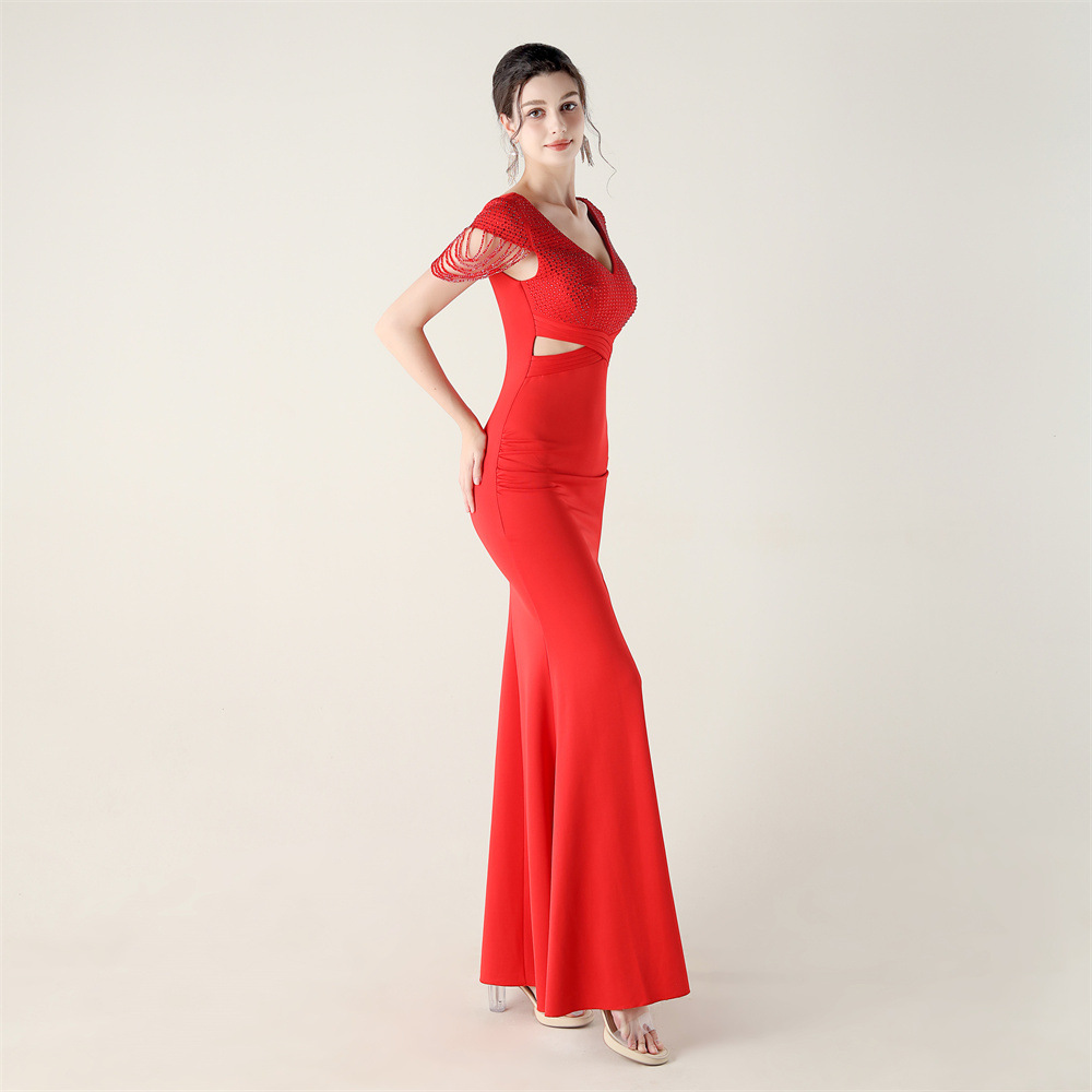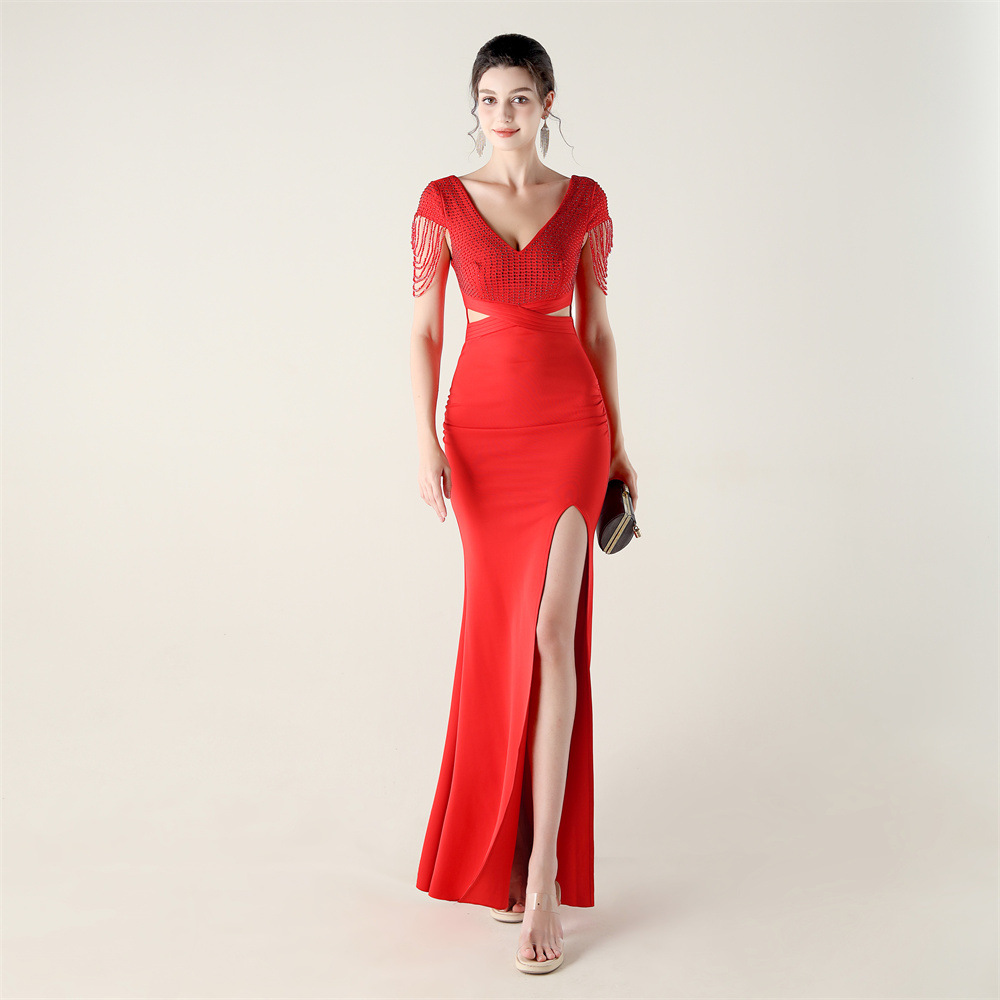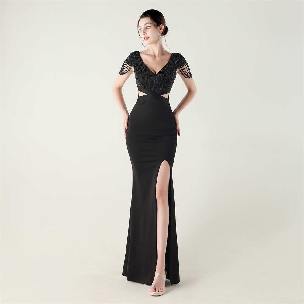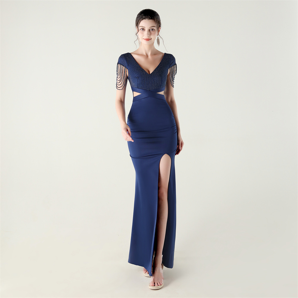 Polyester Slim Long Evening Dress side slit PC