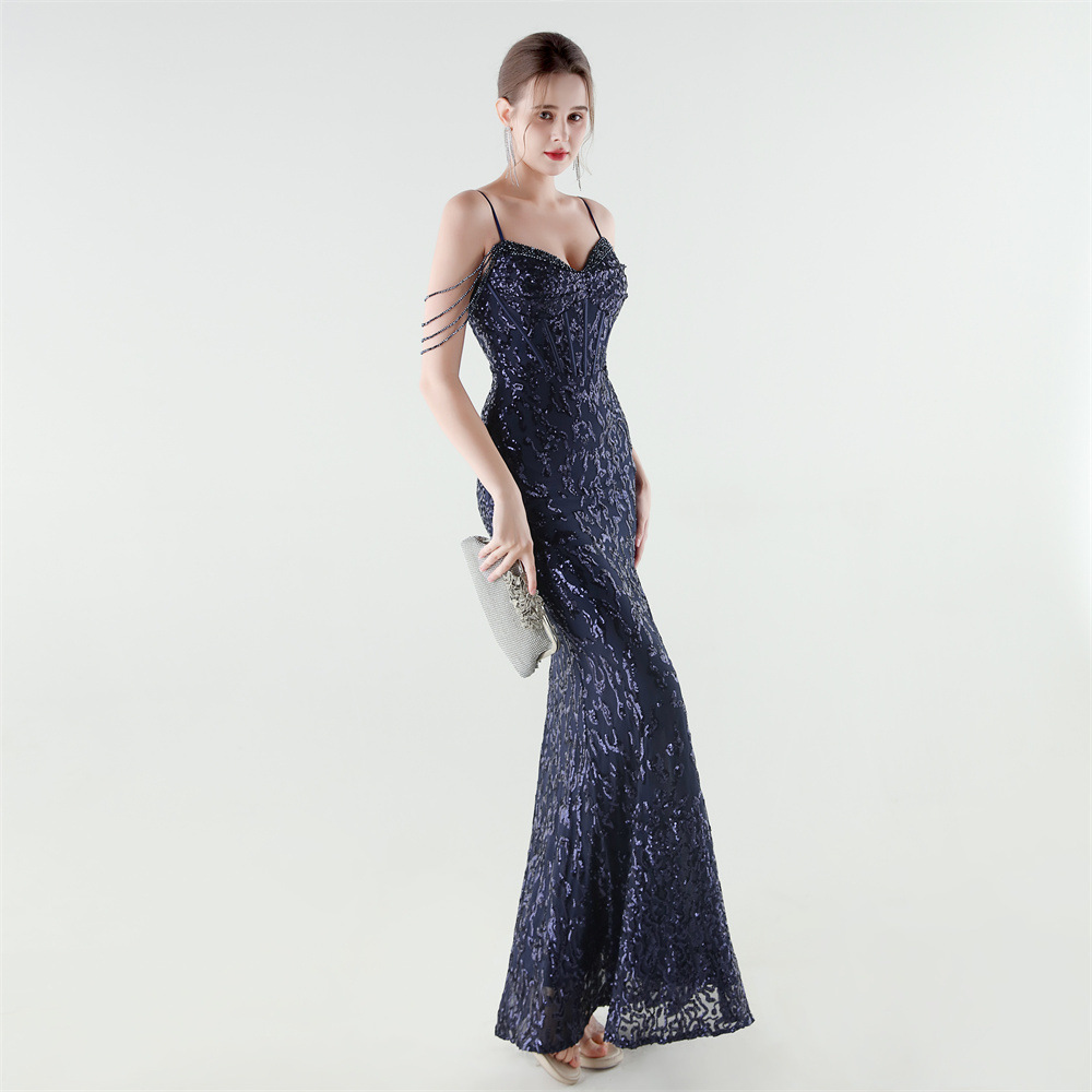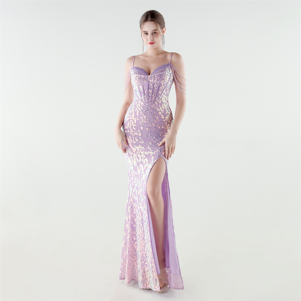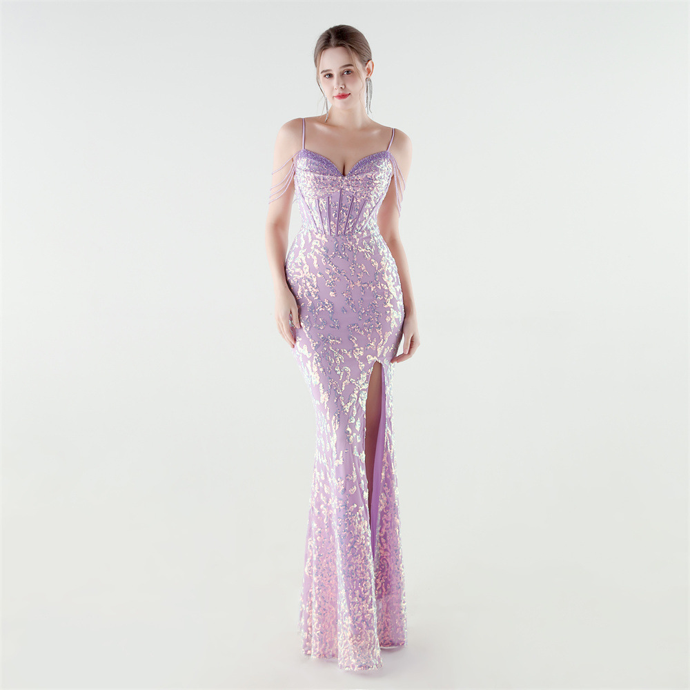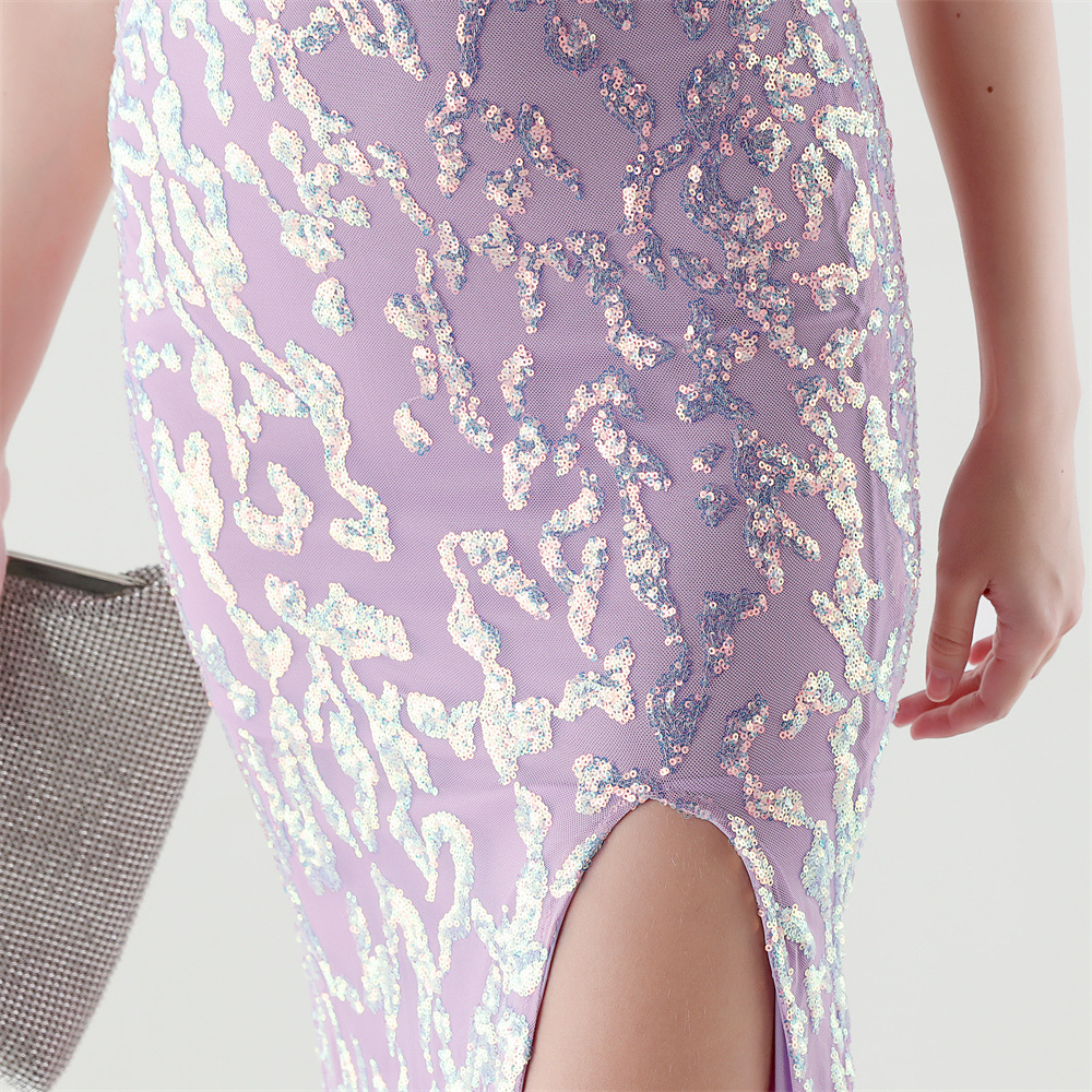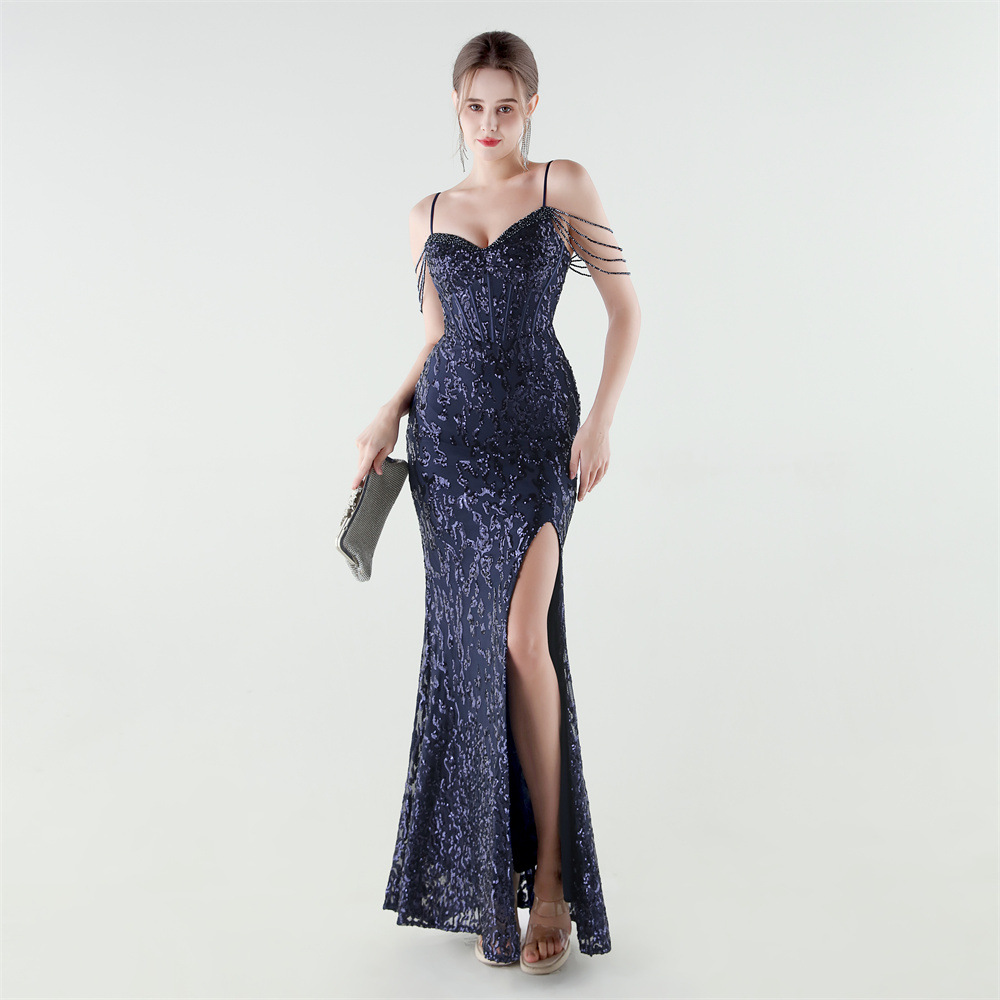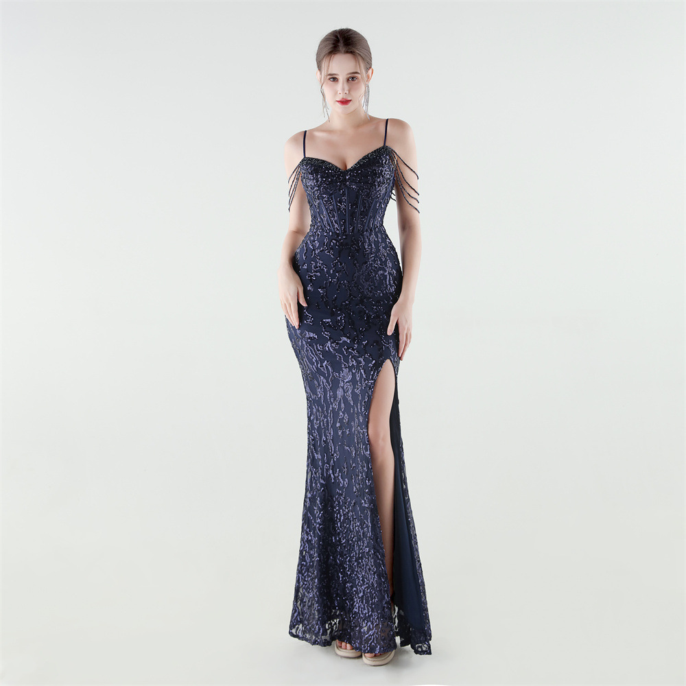Polyester Slim Long Evening Dress side slit & backless PC