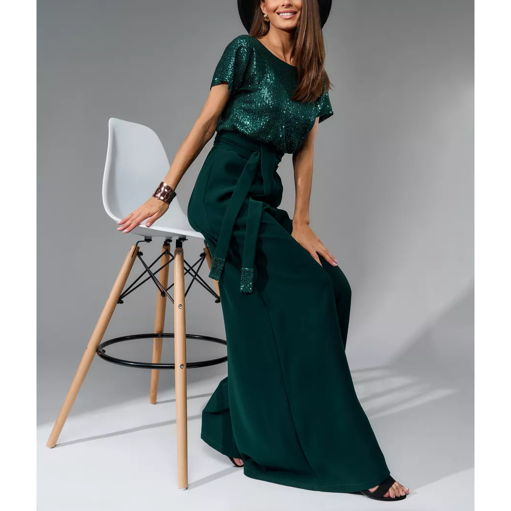 Spring new conjoined sequin fashion short sleeve casual jumpsuit