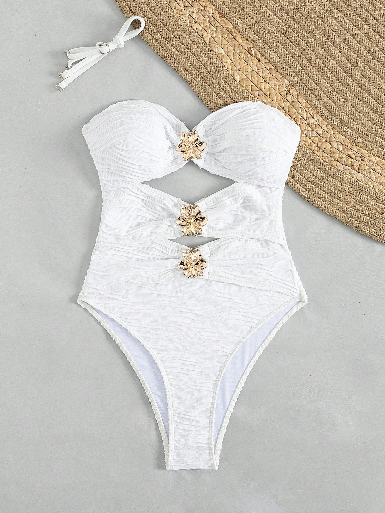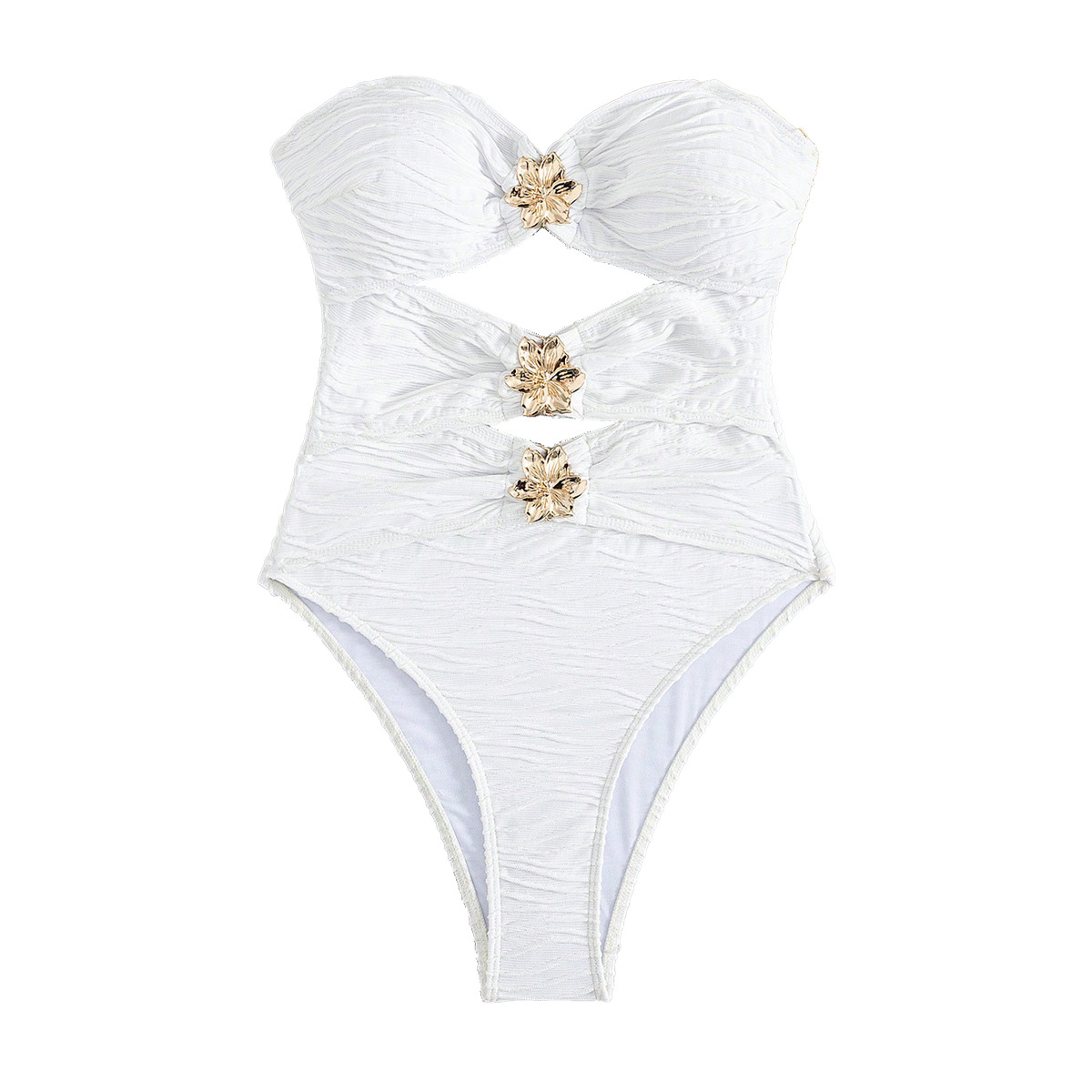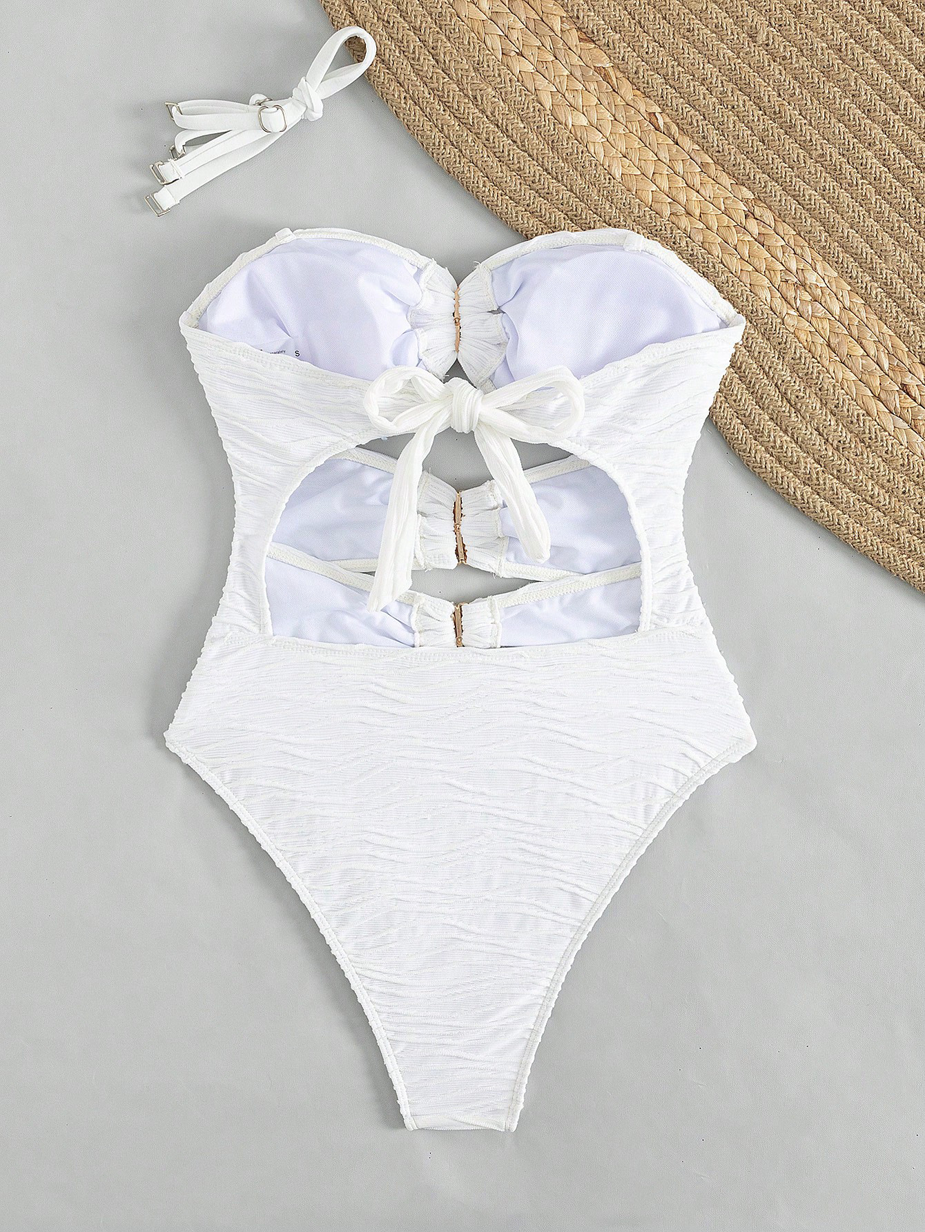 Polyester Monokini backless & padded plain dyed Solid white PC