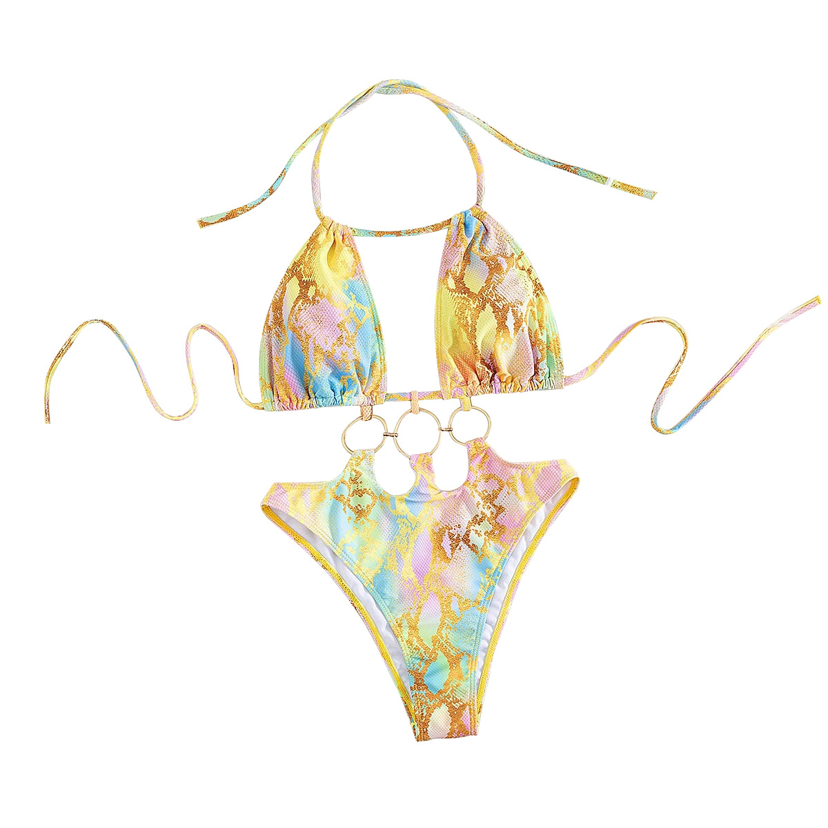 Polyester Monokini backless & padded printed yellow PC