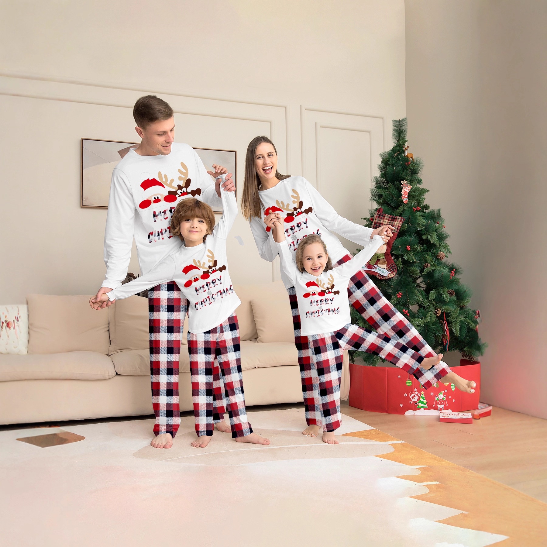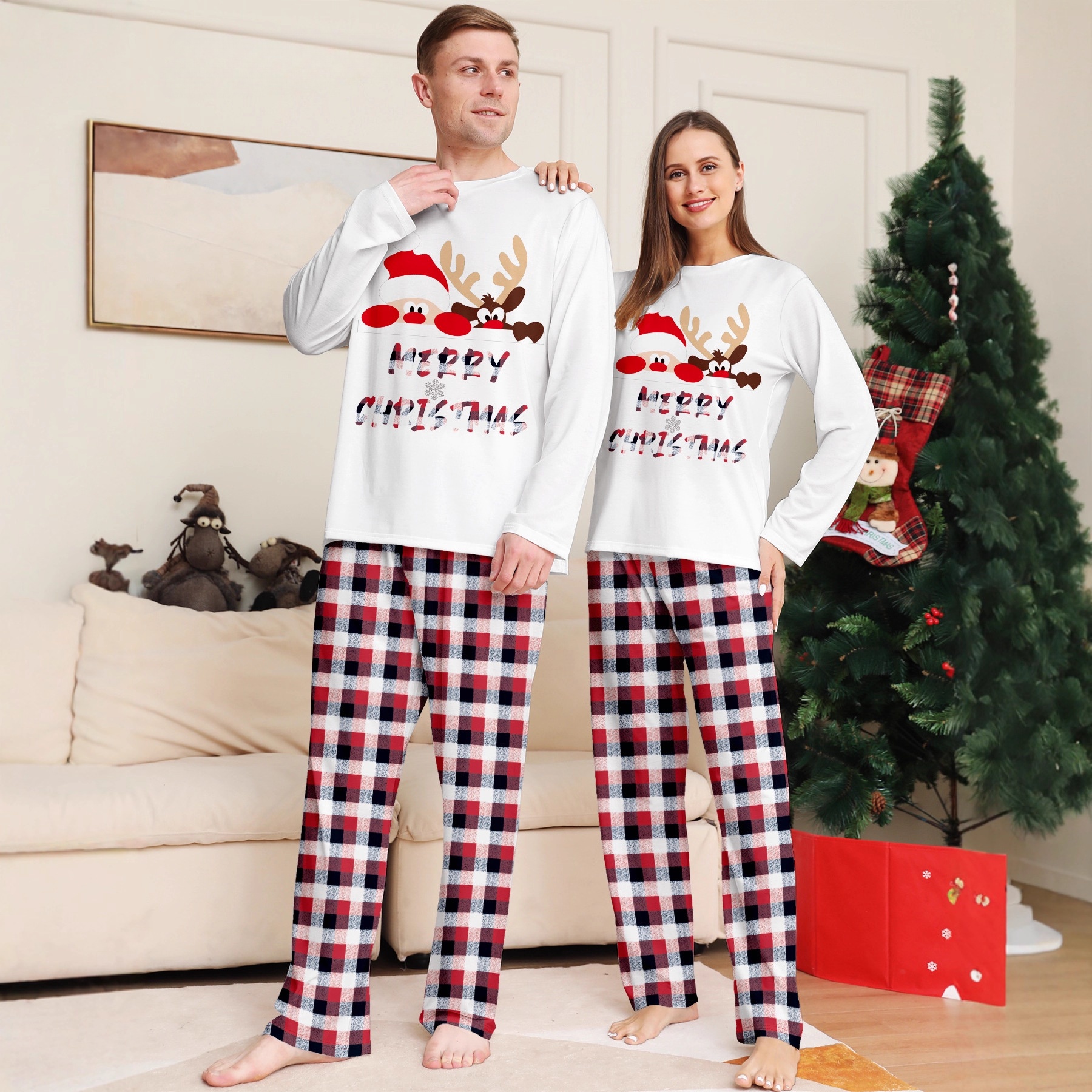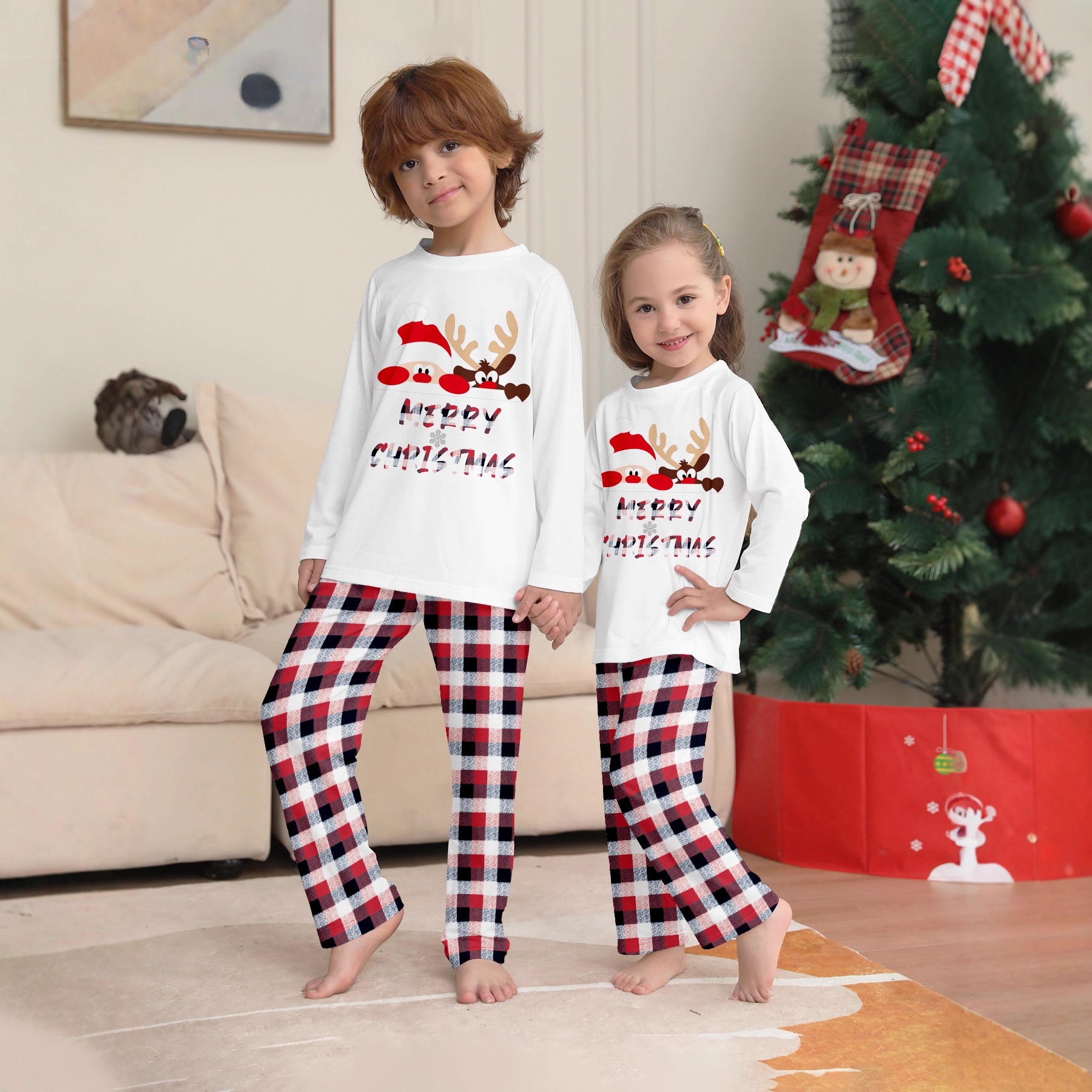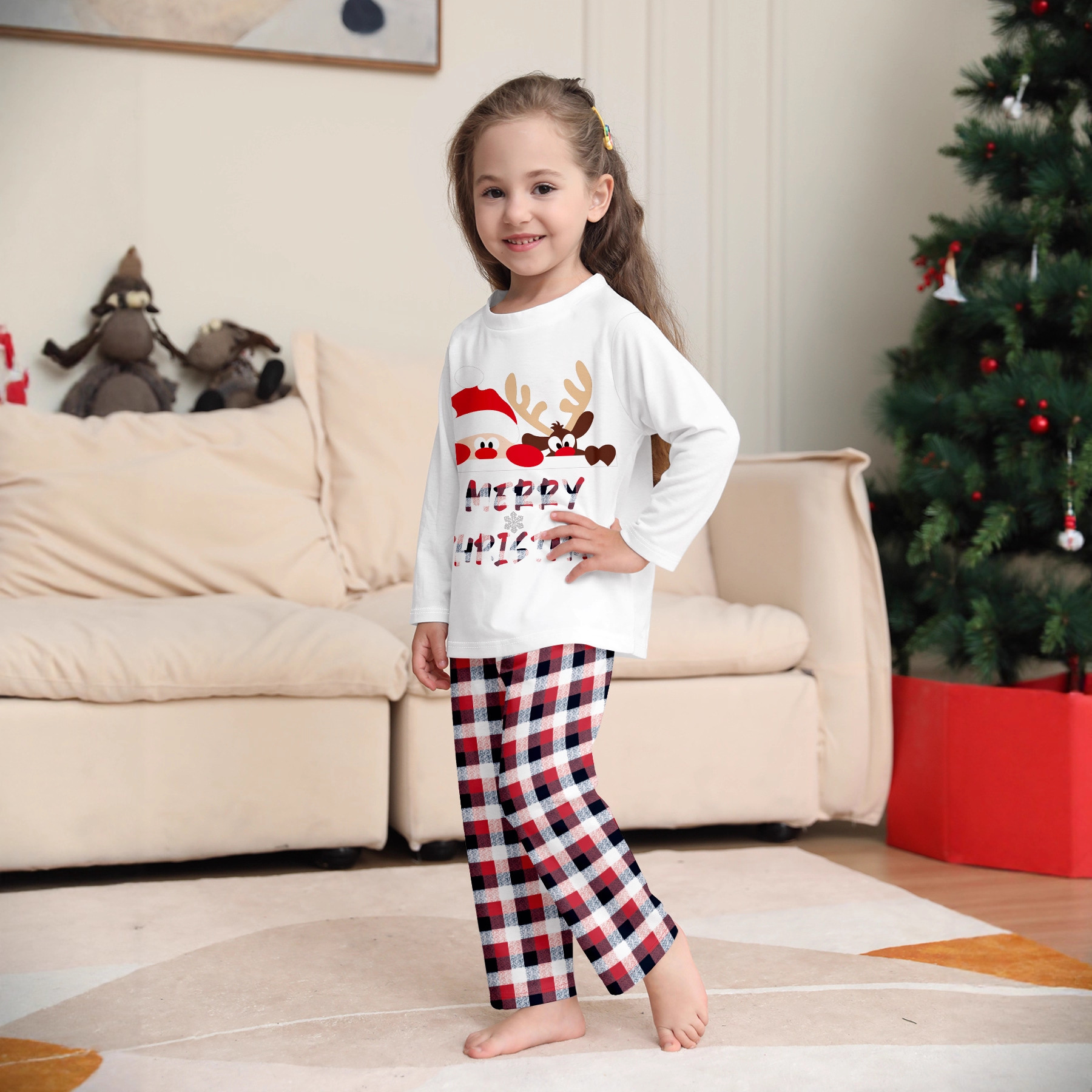 Polyester Parent-child Sleepwear christmas design & two piece mixed colors PC
