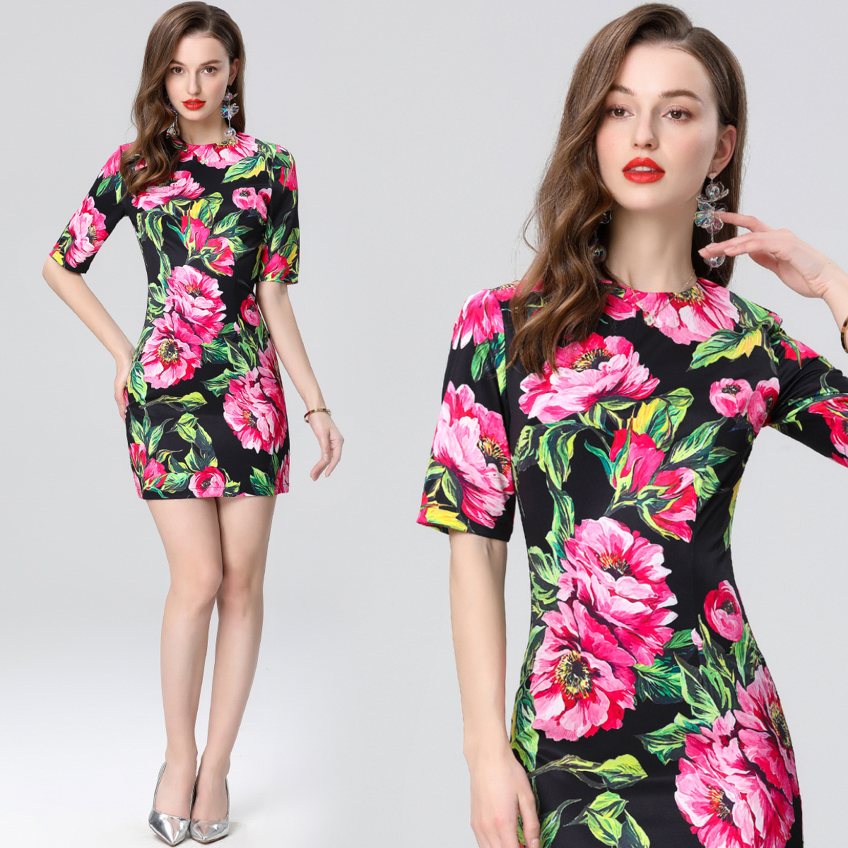 Polyester Slim Sexy Sheath Dress flexible & breathable printed floral PC