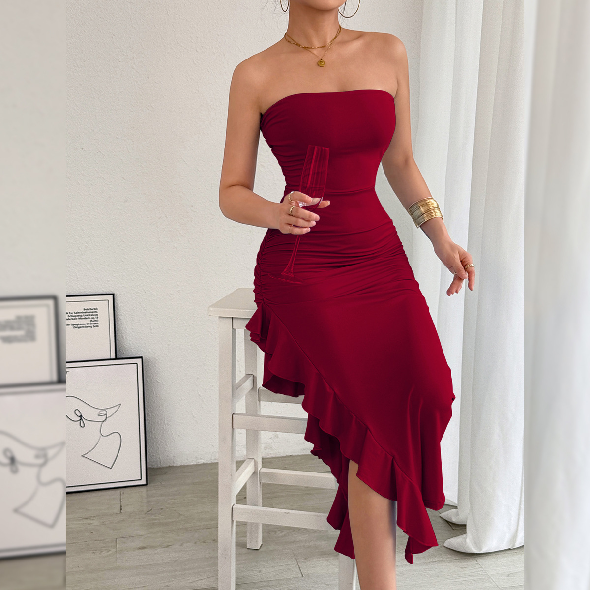 Polyester Slim Sexy Sheath Dress & wrapped chest PC