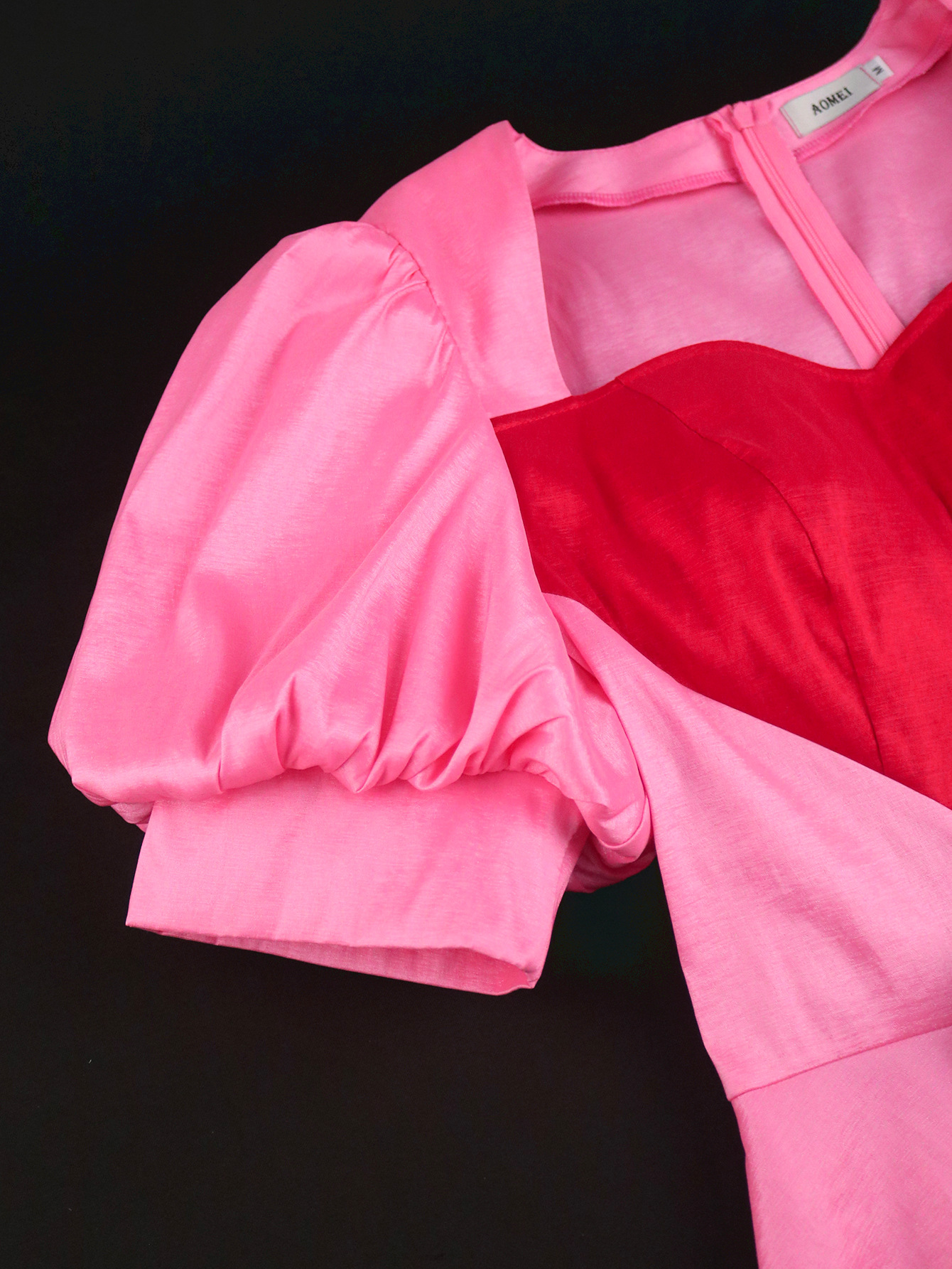 Polyester Waist-controlled & High Waist Short Evening Dress pink PC