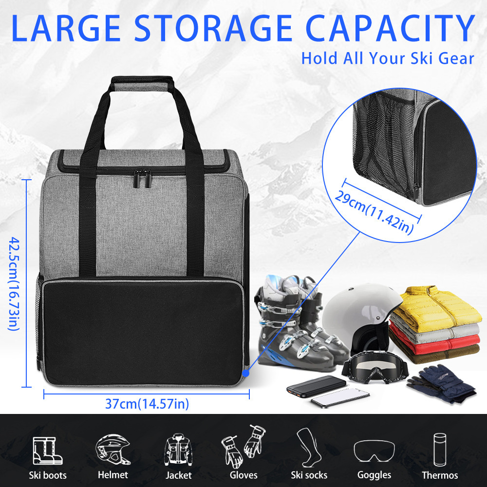 Polyester Organizer Ski Boot Bag hardwearing & waterproof grey and black PC