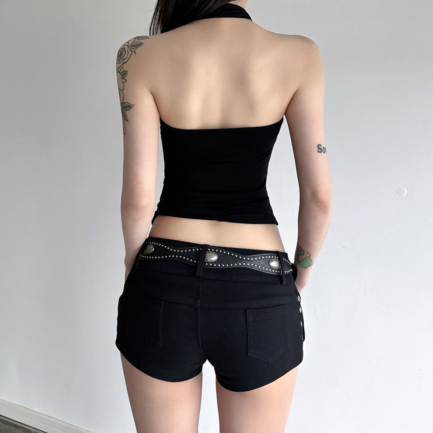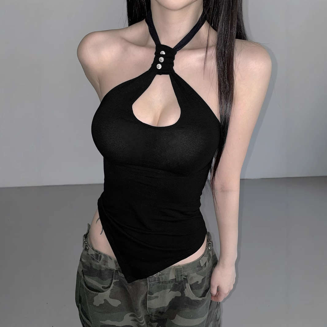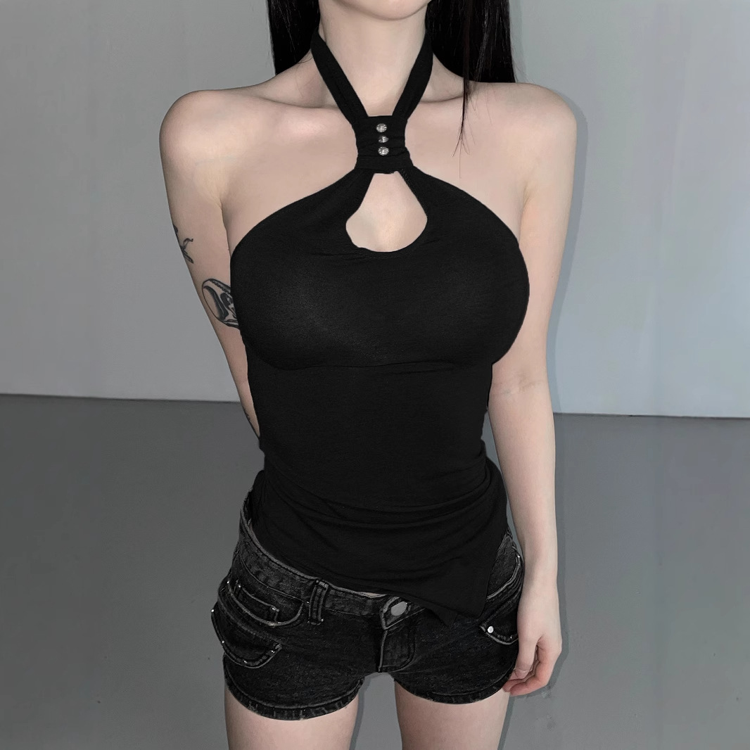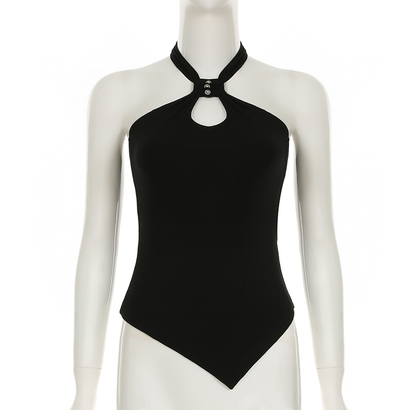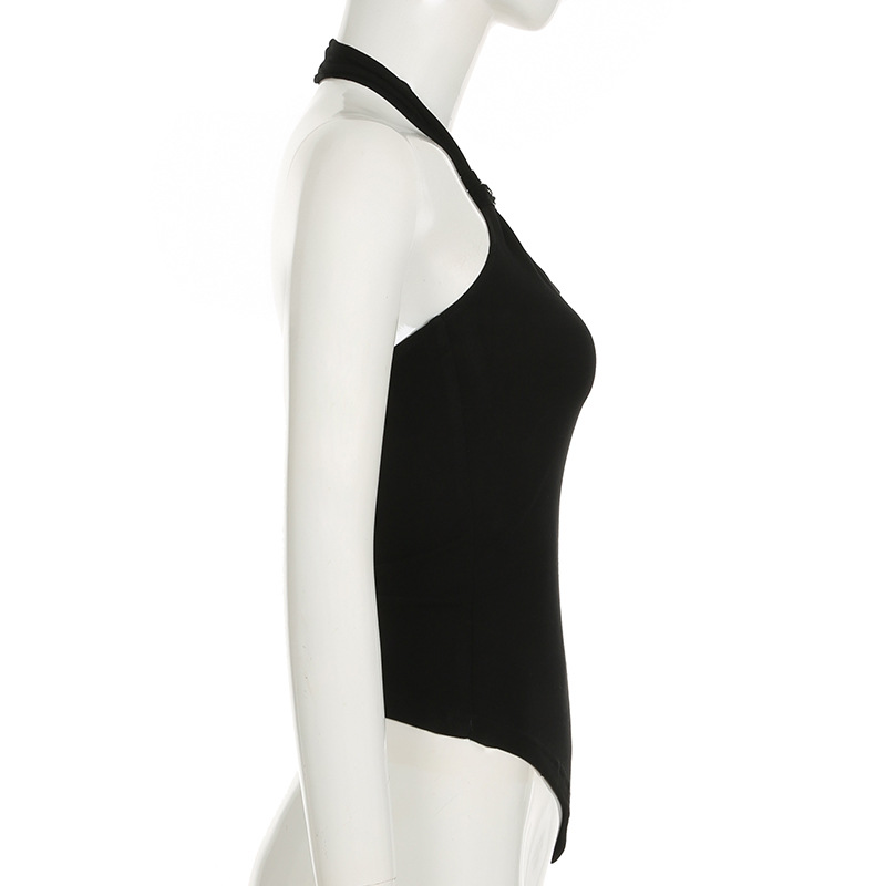 Polyester Slim Tank Top backless black PC