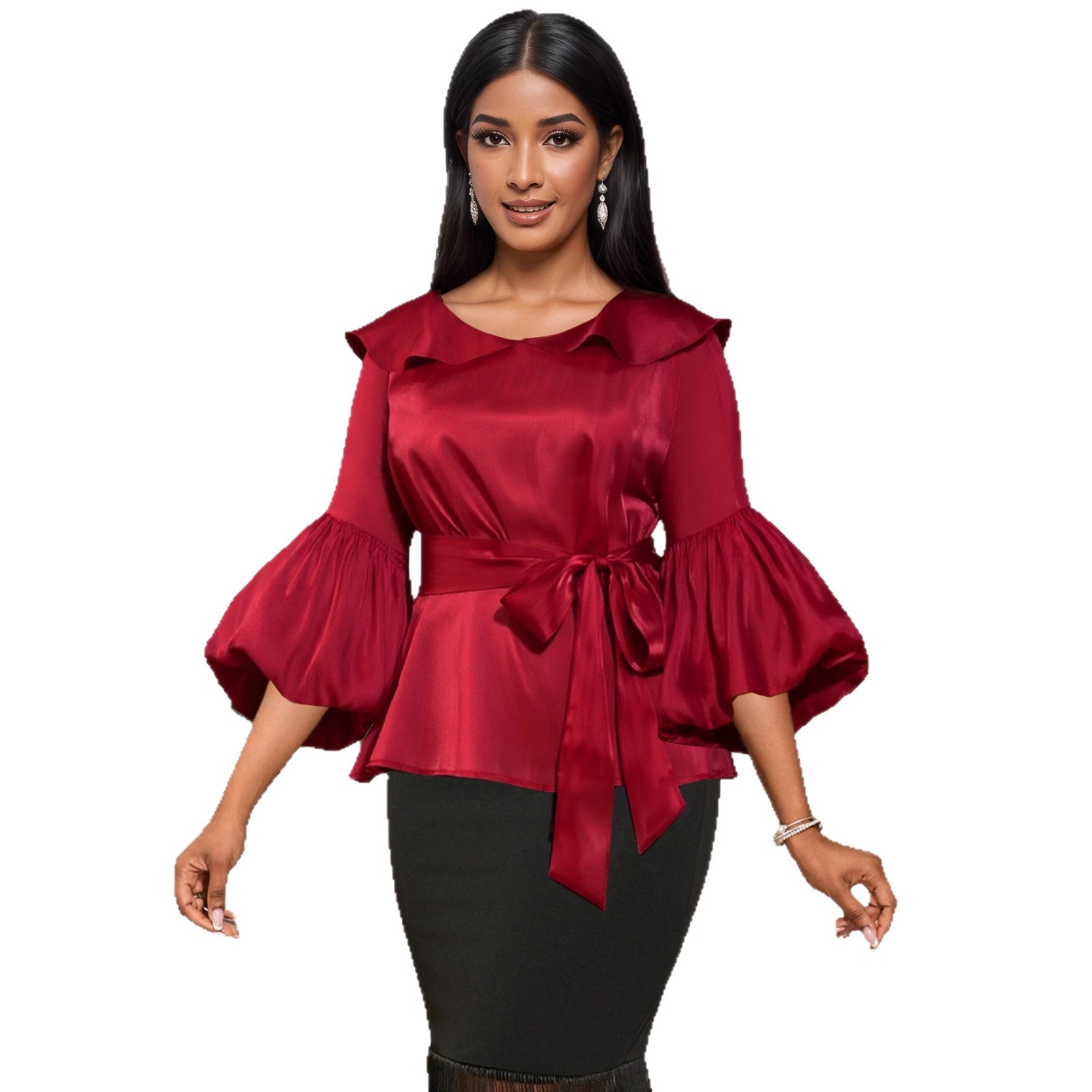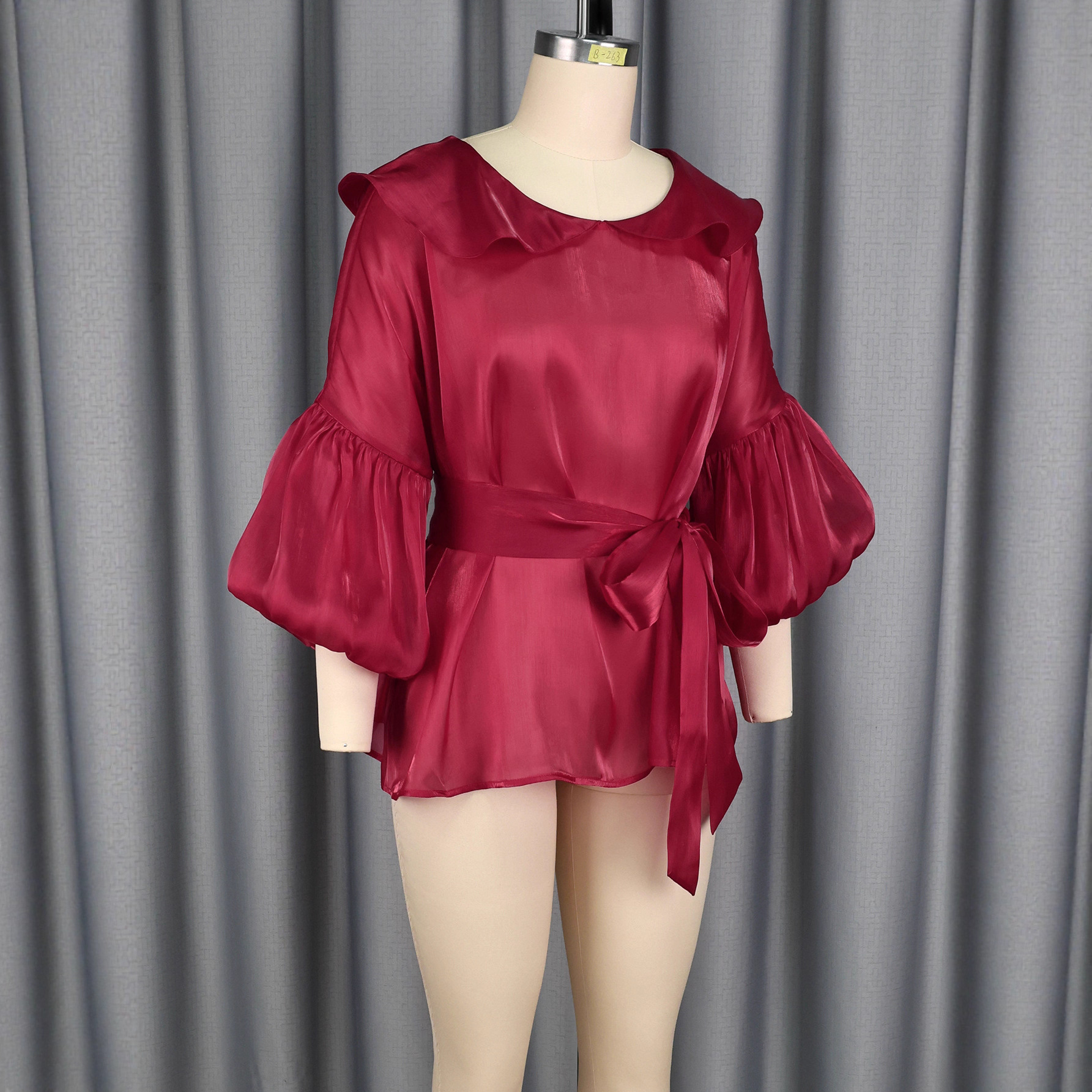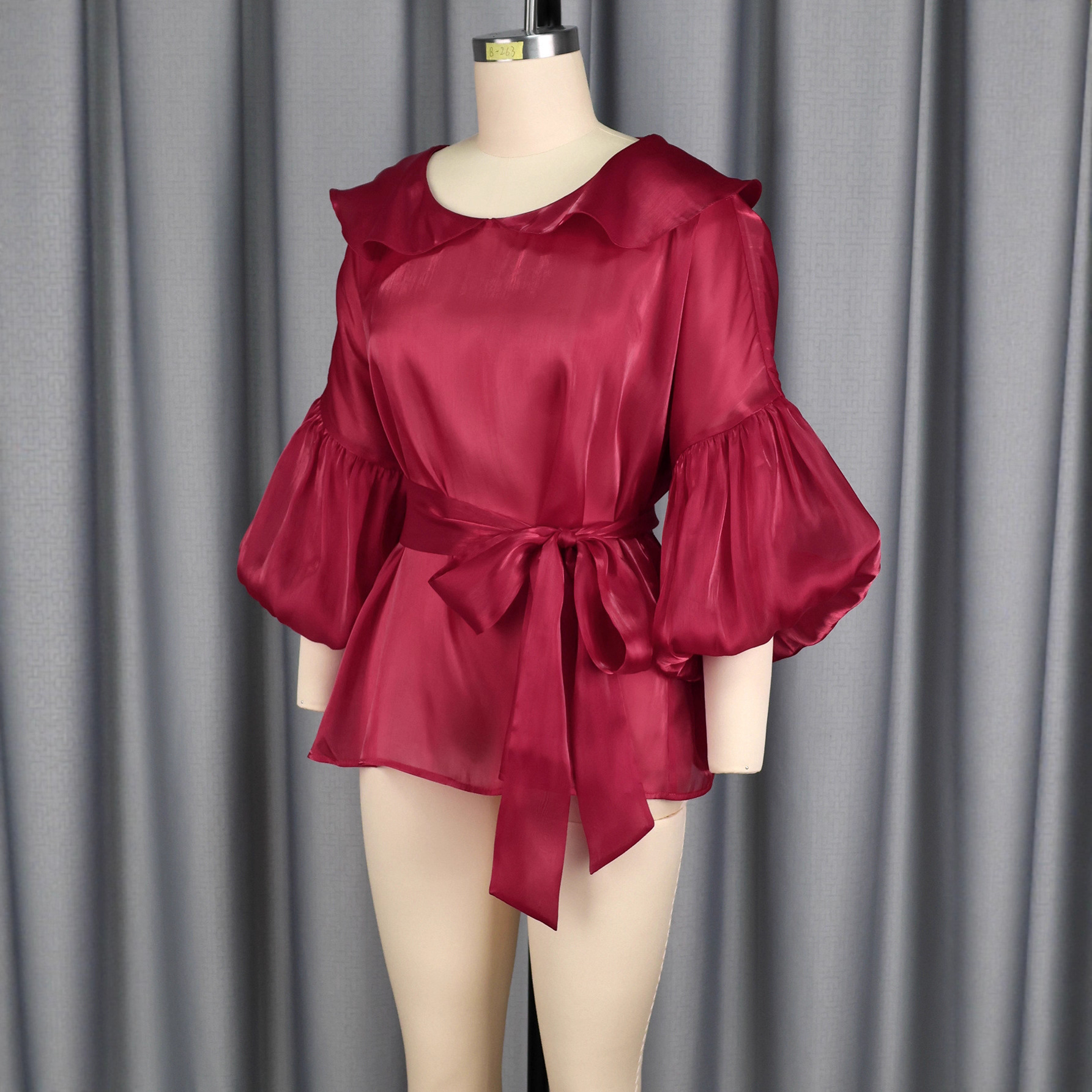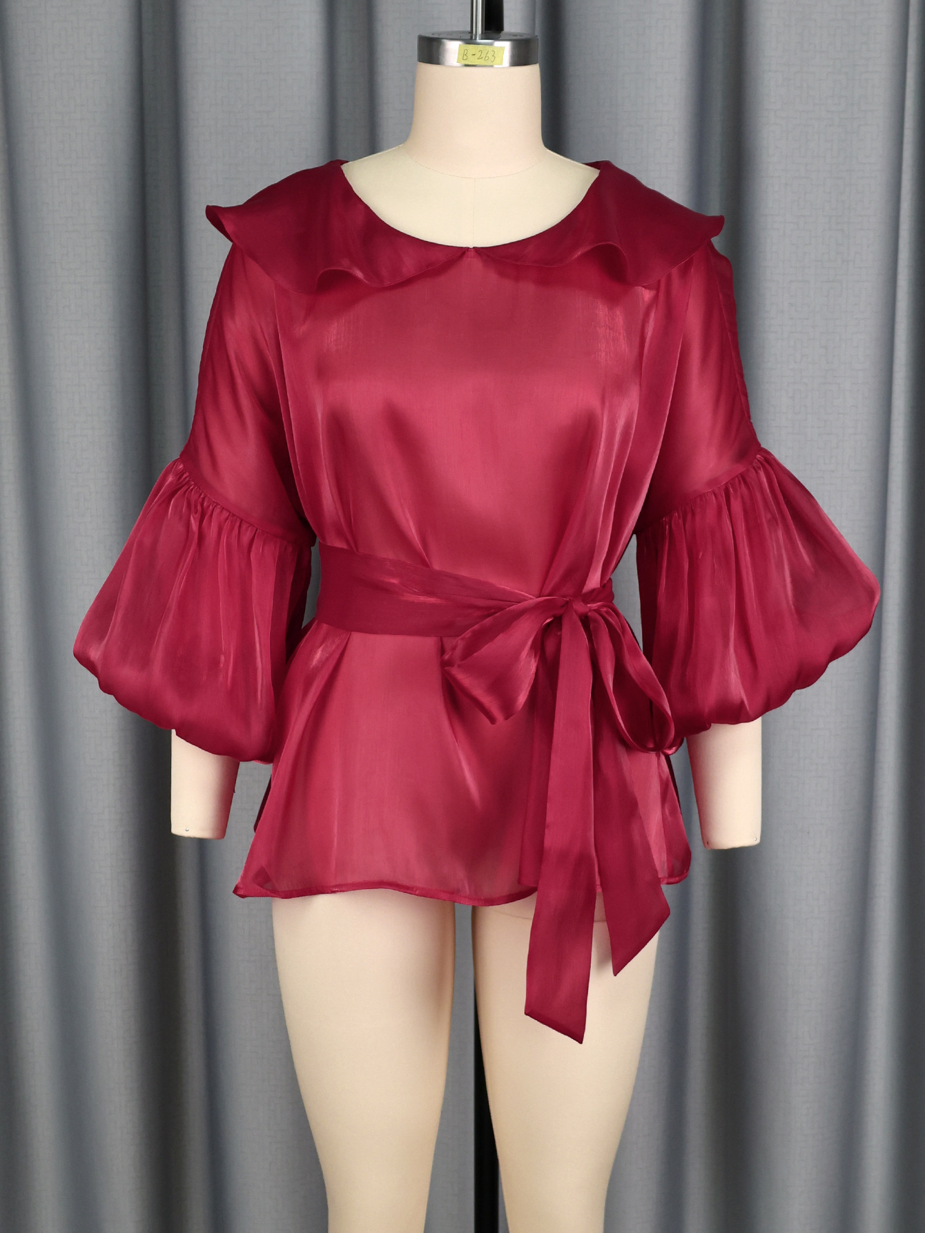 Polyester Waist-controlled Women Long Sleeve Blouses wine red PC