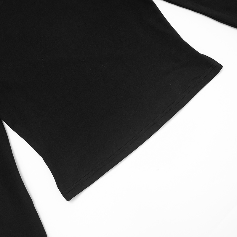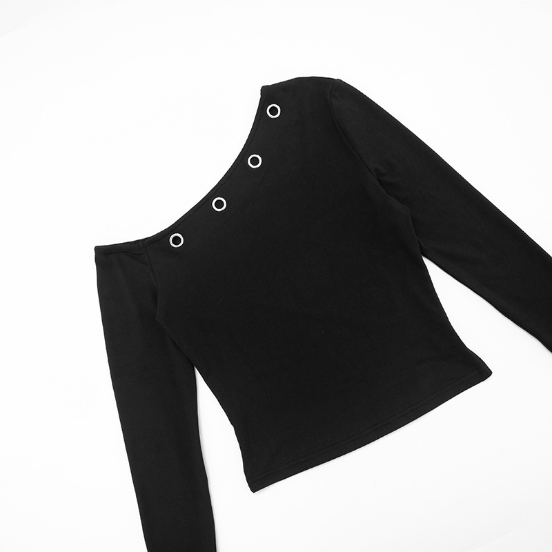 Polyester Women Long Sleeve T-shirt midriff-baring & off shoulder PC